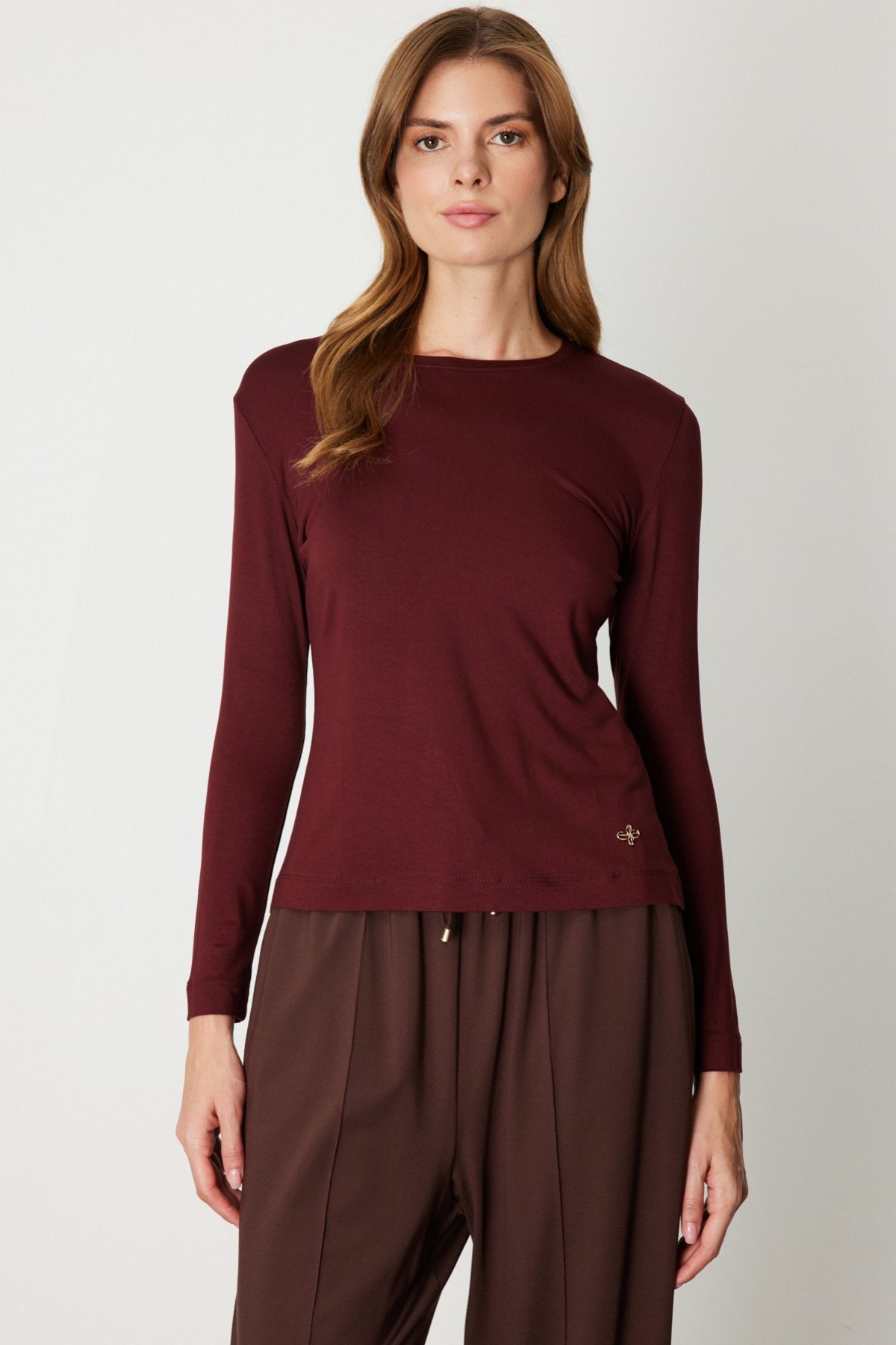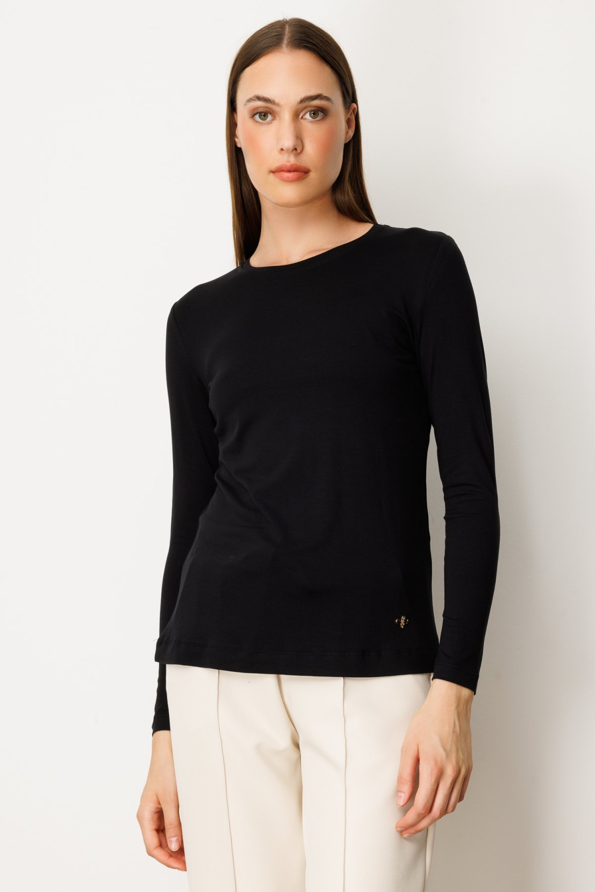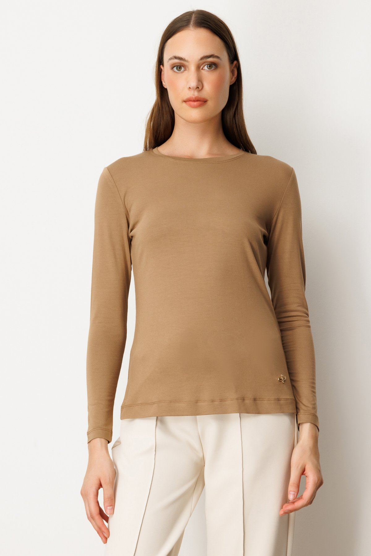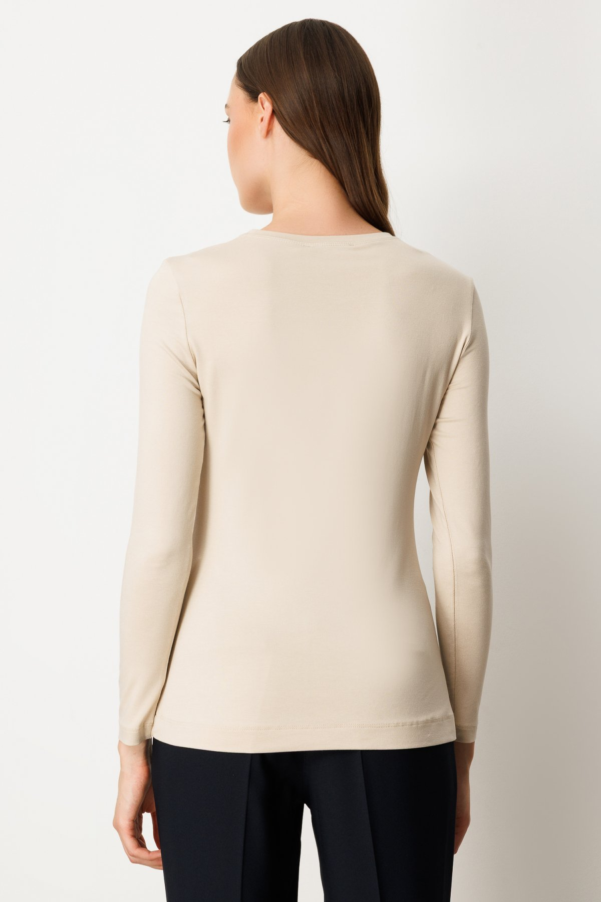 On Metal Aksesuarlı Sıfır Yaka Basic Bluz