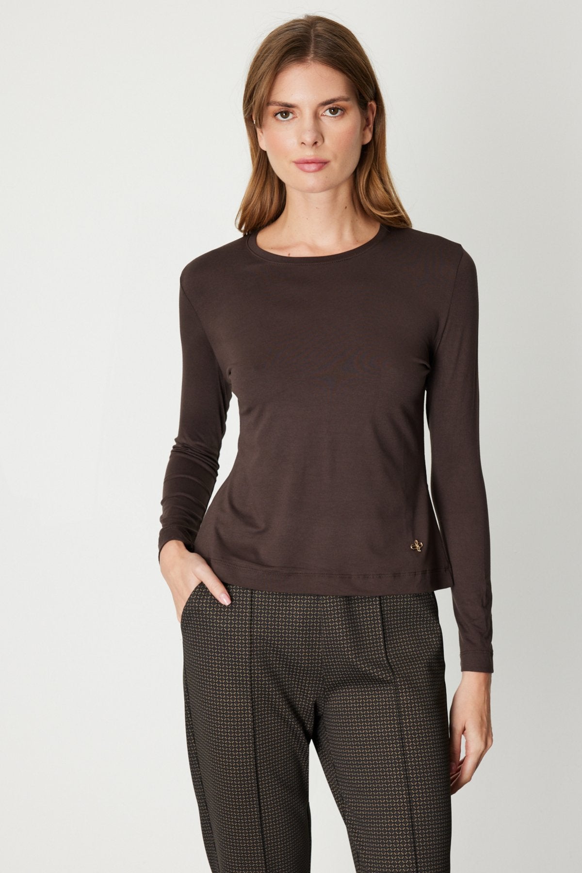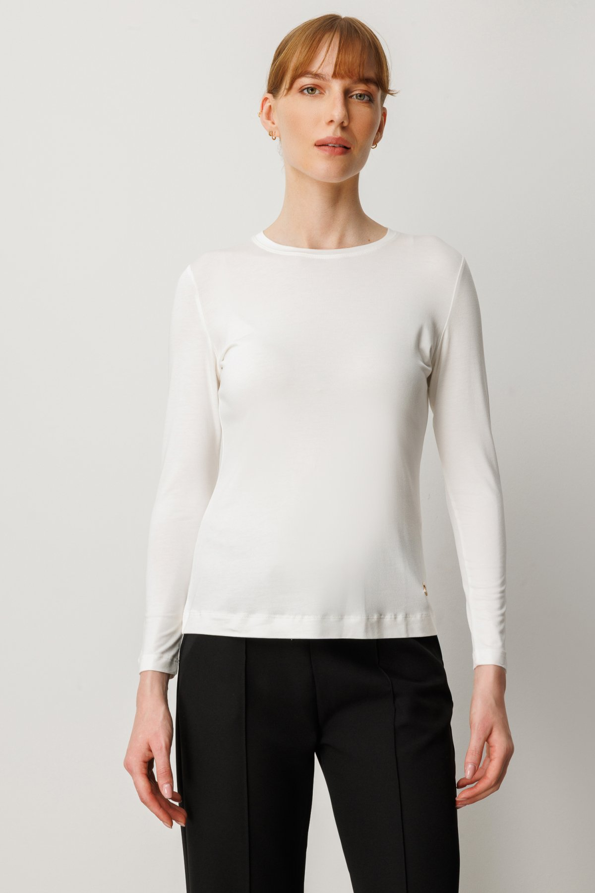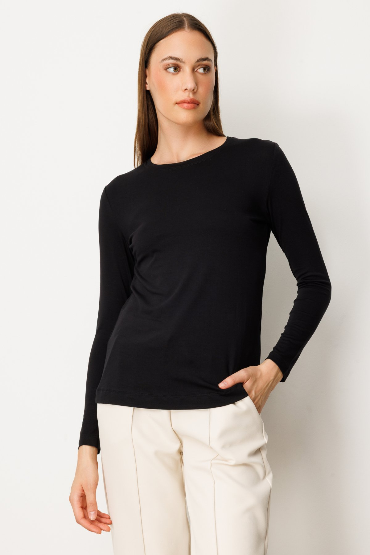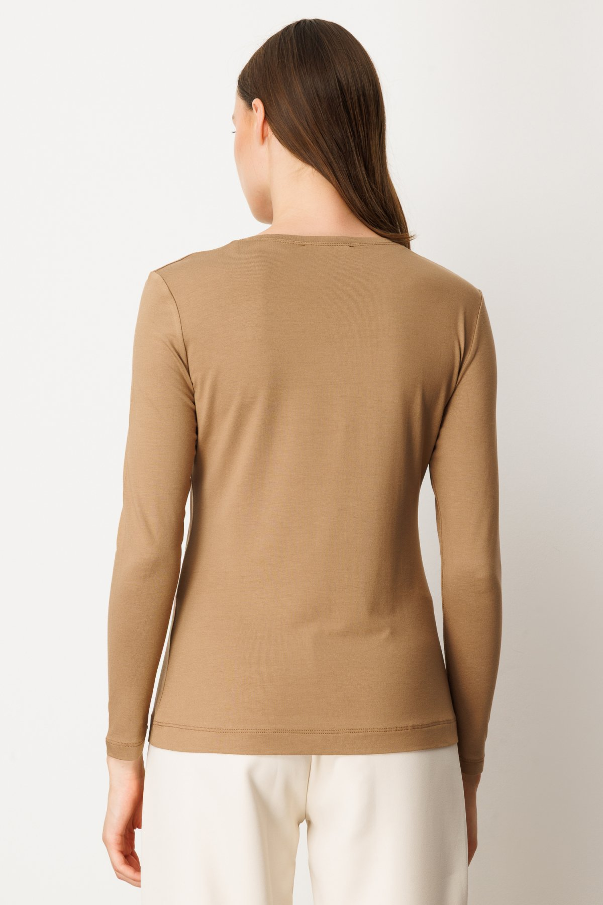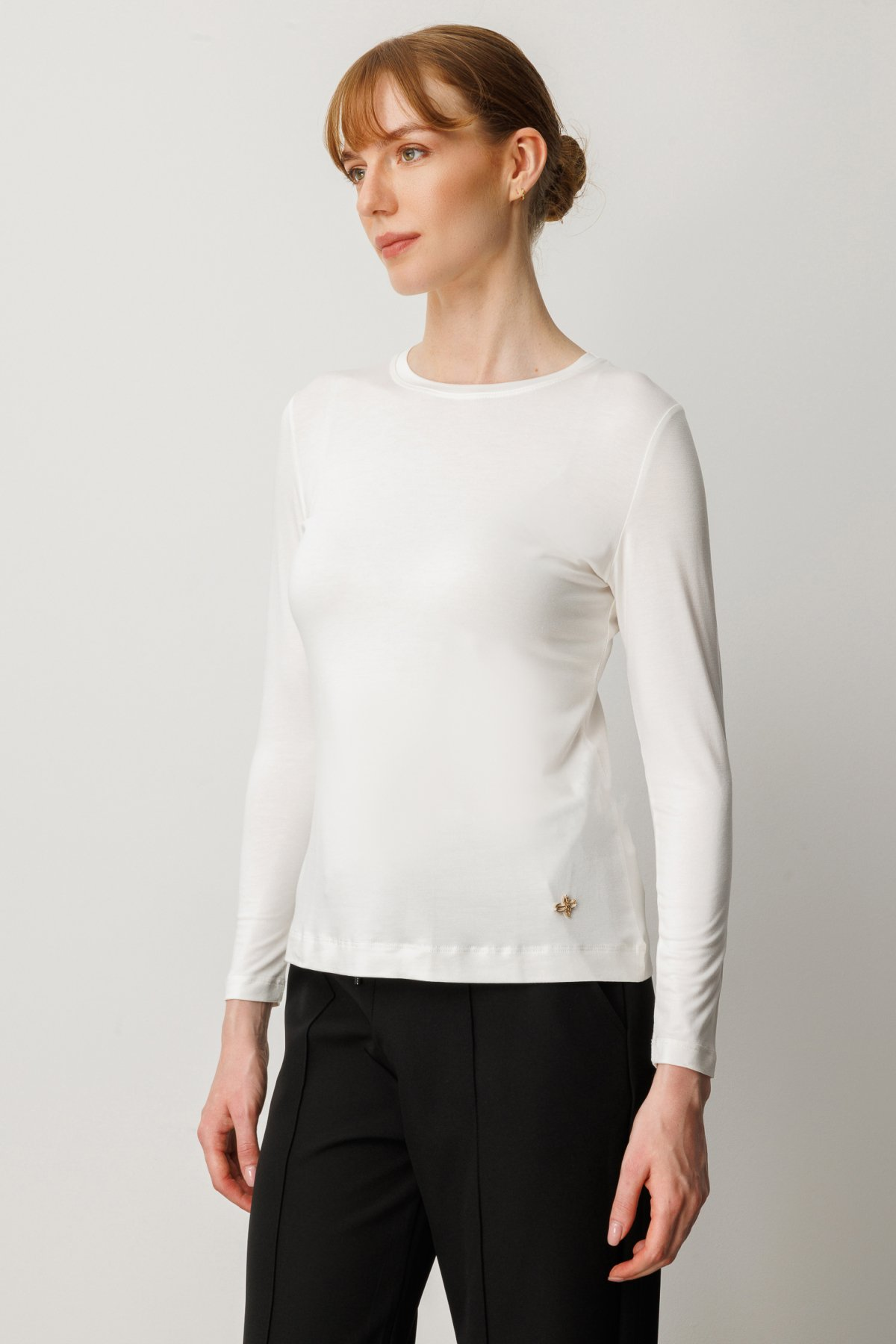 On Metal Aksesuarlı Sıfır Yaka Basic Bluz
