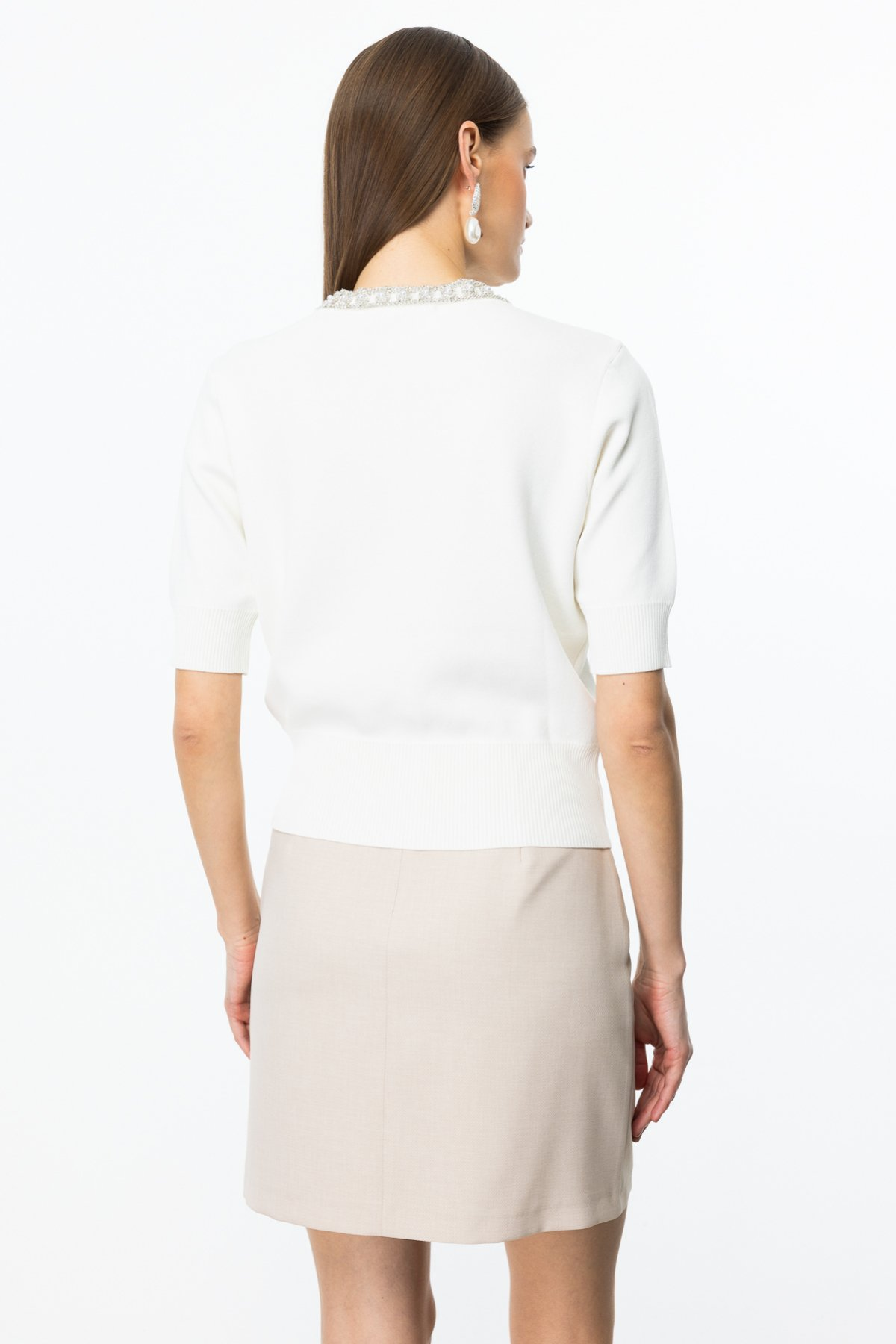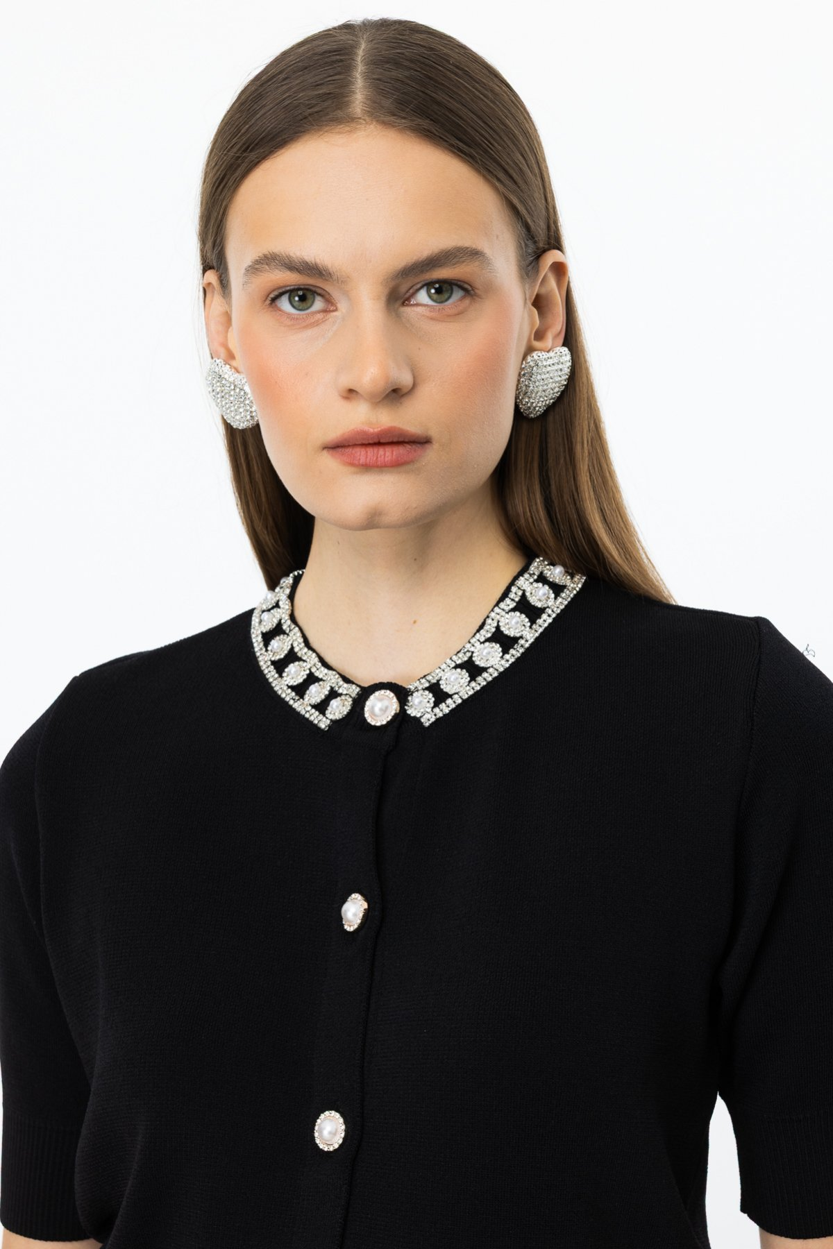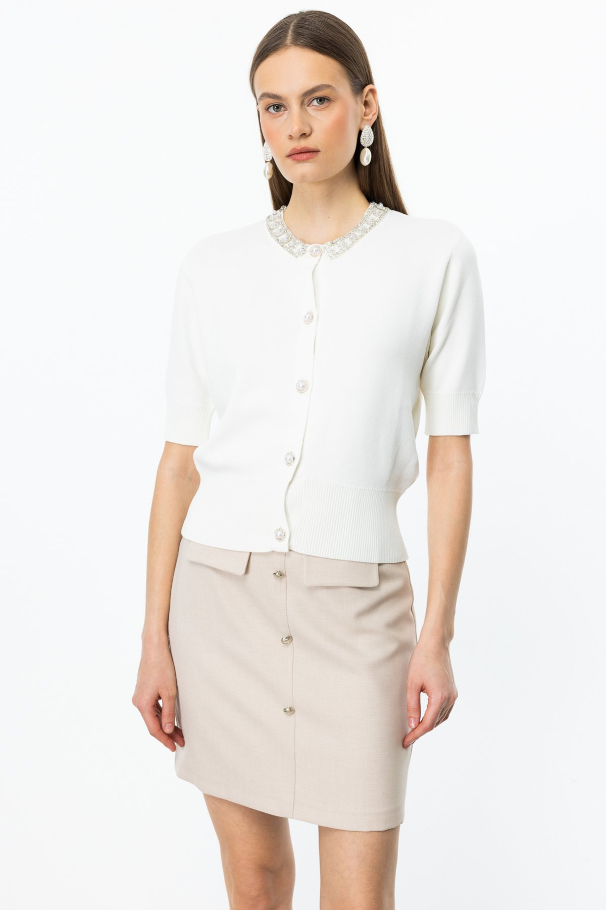 On Minimalist Kadın Hırka - Kısa Kol Taş Detaylı - Crop