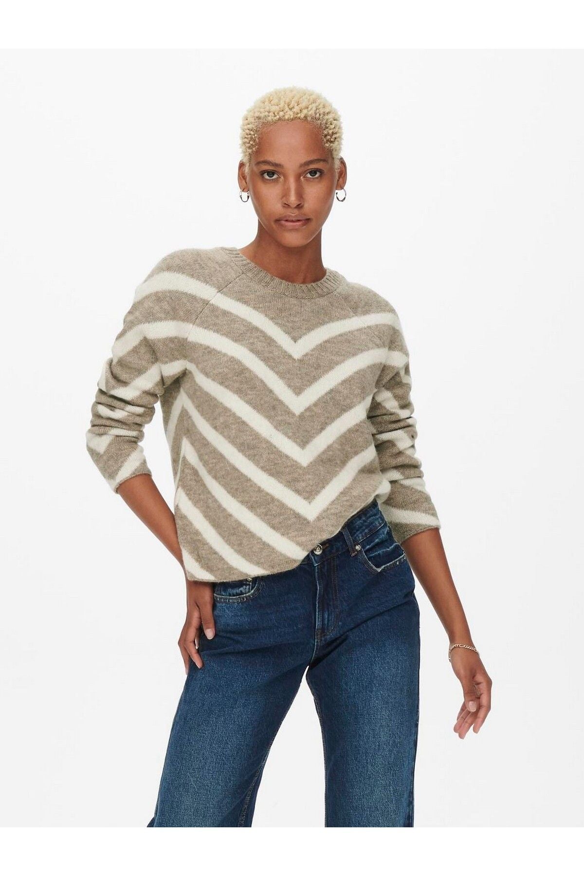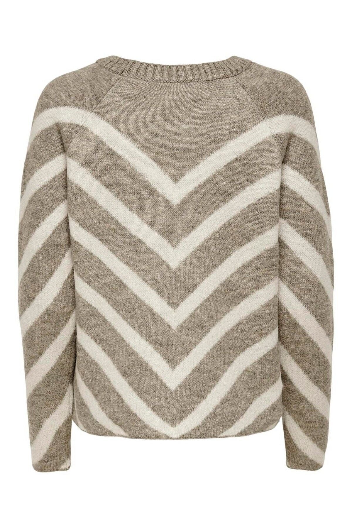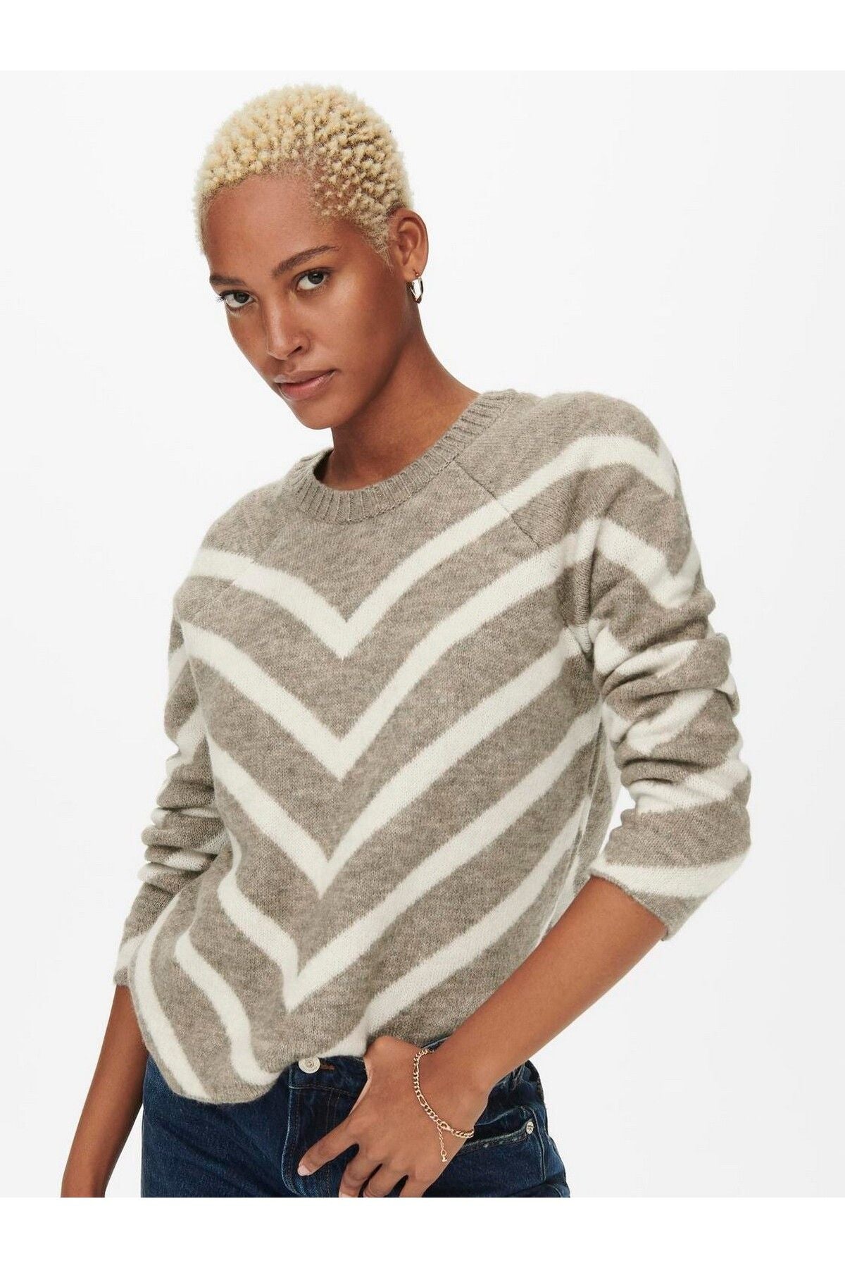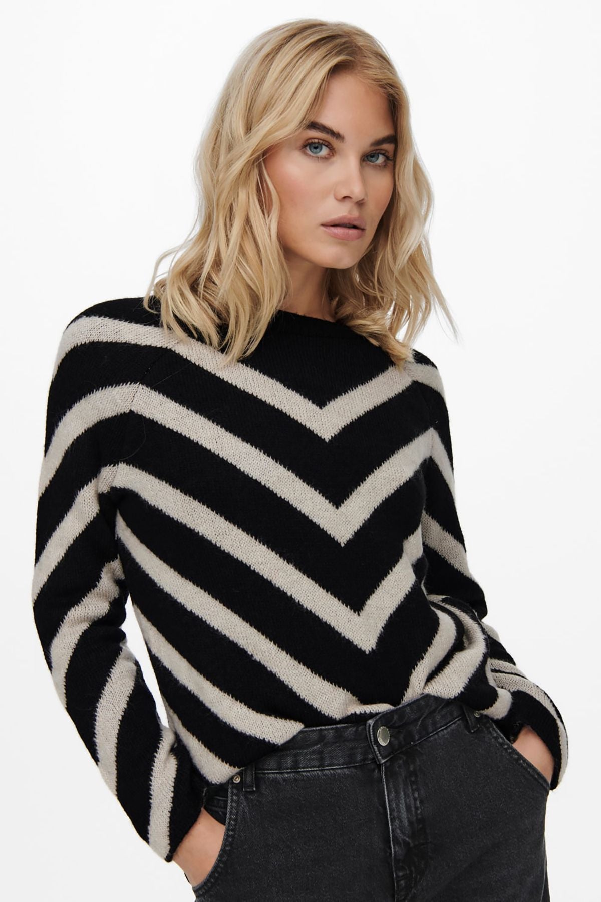 - Kontrast desenli örgü kazak; - Yuvarlak boyun; - Nervürlü kenarlar; - Uzunluk: M bedende 59 cm;...