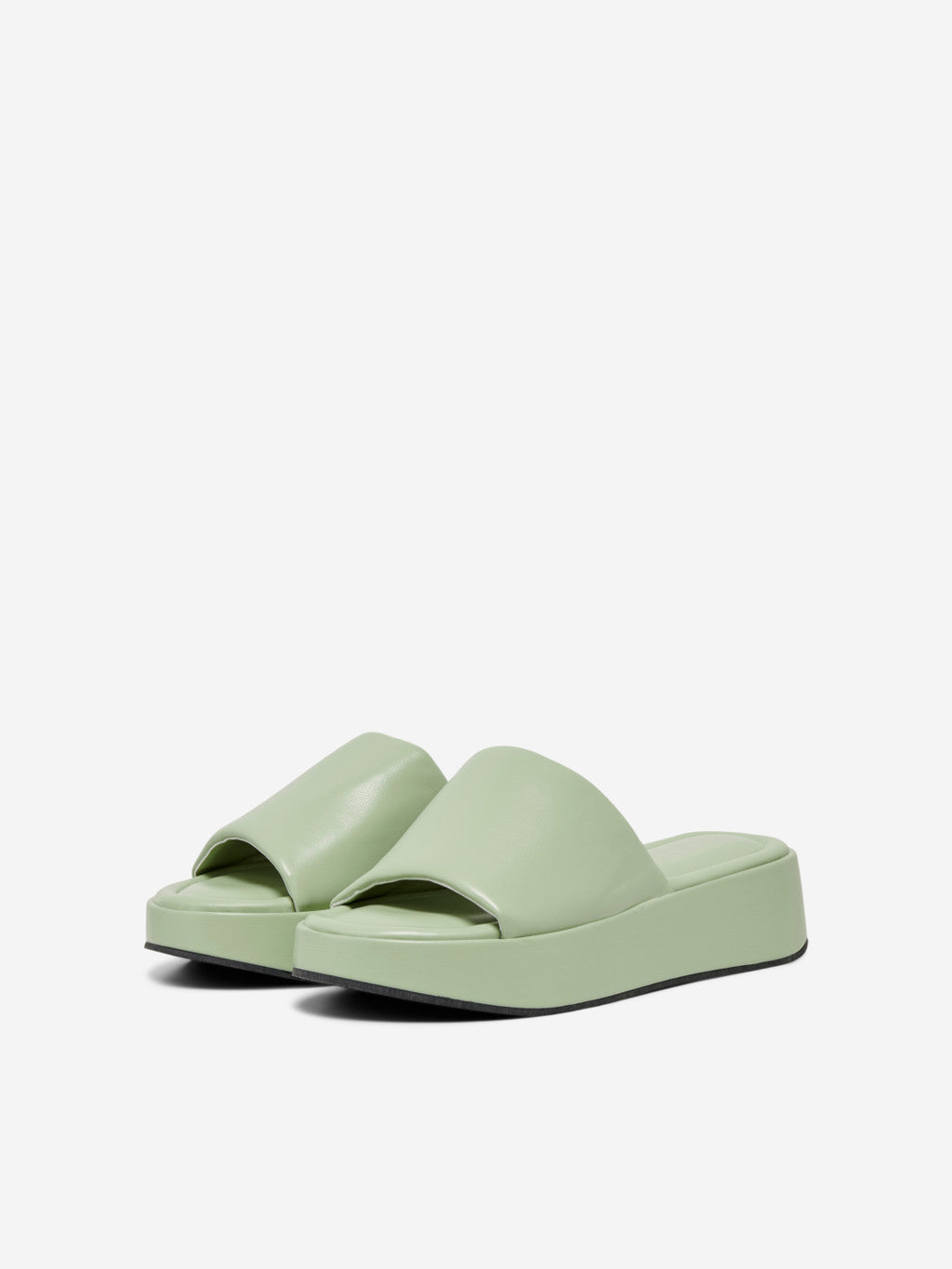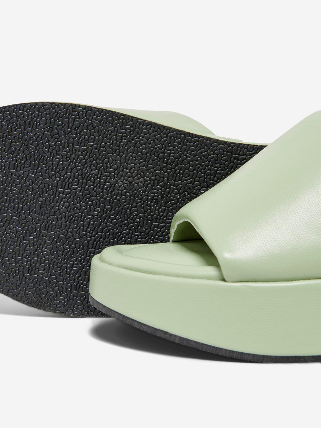 - Ürün tipi : Sandalet; - Kapanış : Slip on; - Astar : Poliüretan astar; - Taban / Topuk : Dayanıklı TPR dış taban; - Topuk yüksekliği : 4 cm; - Burun tipi : Yuvarlak burun; Kumaş bileşimi; 100 Poliüretan;