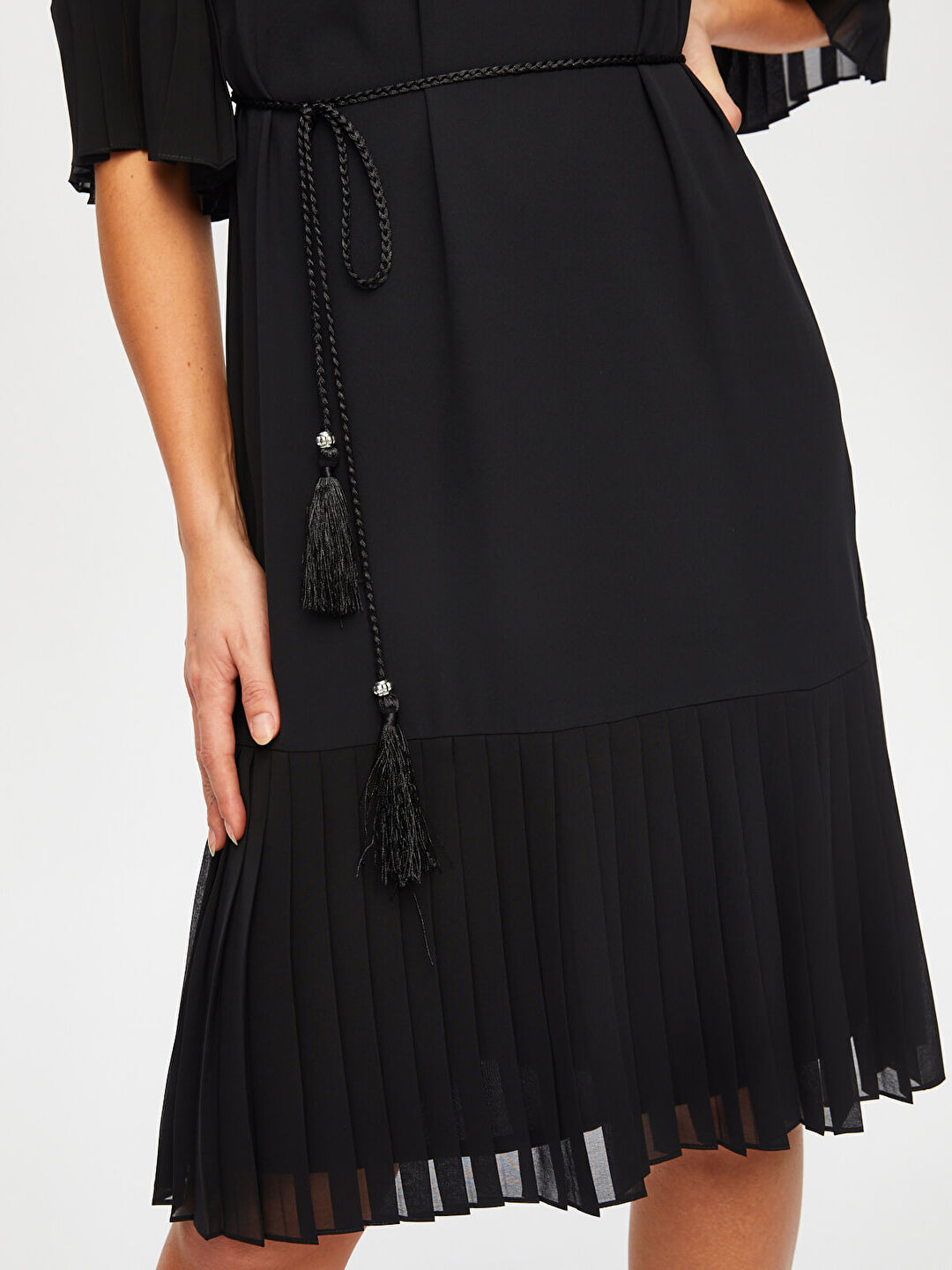 Ürün Adı : Plise Dantel Garnili V Yaka Abiye Elbise S25ABY018%100 Polyester