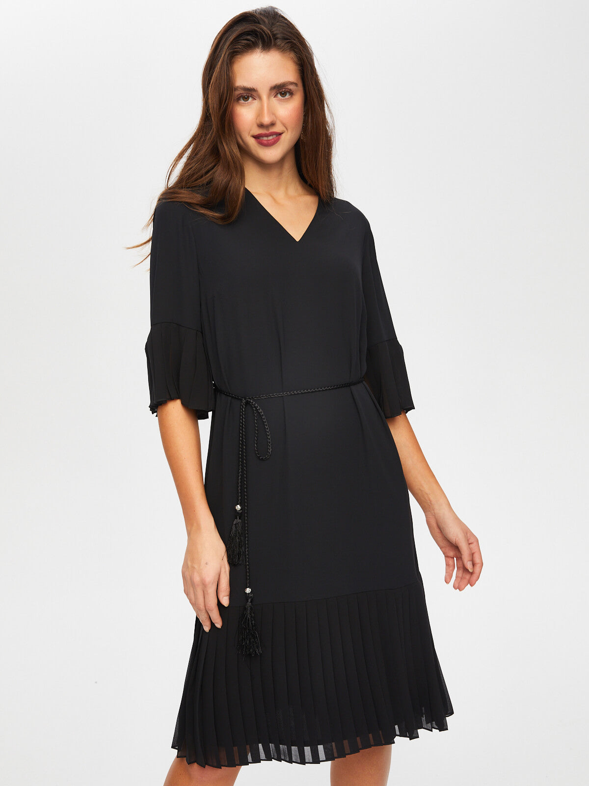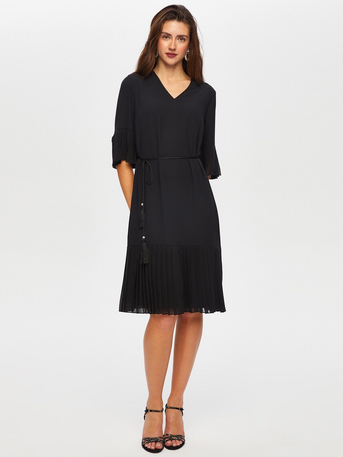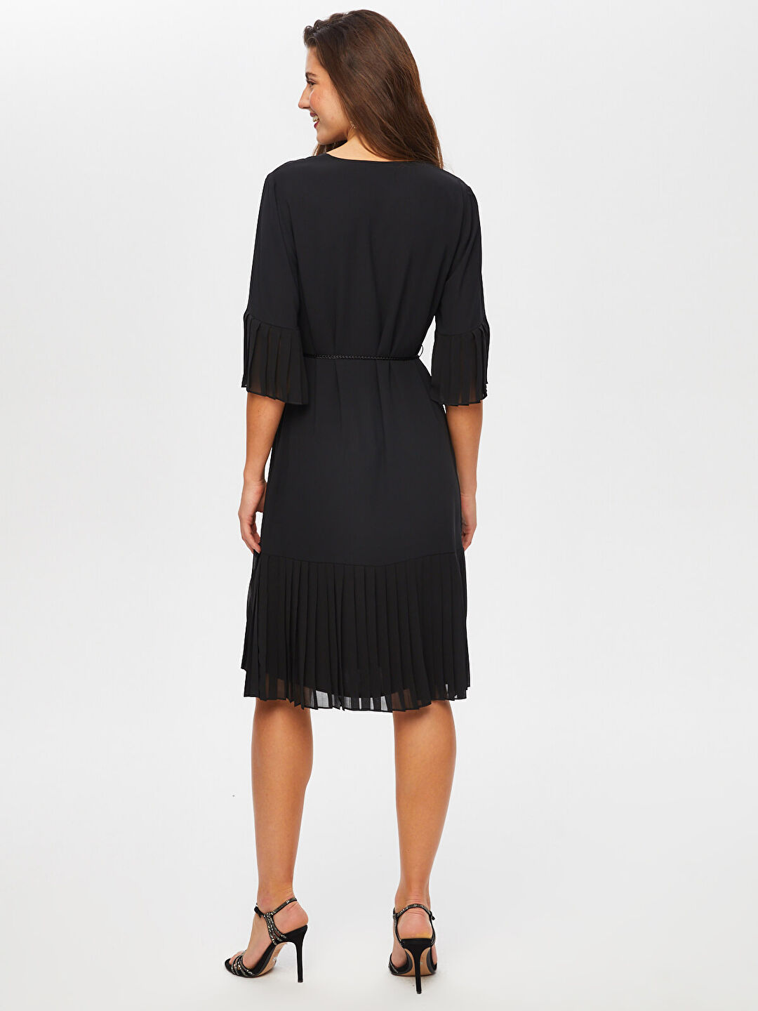 Ürün Adı : Plise Dantel Garnili V Yaka Abiye Elbise S25ABY018