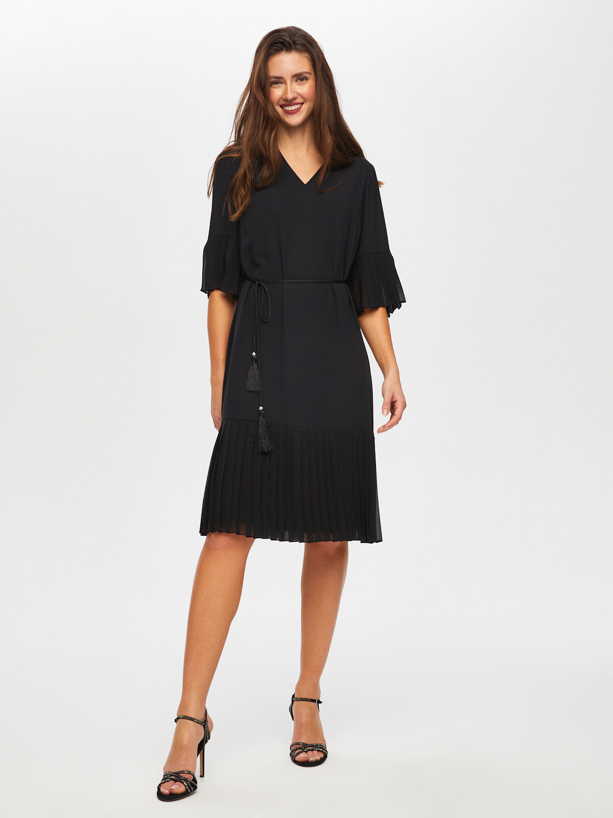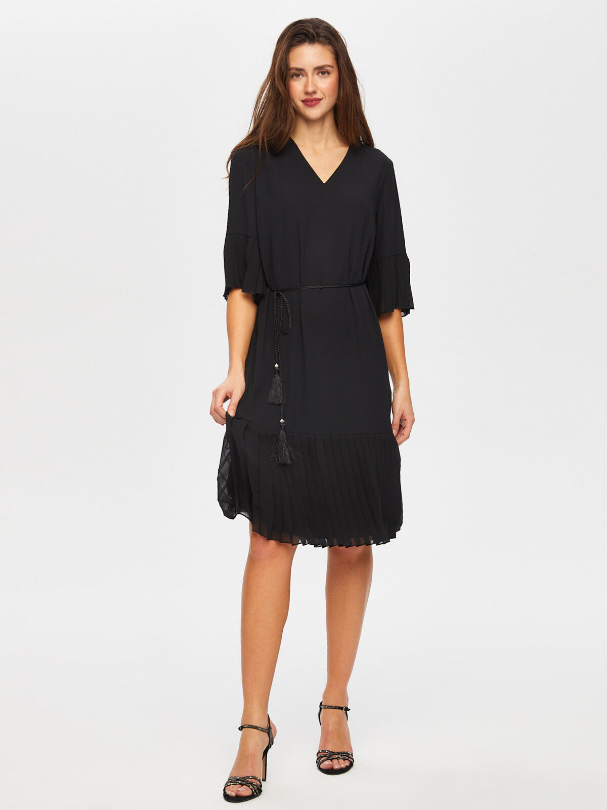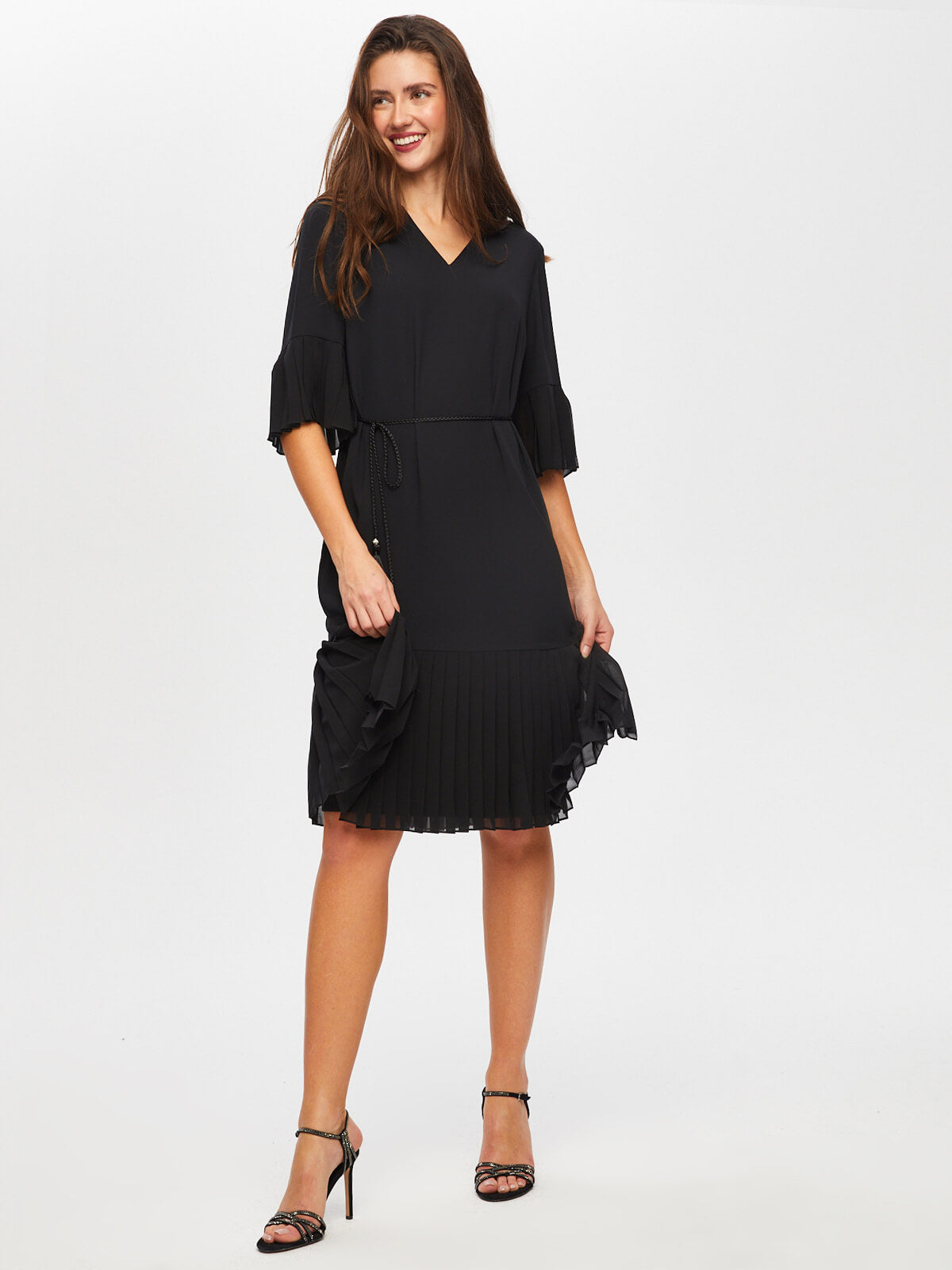 Ürün Adı : Plise Dantel Garnili V Yaka Abiye Elbise S25ABY018