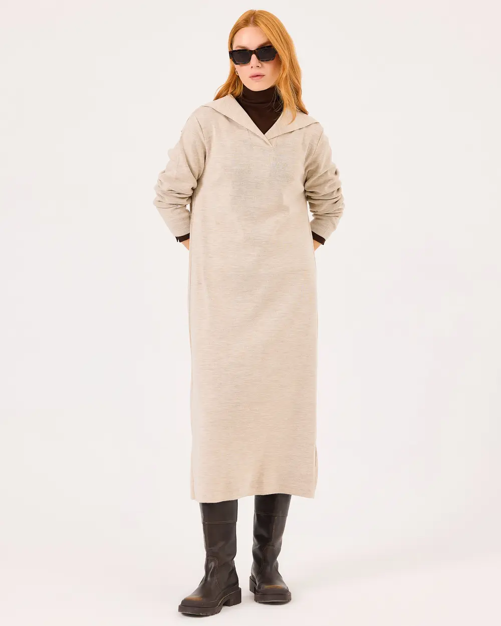 Uzun Kollu Midi Boy Triko Elbise, sade tasarımıyla modern bir görünüm sunar. Günlük kullanımda rahatlık arayanlar için ideal bir tercih.