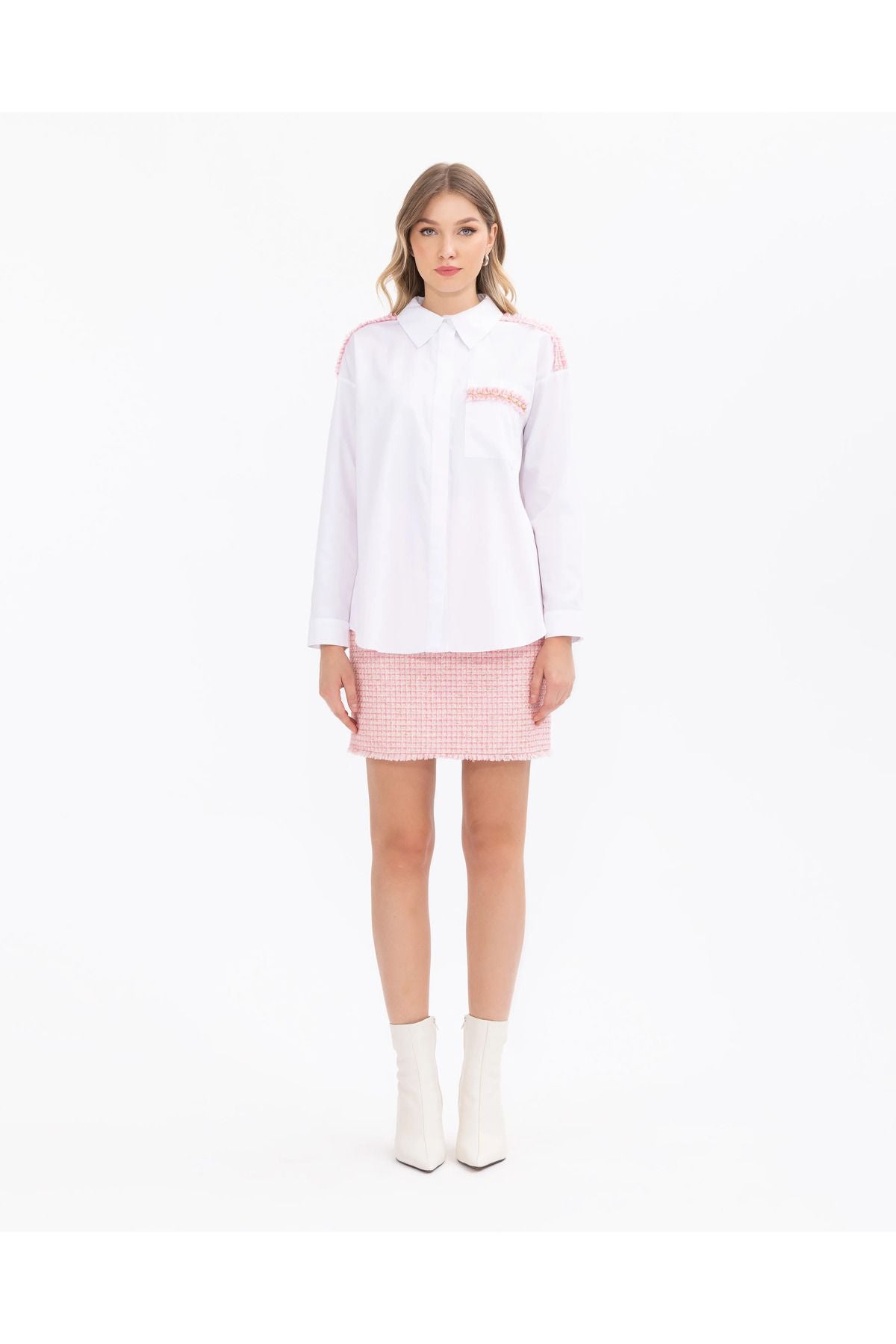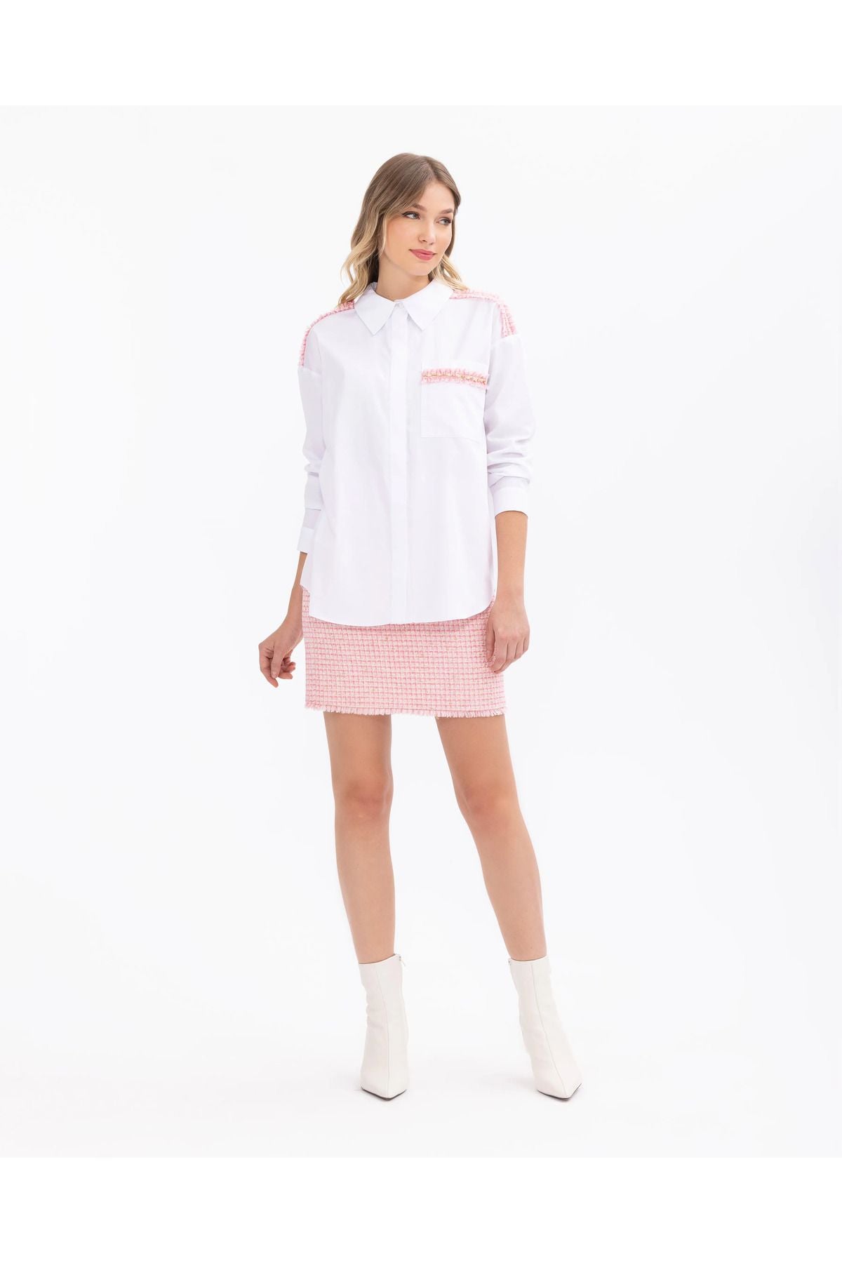 Zarif ve rahat, boncuk işlemeli uzun kollu gömlek, modern tarza özgün dokunuşlar katar. Boncuk işlemeleri ve rahat kesimiyle dikkat çeker. Hem özel etkinliklerde hem de günlük kullanımda mükemmel bir tercihtir; Ürün Özellikleri Düğmeli; Gömlek Yaka; Düşük Kol; Rahat Kesim; Basen Boy; Cepli; Boncuk İşlemeli; % 100 Pamuk; Koton; Tüvit Gizli Pat