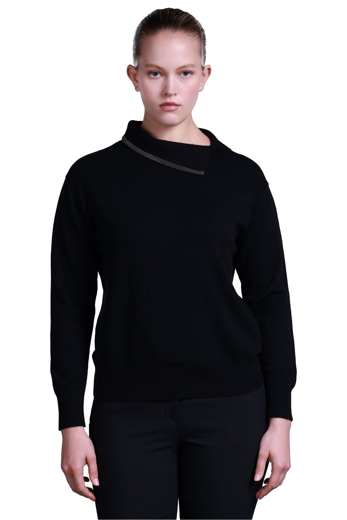 Sempre Asimetrik Yaka Oversize Kadın Kazak - Uzun Kol Minimalist