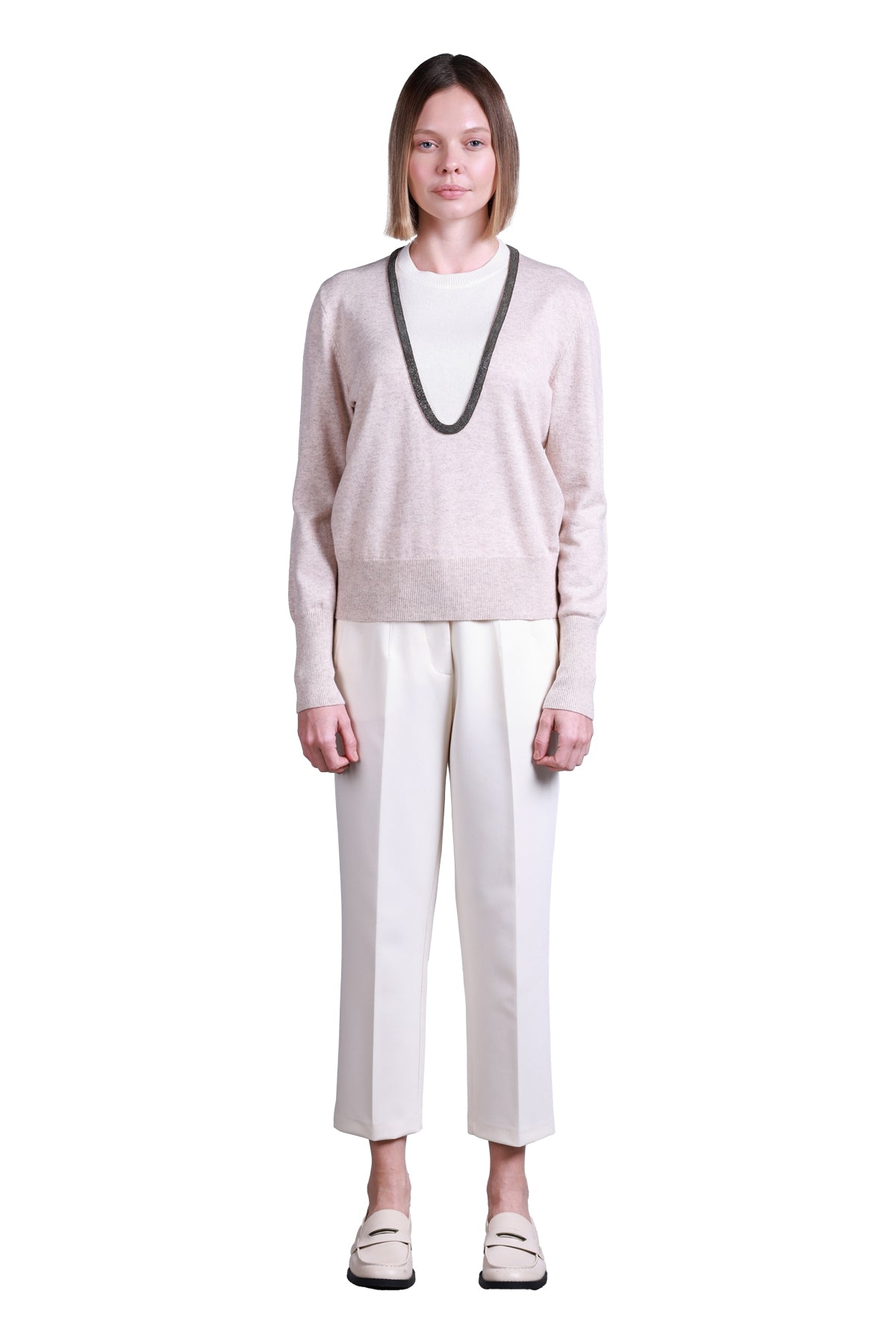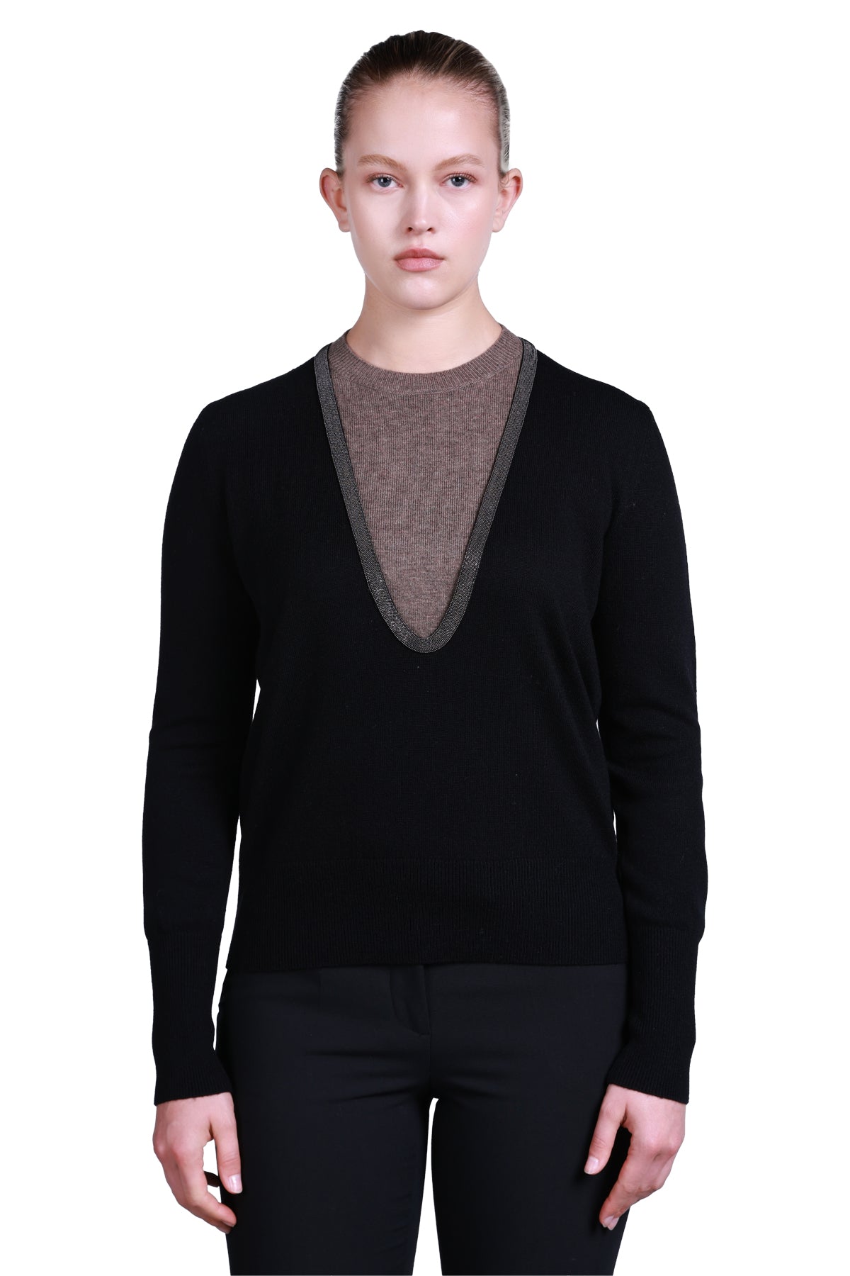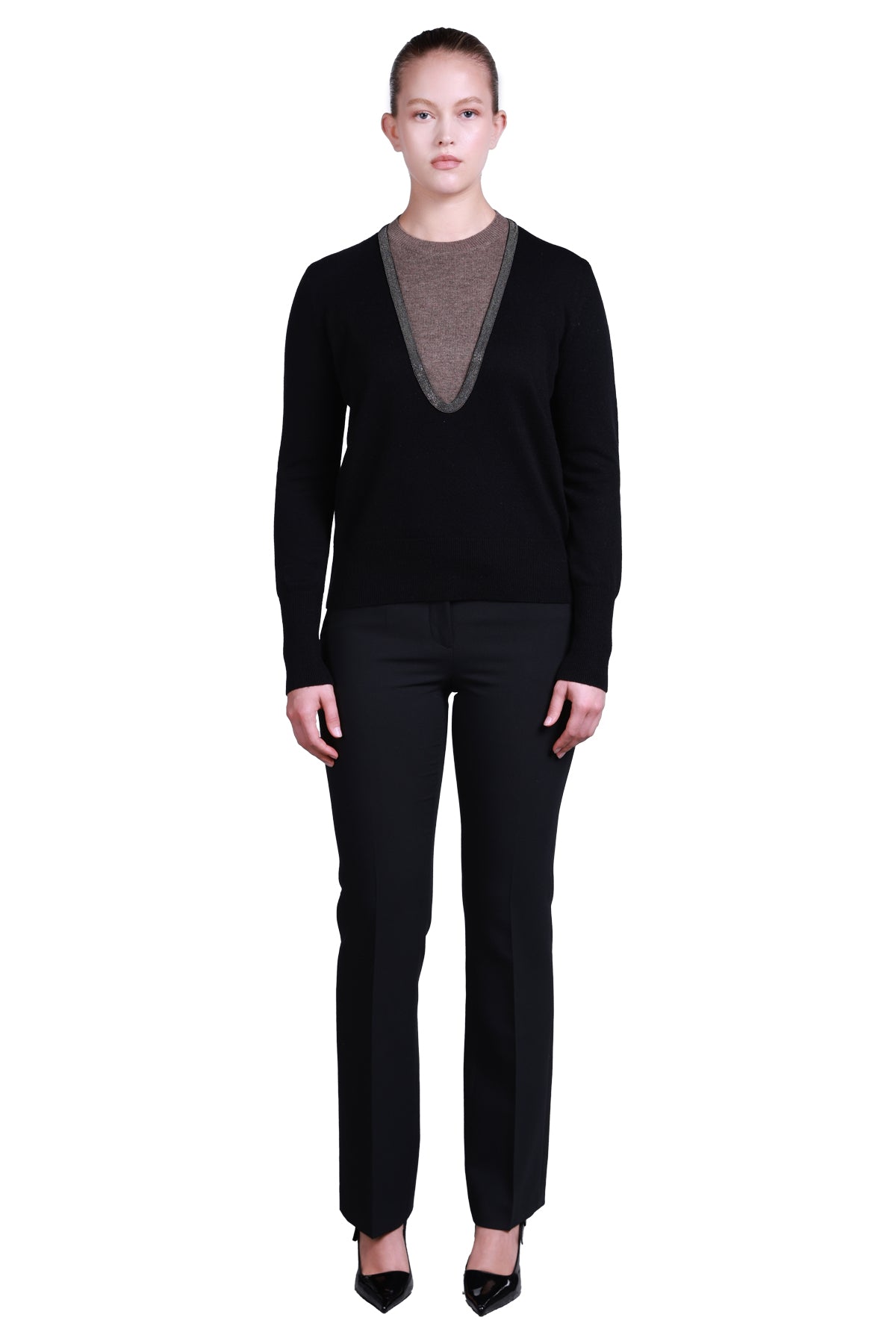 Sempre Kadın Kazak - Minimalist V Yaka, Uzun Kol, Günlük & Ofis