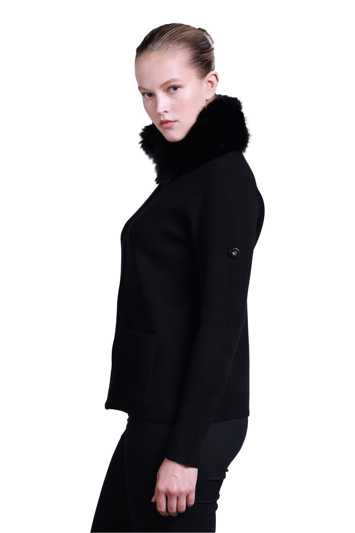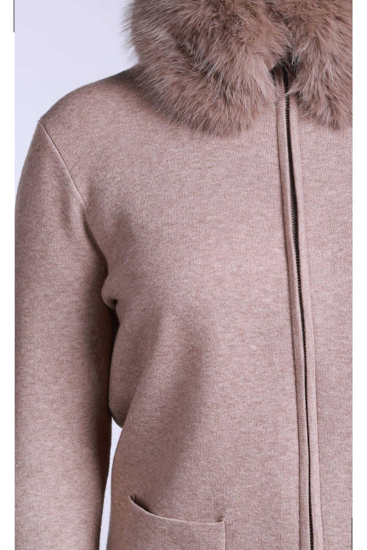 Sempre Kadın Minimalist Kürk Detaylı Fermuarlı Kazak