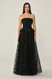 Straplez Eteği Payetli Tül Uzun Abiye Elbise Alfa Beta