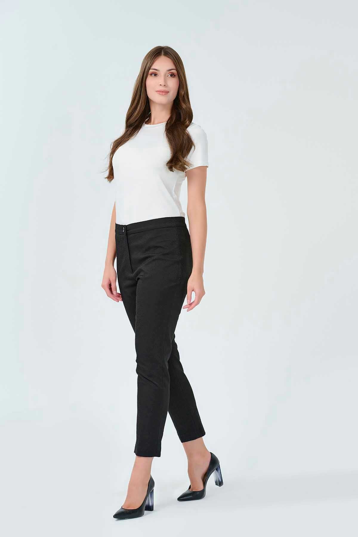 Kumaş ve model özelliği - Likralı dokuma kumaştan üretilmiştir. Kumaşı yüzeyi jakarlı ve hafif parlaktır. Şık olarak kullanılabilir.; Belindeki hafif esneklik ürünün bele tam oturmasını ve konforlu kullanım imkânı sağlar.; Kumaş içeriği; %95/5 Poliester/Elastan; Manken üzerindeki beden - 42 beden; Manken ölçülerimiz; Boy: 178 cm.; Göğüs: 88 cm.; Bel: 68 cm.; Basen: 98 cm.;