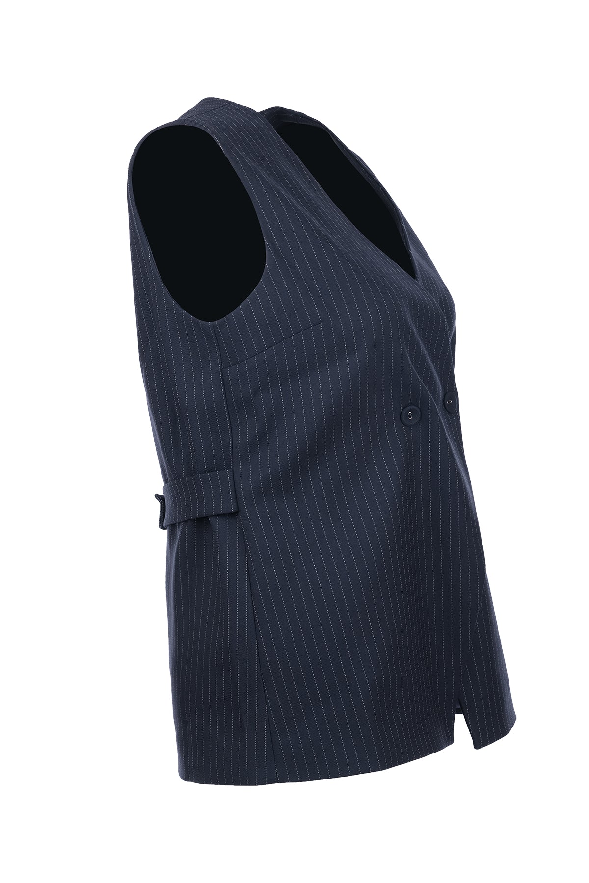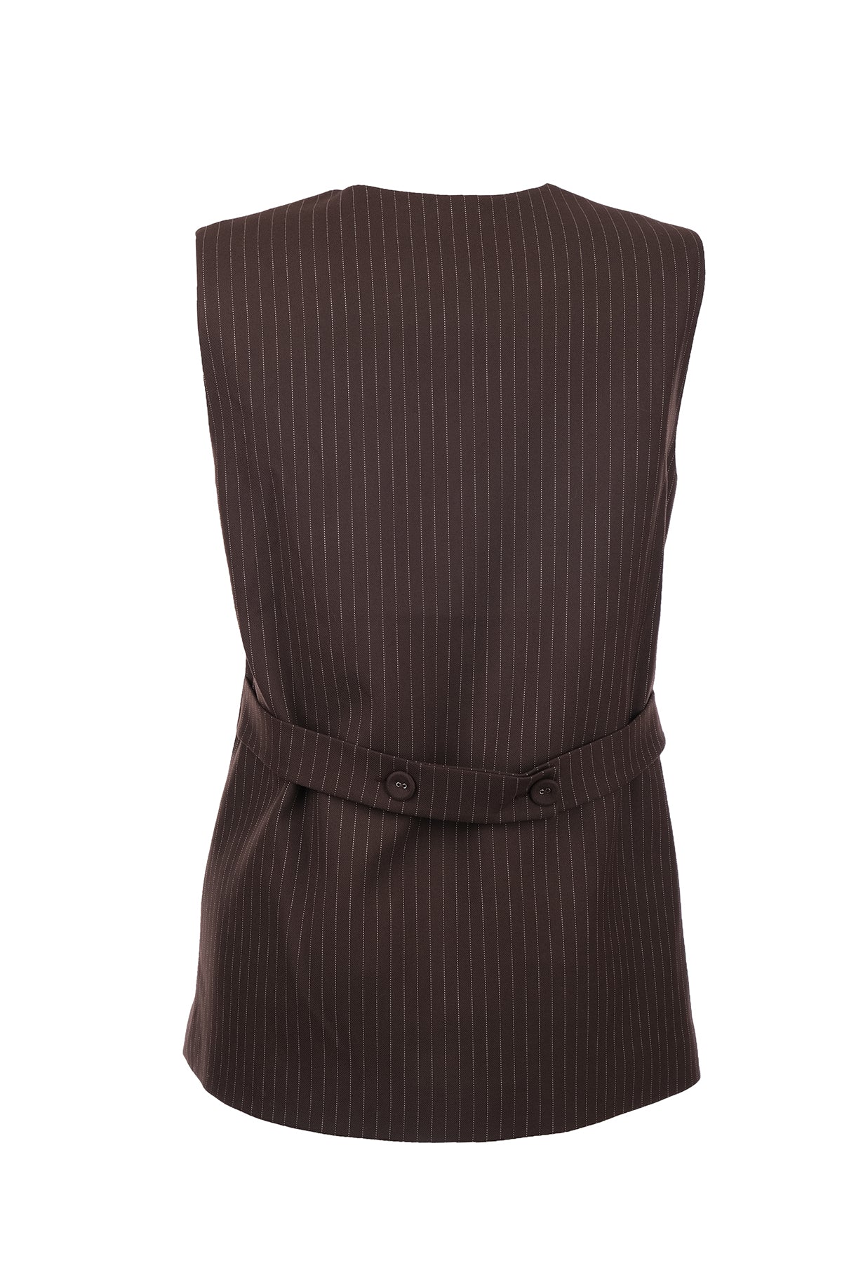 Unique Mode Minimalist V Yaka Kolsuz Midi Yelek - Çizgili