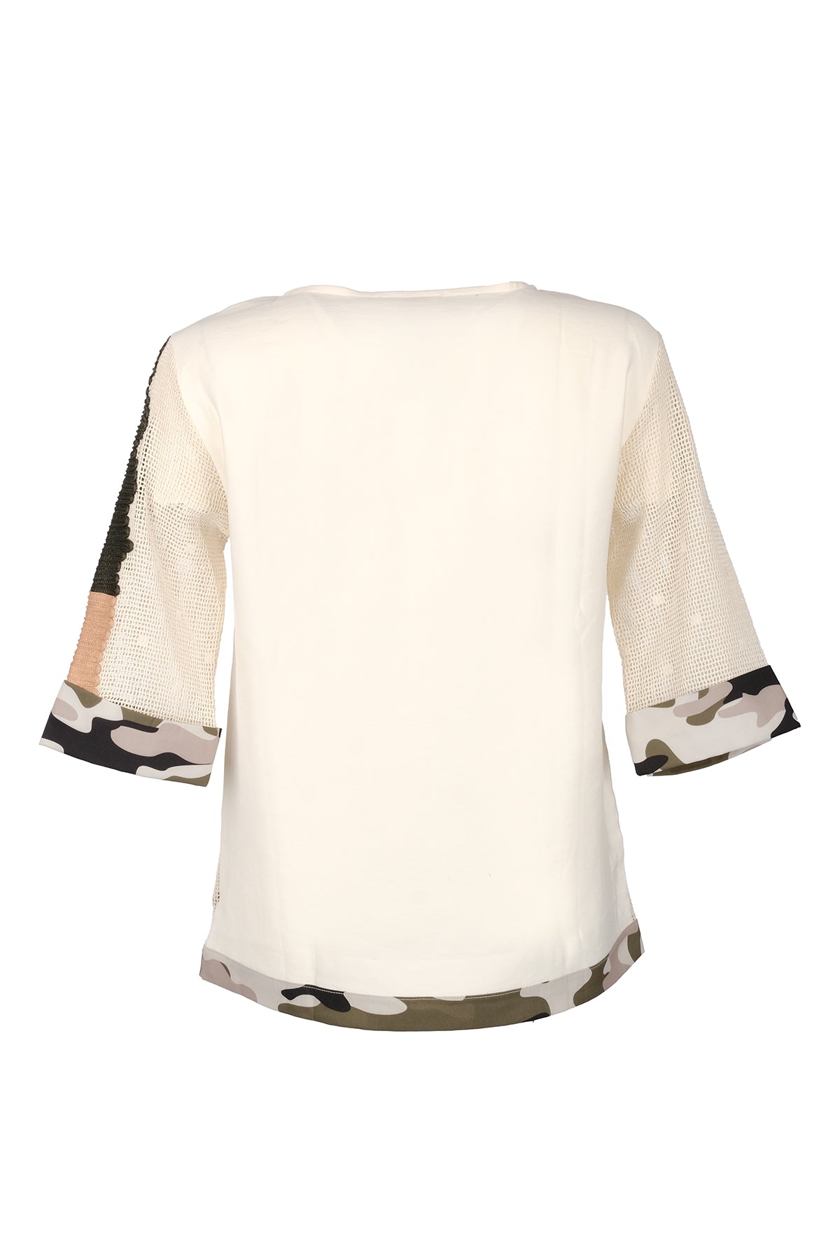 Vedi Minimalist 3/4 Kol Kamuflaj Desen Kadın Bluz - Günlük Şıklık