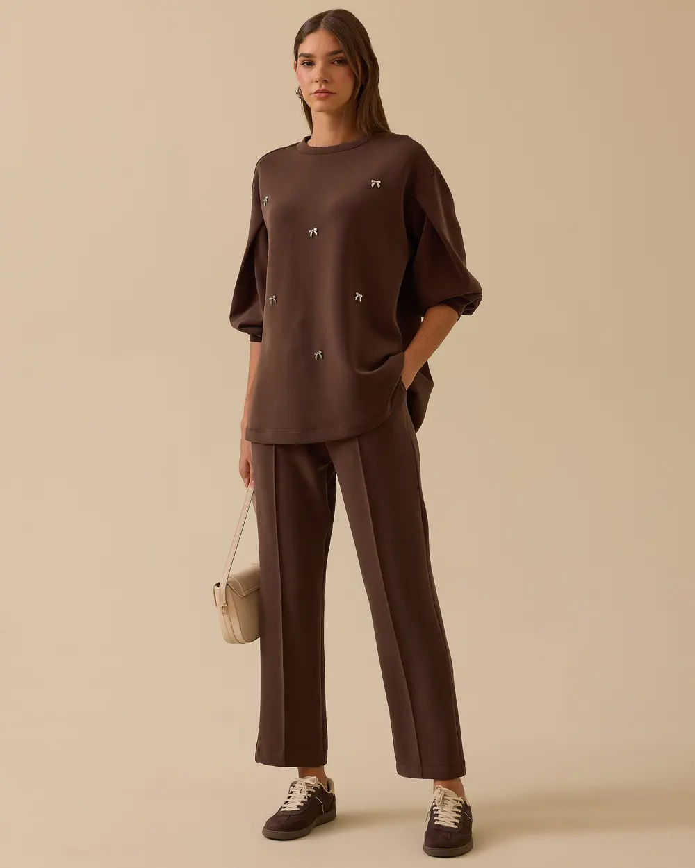 Aksesuar Detaylı Bol Kol Sweatshirt, bol kol kesimi ve şık aksesuar detaylarıyla modern ve rahat bir görünüm sunar.