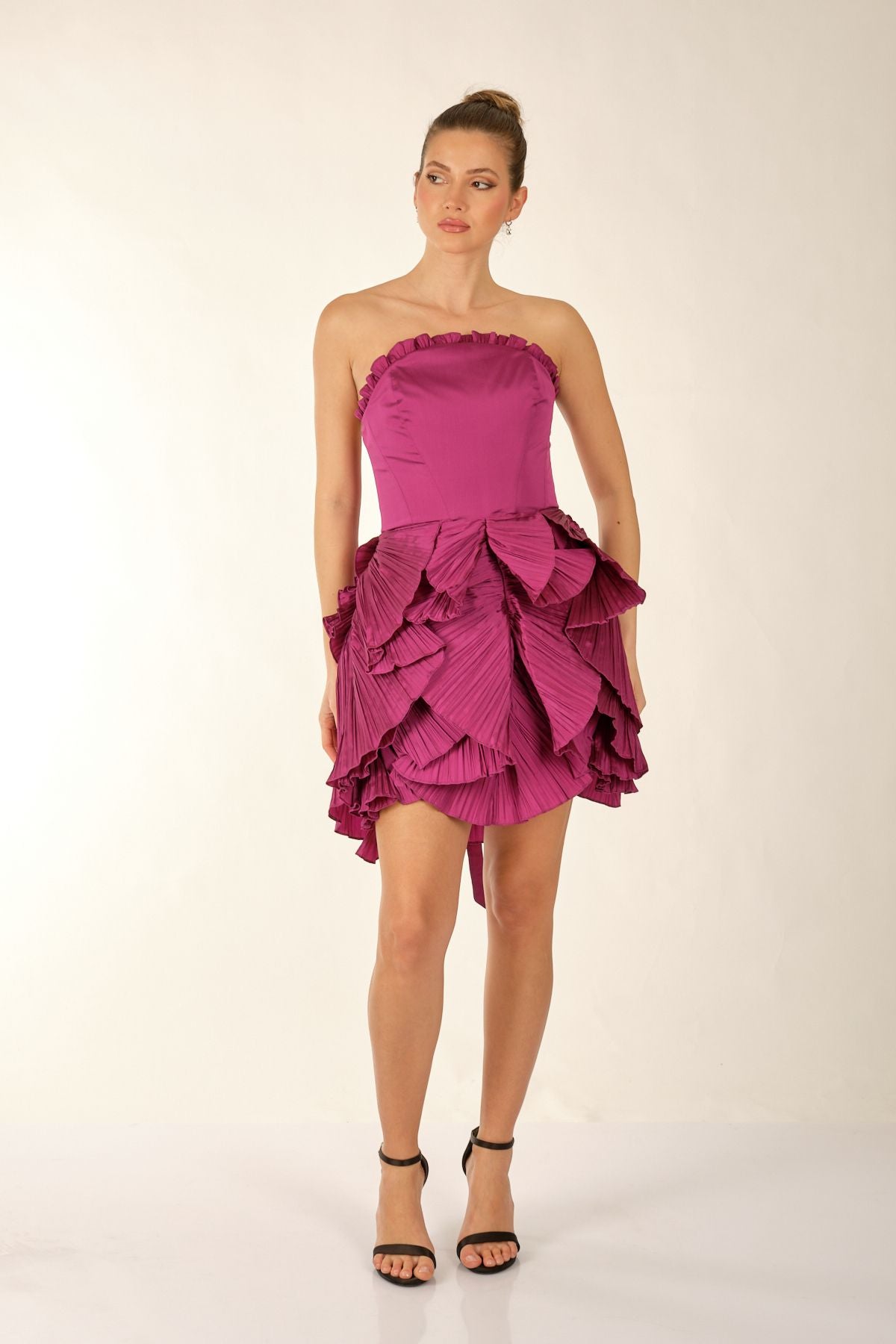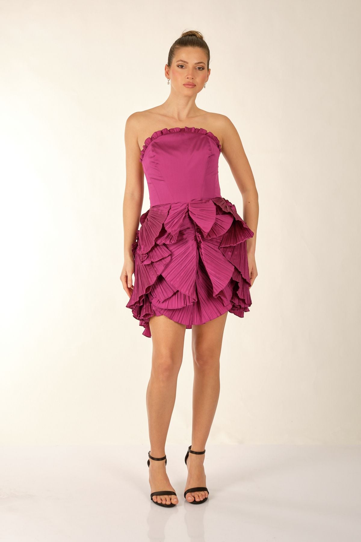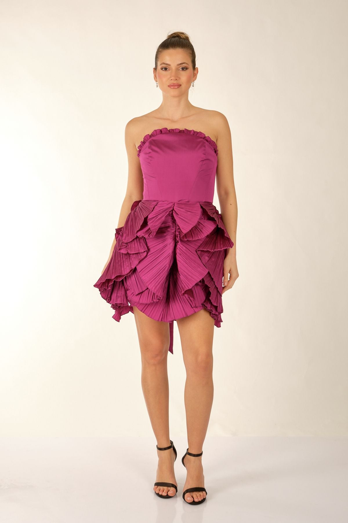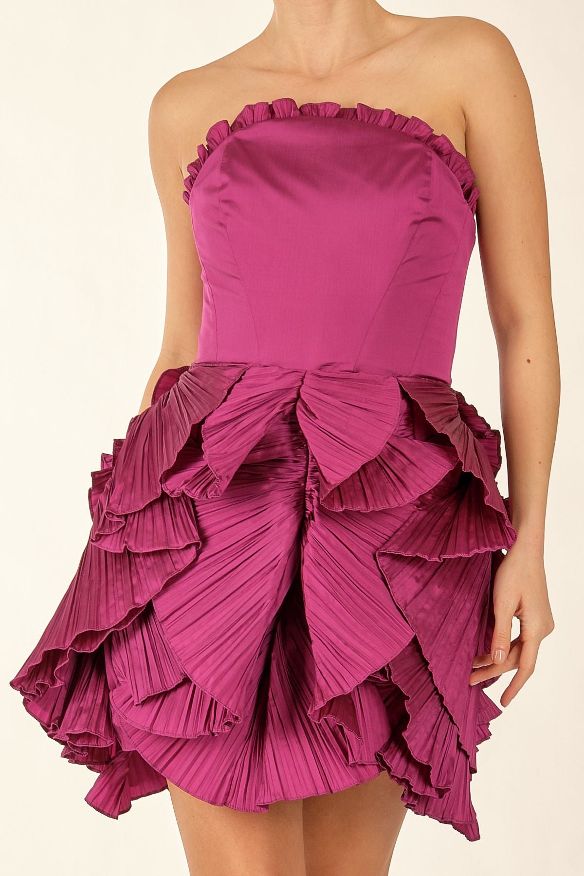 Ürün Özellikleri:; Marka : Alfebeta; Model : Mini Elbise Sezon : İlkbahar/Yaz; Desen : Eteğ, Volanlı; Materyal : % 100 Polyester; Yaka Bilgisi : Straplez; Kalıp Bilgisi : Standart Fit; Manken Ölçüsü : Boy : 1.74 cm / Göğüs : 81 cm / Bel : 60 cm / Basen : 89 cm / Beden : S;