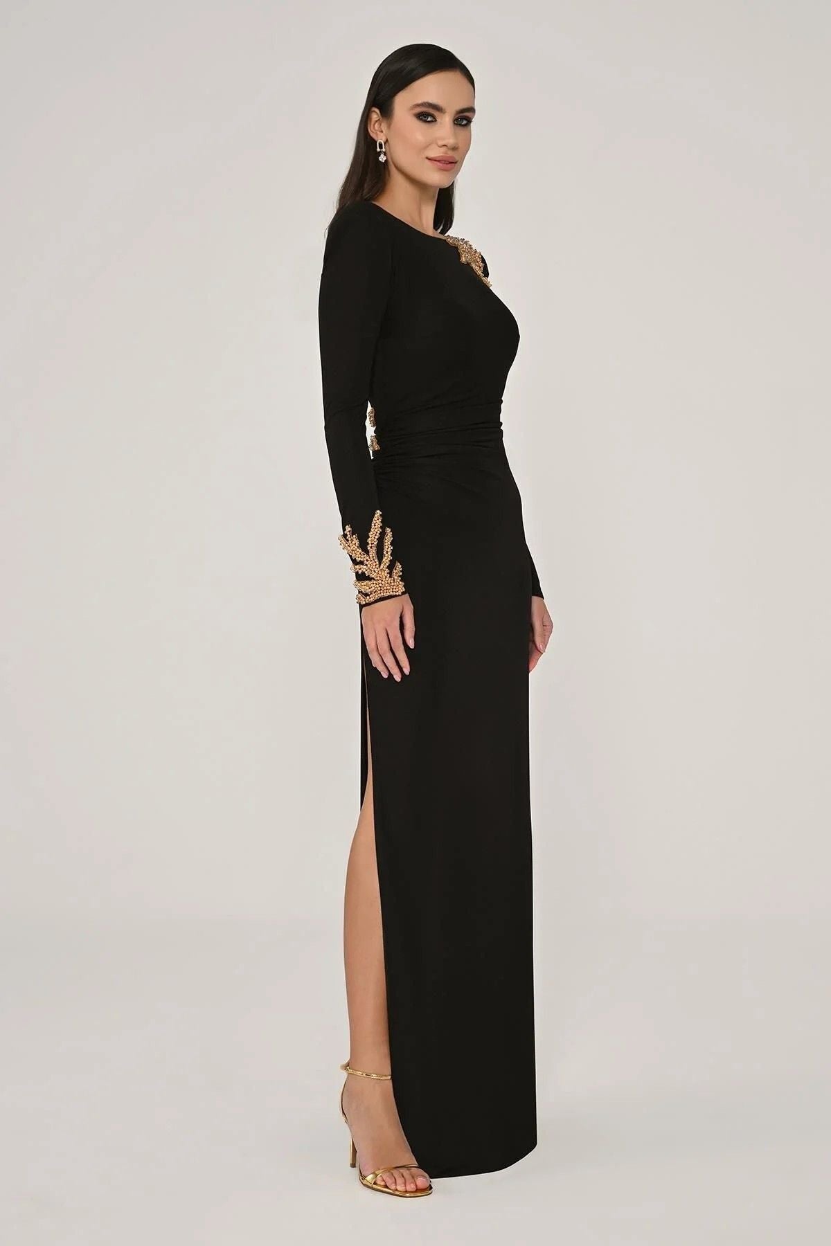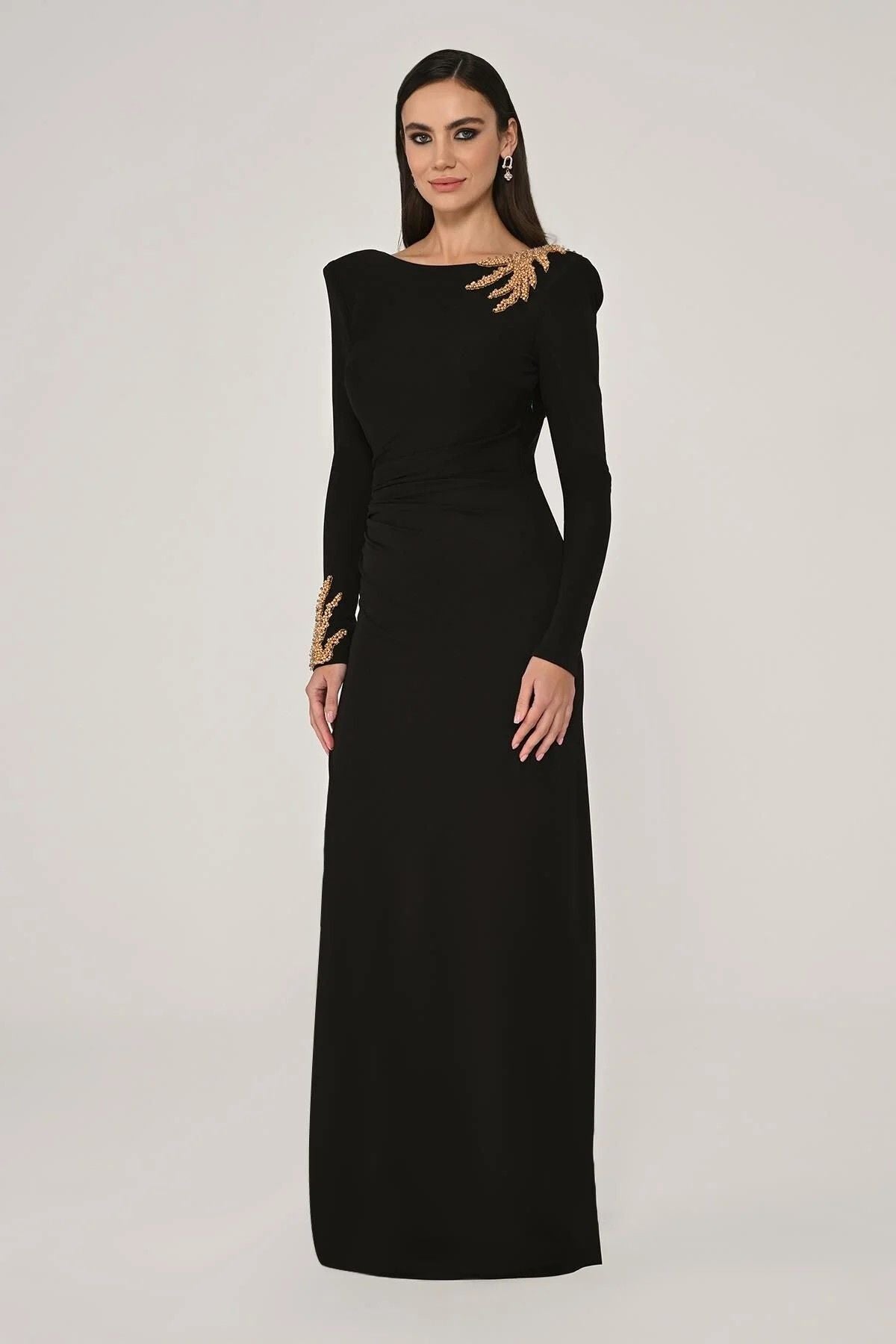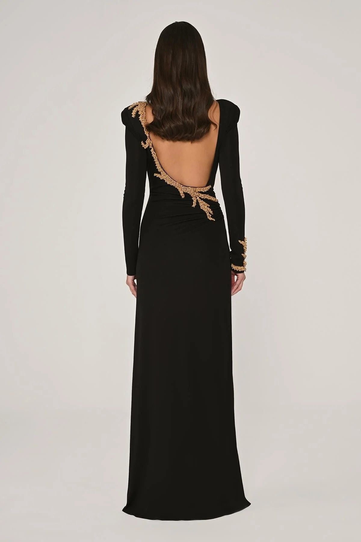 Alfa Beta Sırt Dekolteli İşlemeli Vatkalı Uzun Abiye Elbise