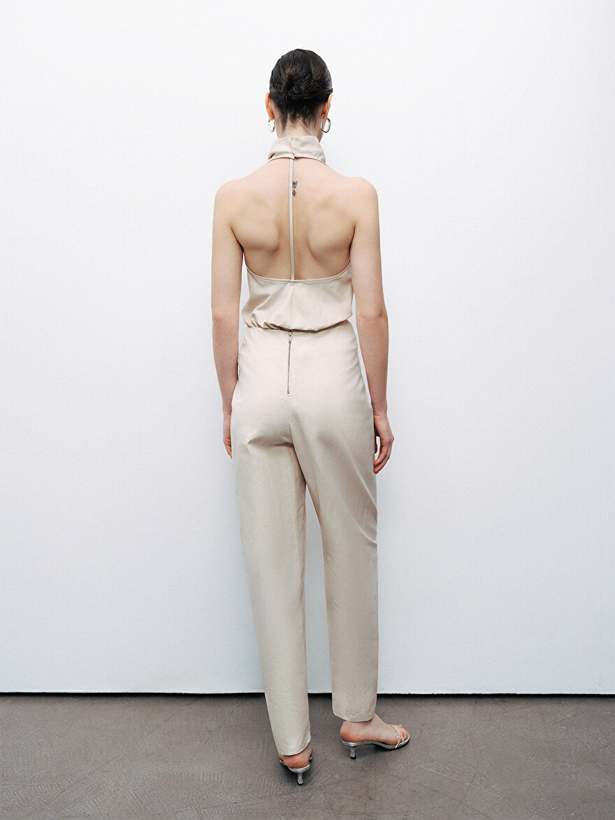 Ürün Açıklaması: Relaxed fit, tam kalıp, astarsız, normal bel, bilek boy, metal fermuar kapamalı, toka ve asimetrik drape detaylı pantolon