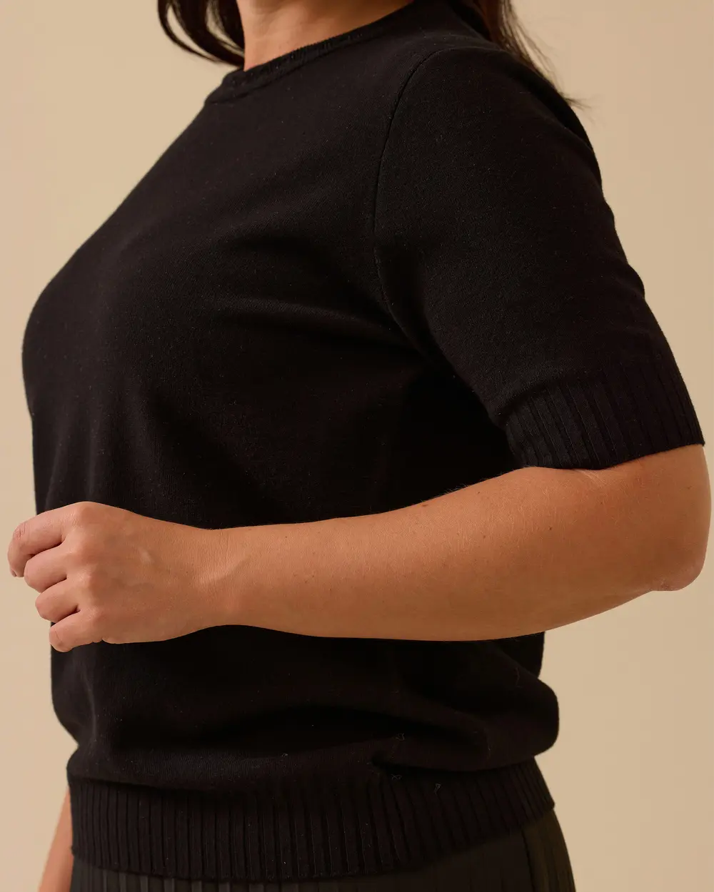 Büyük Beden Kısa Kollu Basic Triko Bluz, sade ve zamansız tasarımıyla gardırobunuzun kurtarıcı parçalarından biridir.