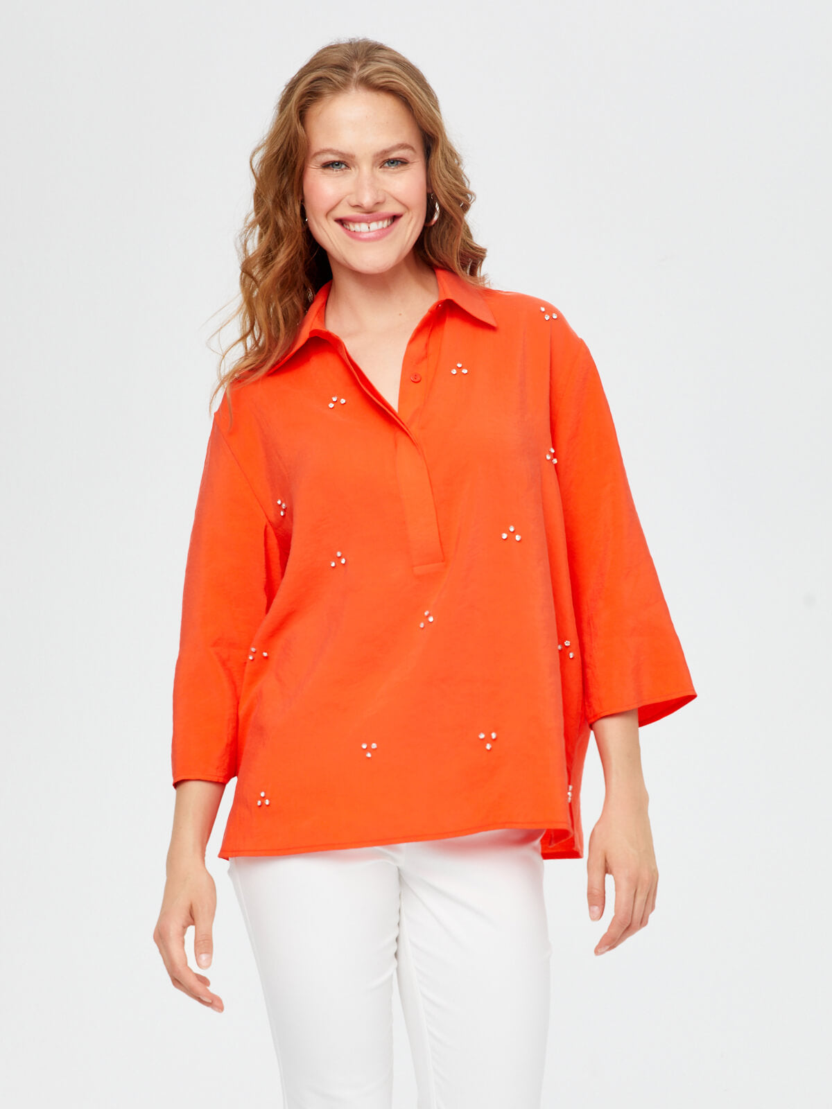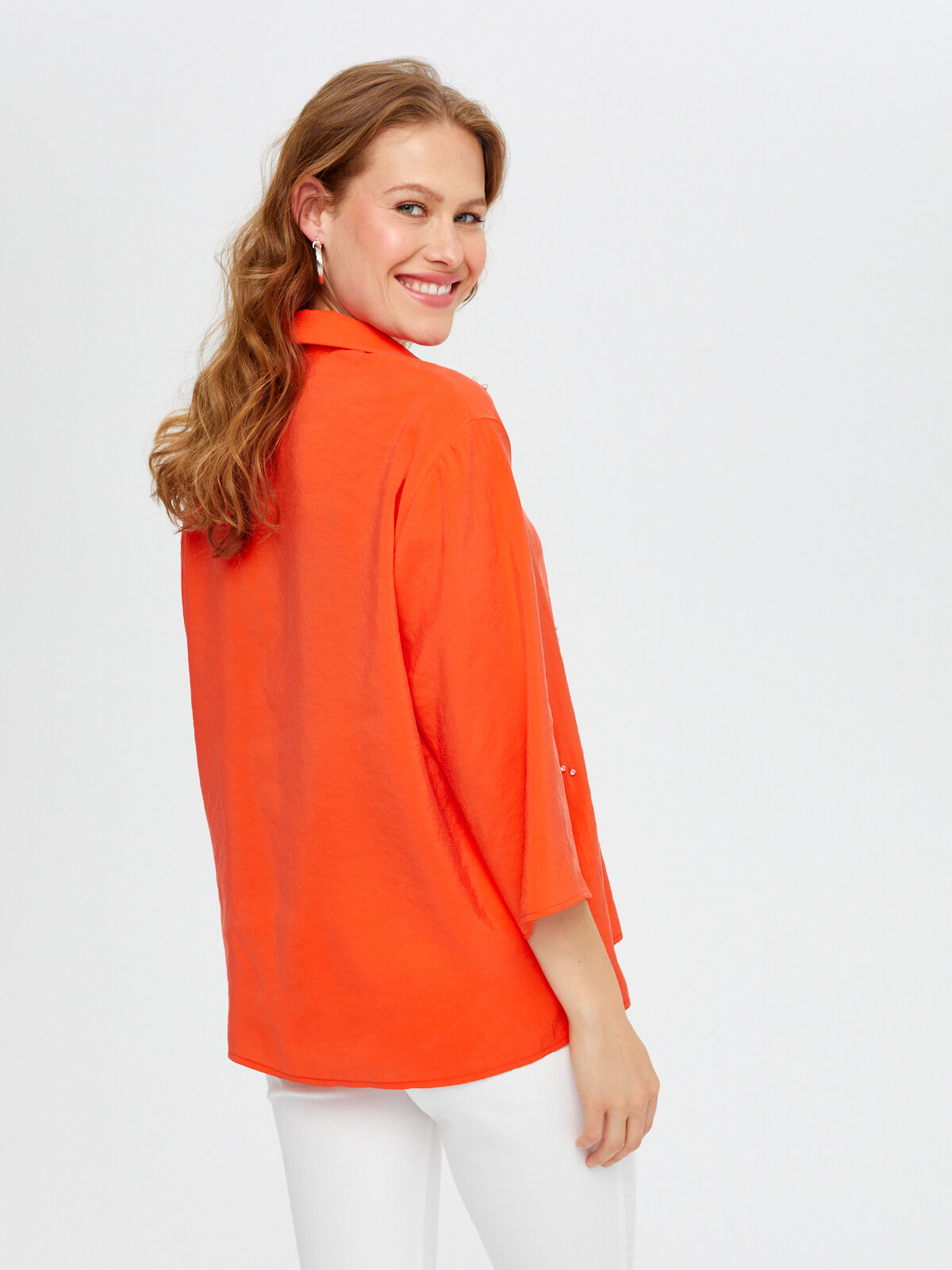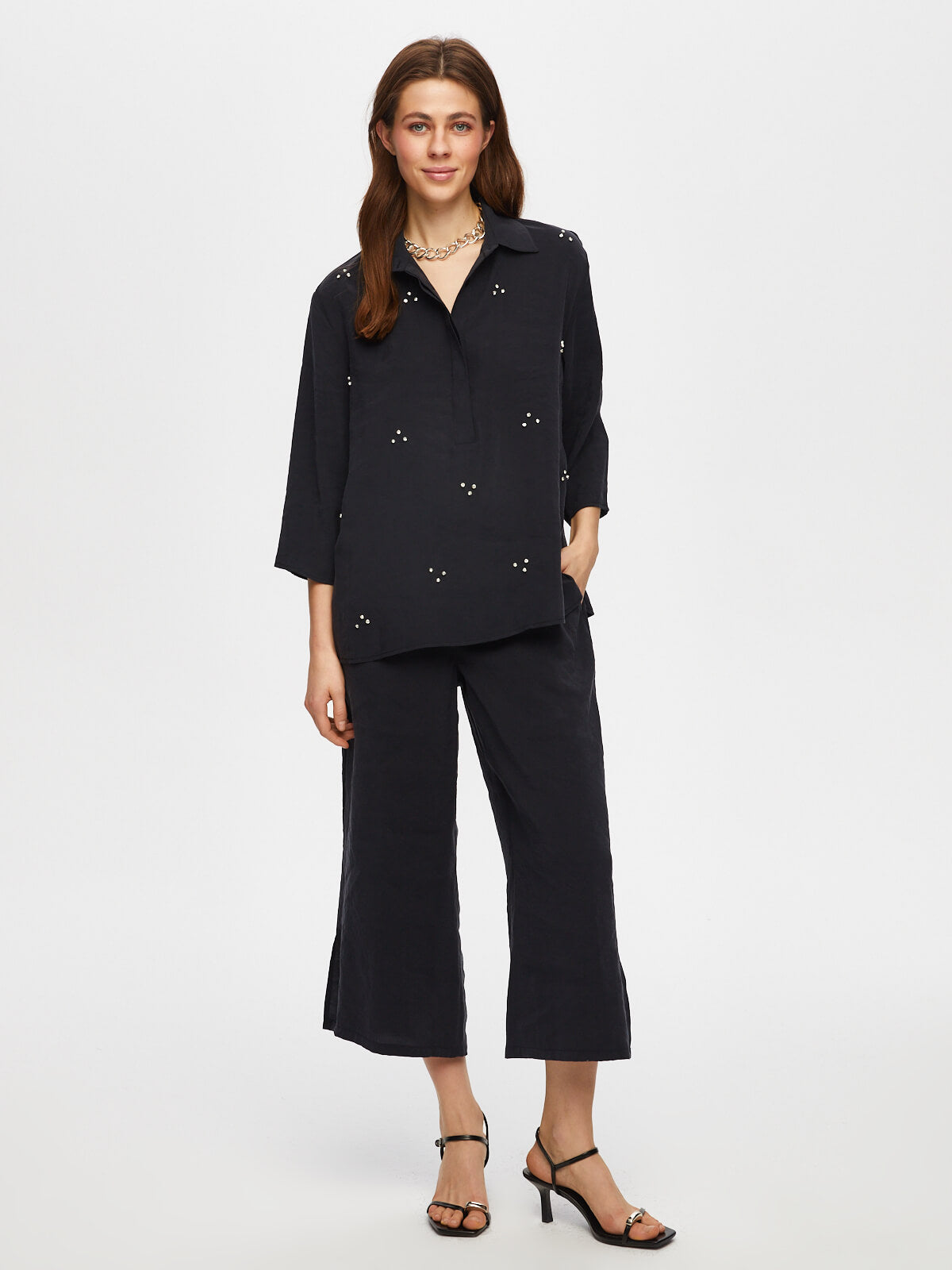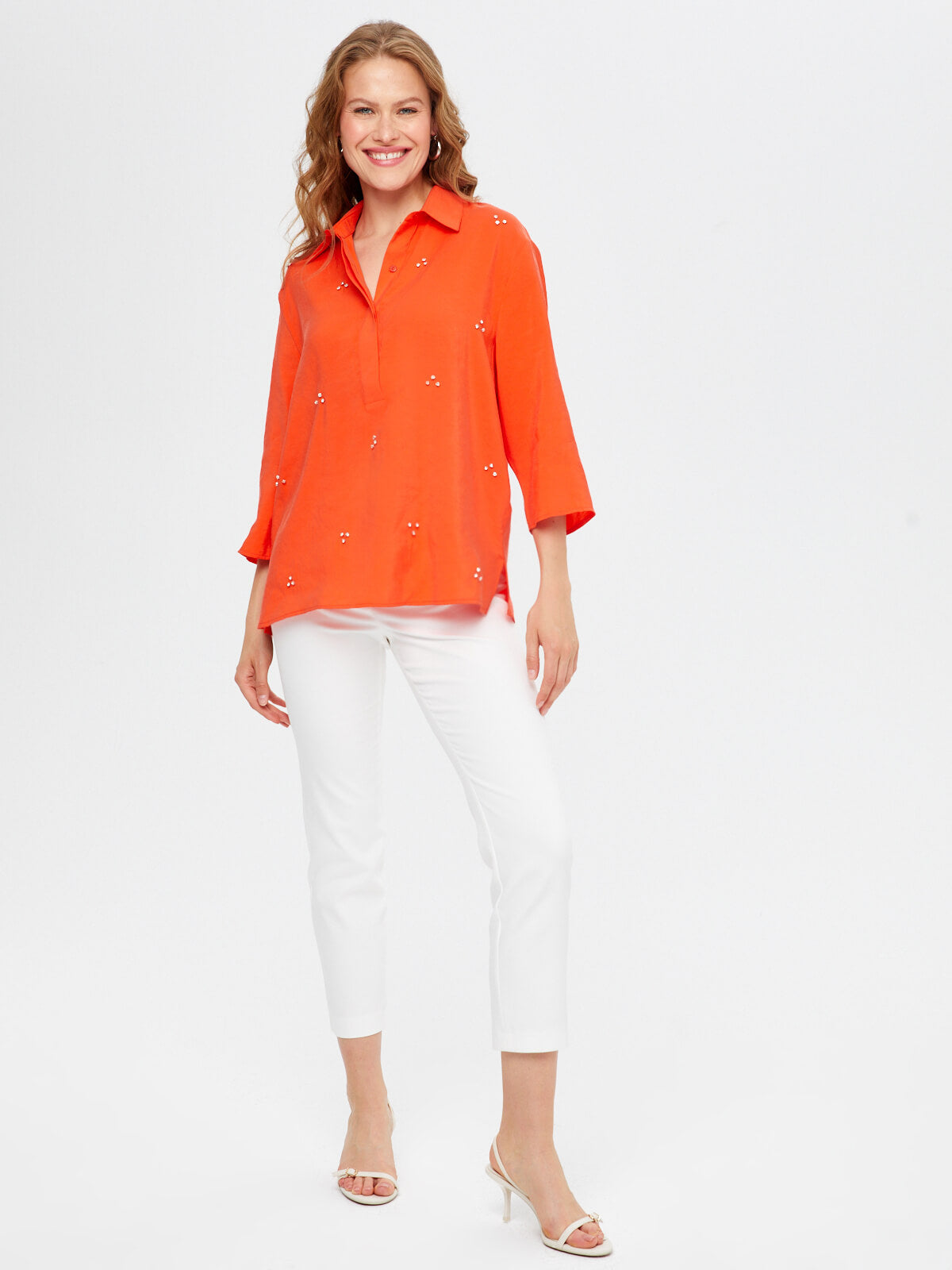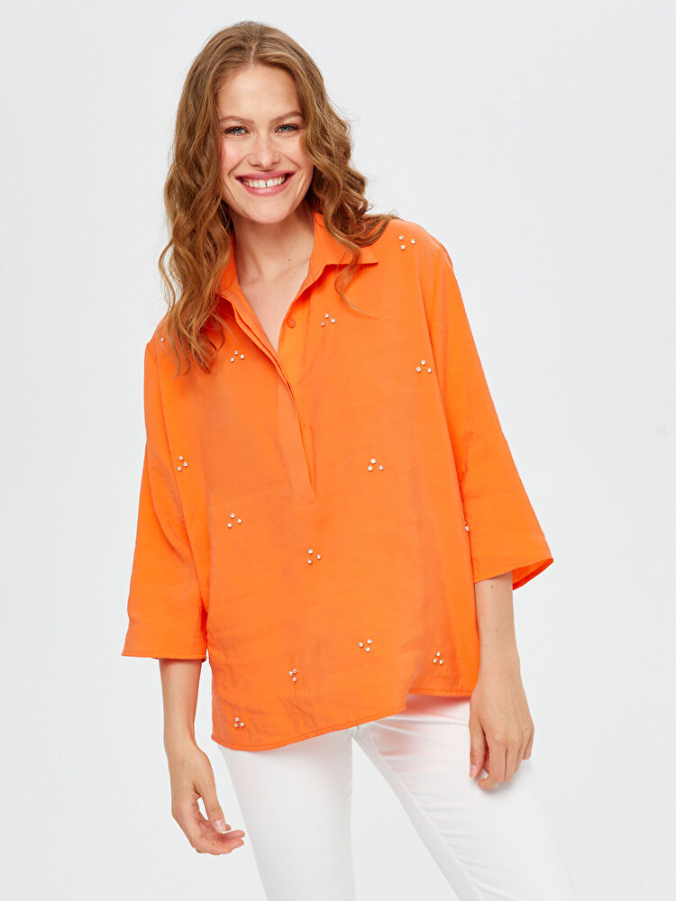 Bluz Yarım Patlı Taş Detaylı 3/4 Kol Modallı Bluz Faik Sönmez