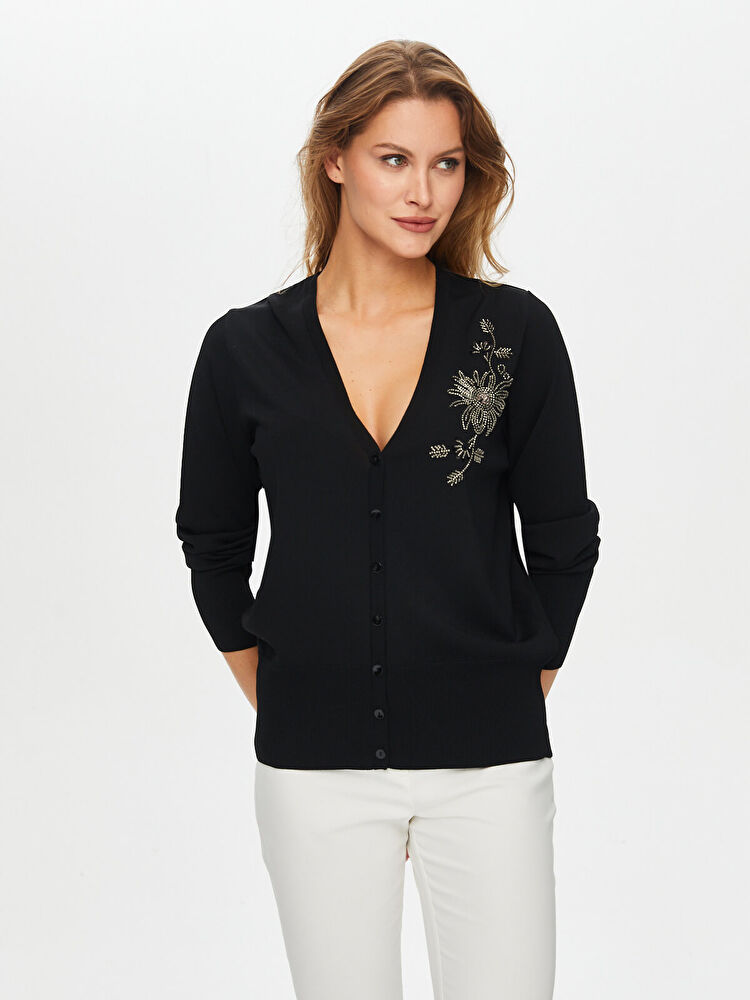 Boncuk Nakış Detaylı Triko Hırka Faik Sönmez