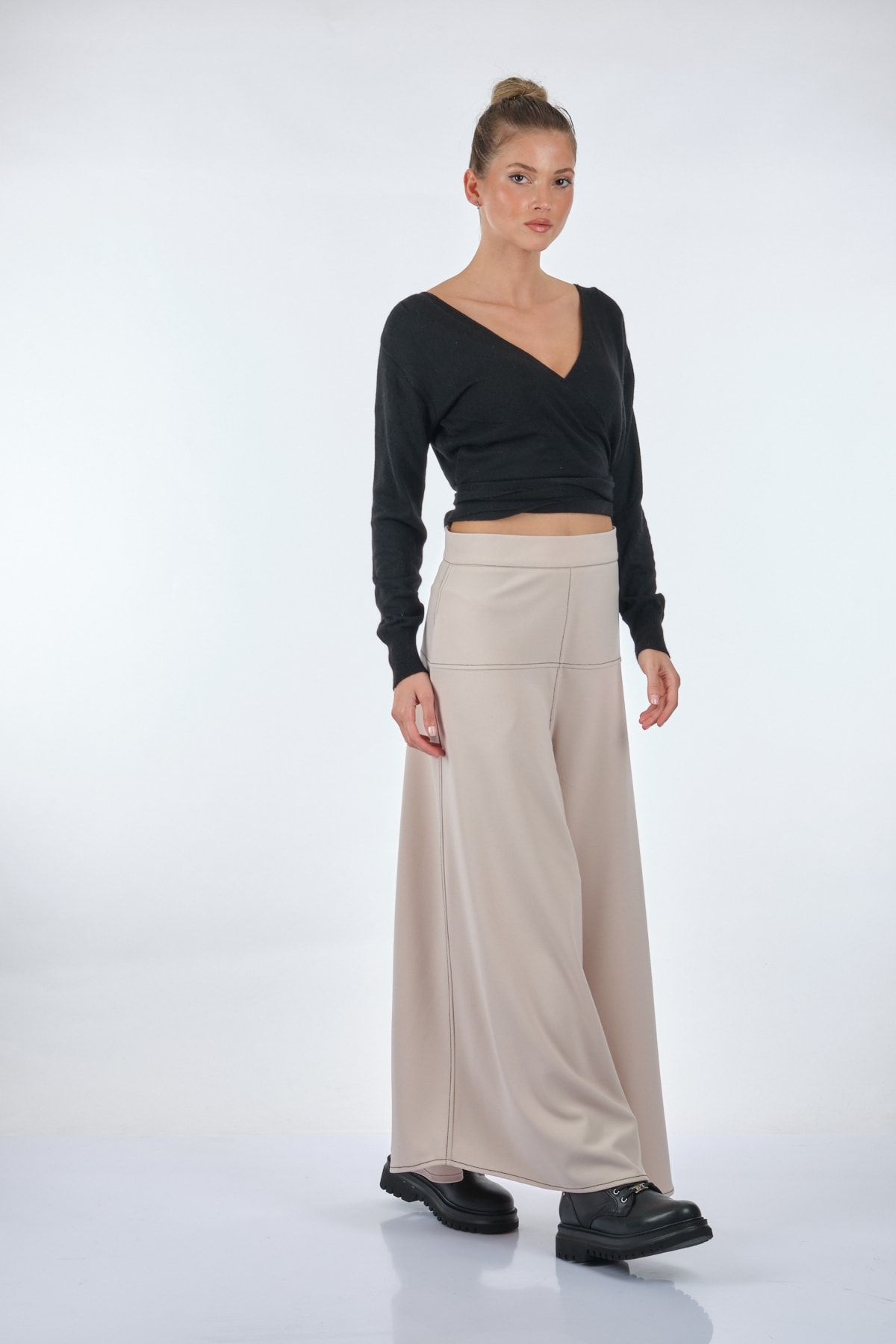 Manken Ölçüsü : Kilo : 52 kg / Boy : 1.73 cm / Göğüs : 86 cm / Bel : 65 cm / Basen : 92 cm / Beden : S; Kumaş İçeriği: % 50 viskoz %45 polyemid %5 angora