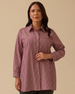 Büyük Beden Çizgili Gömlek, modern çizgileri ve rahat kesimiyle günlük şıklık sağlar.