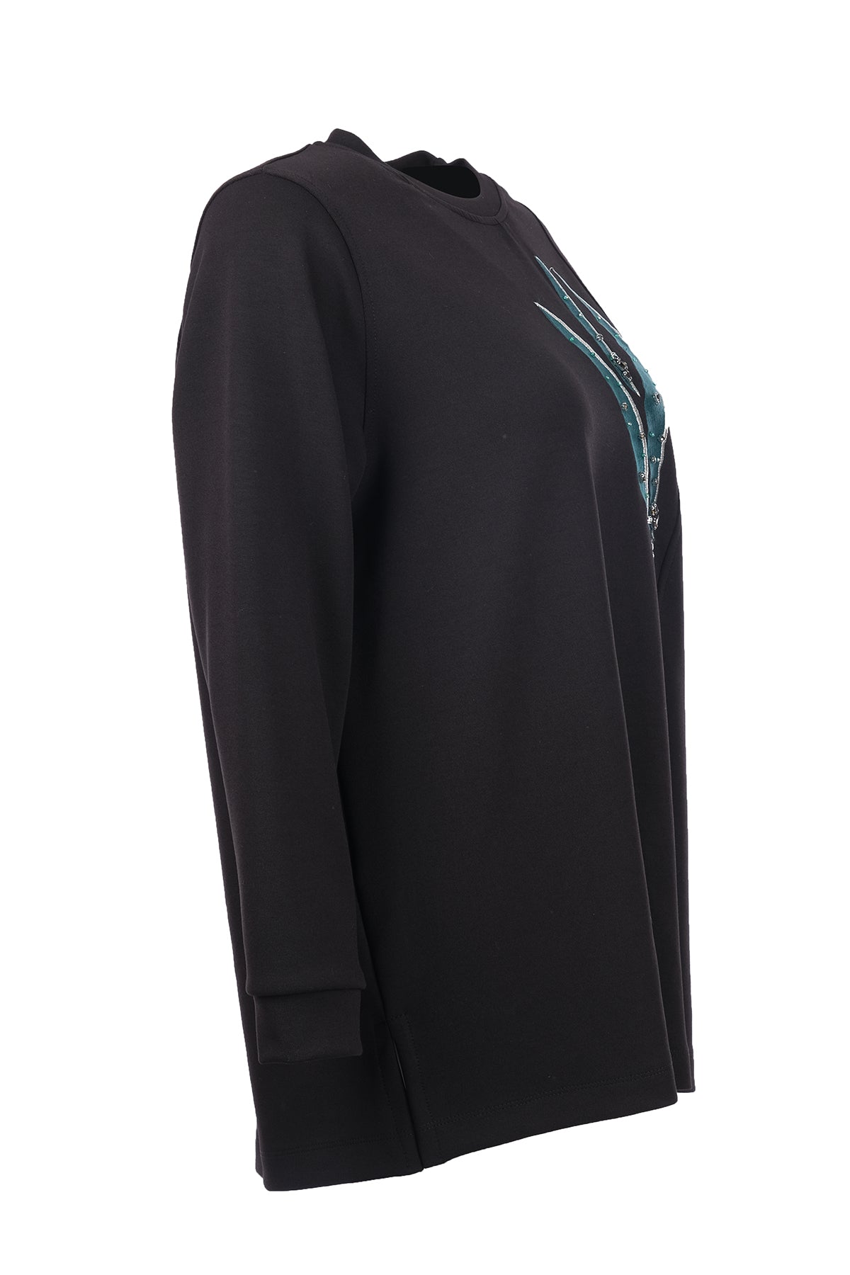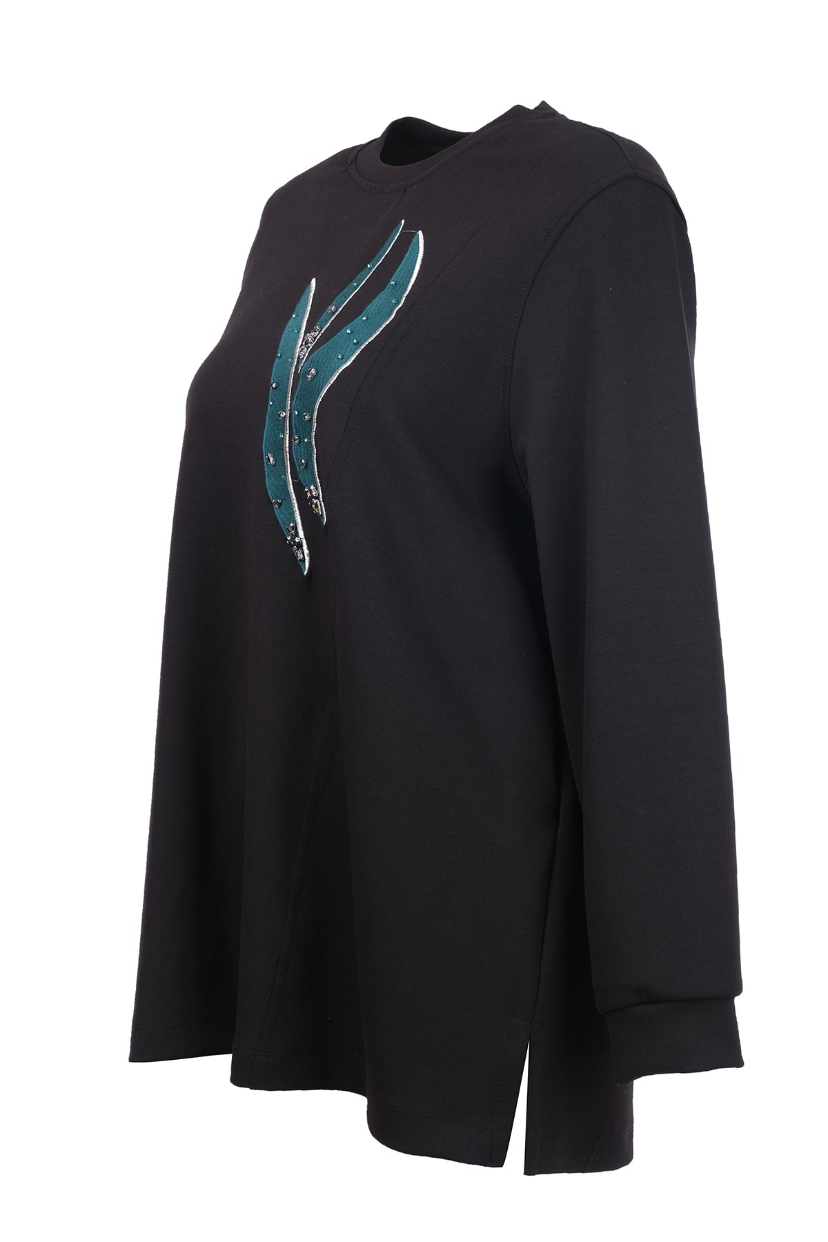 Büyük Beden Desenli Taş İşlemeli Sweatshirt,desen detayıyla günlük şıklığa modern bir dokunuş katar.