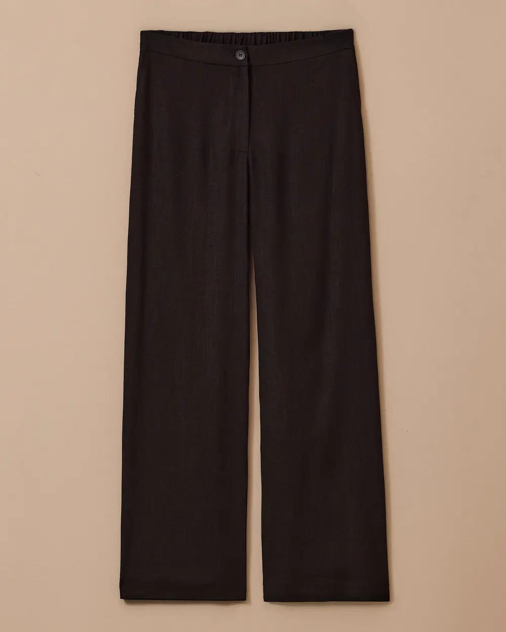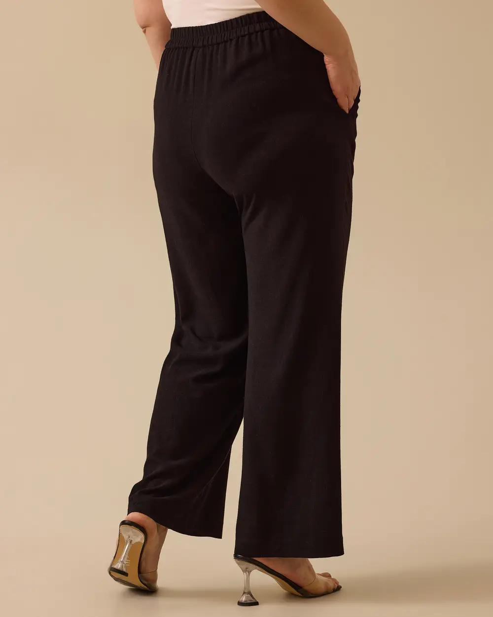 Büyük Beden Düğmeli Bol Paça Pantolon, geniş paça kesimi ve düğme detaylarıyla konforlu ve şık bir stil sunar.