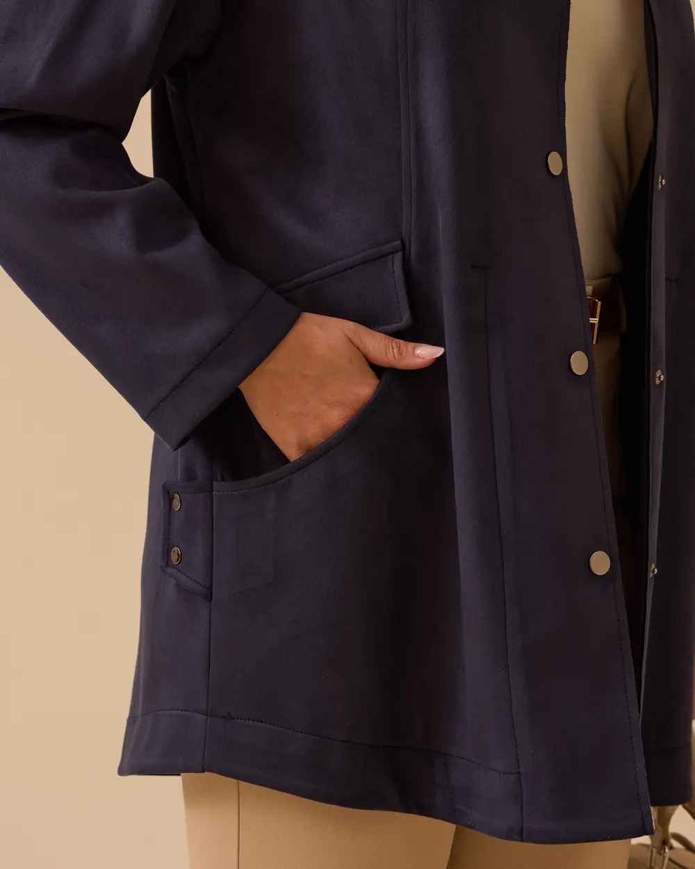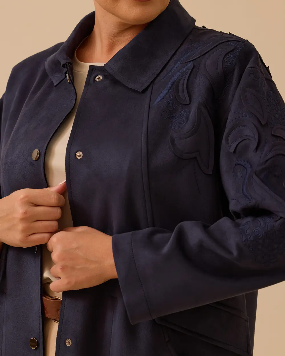 Büyük Beden Gömlek Yaka Çıtçıt Düğmeli Süet Kap, şık gömlek yaka tasarımı ve pratik çıtçıt düğmeleriyle günlük şıklığınızı tamamlayacak modern bir kap.