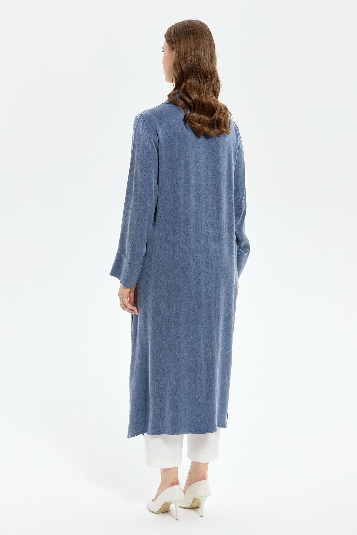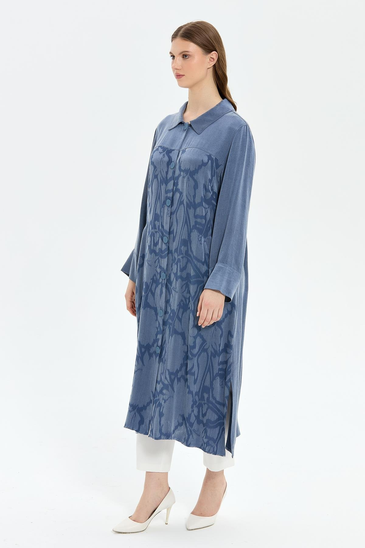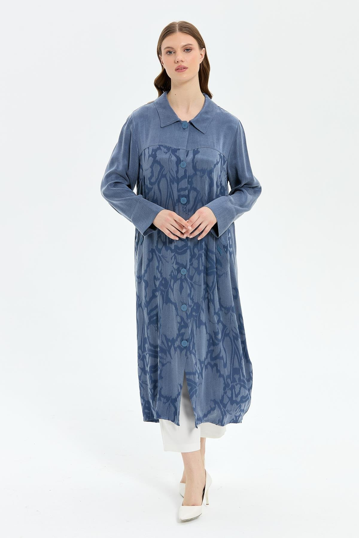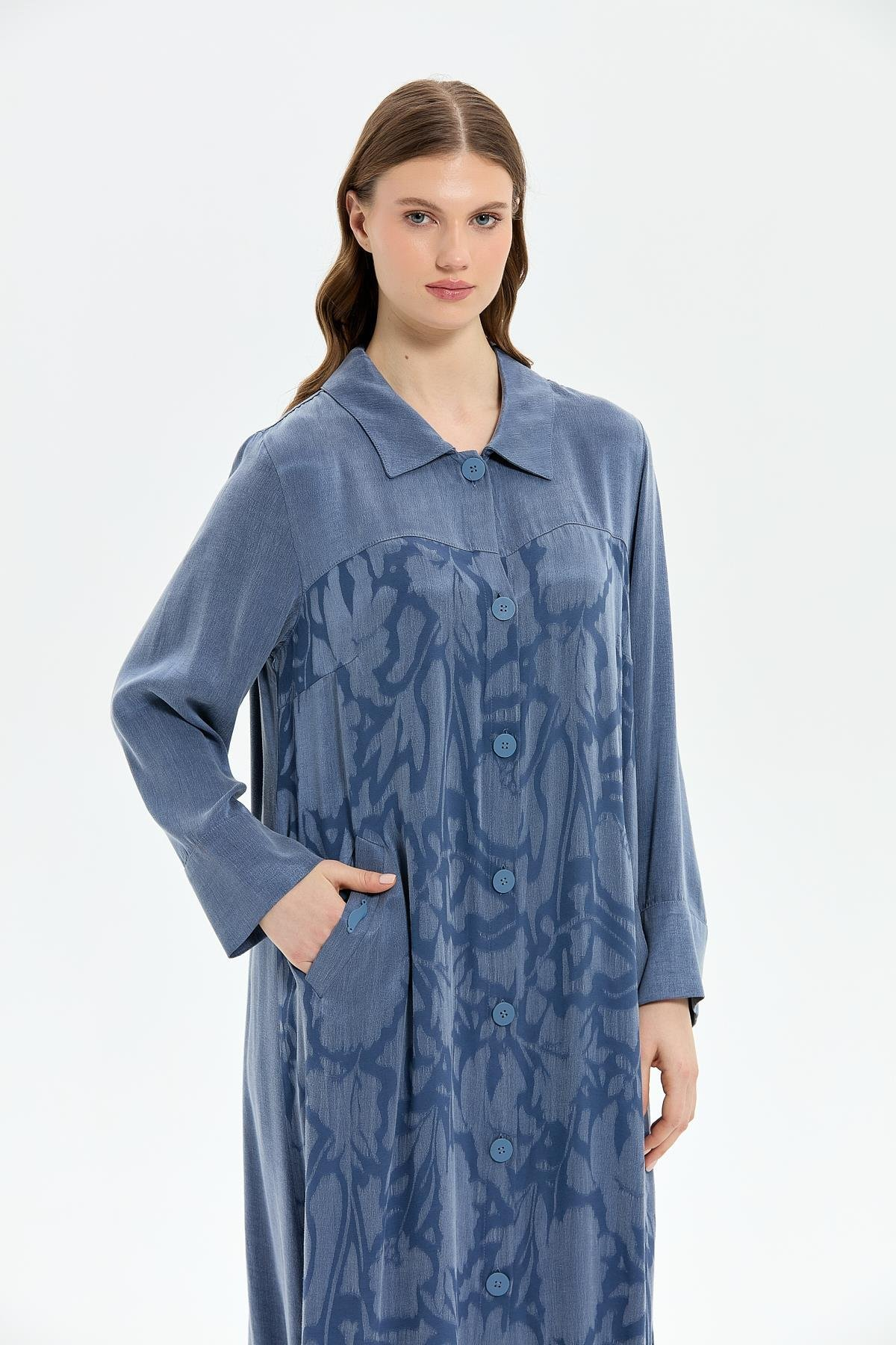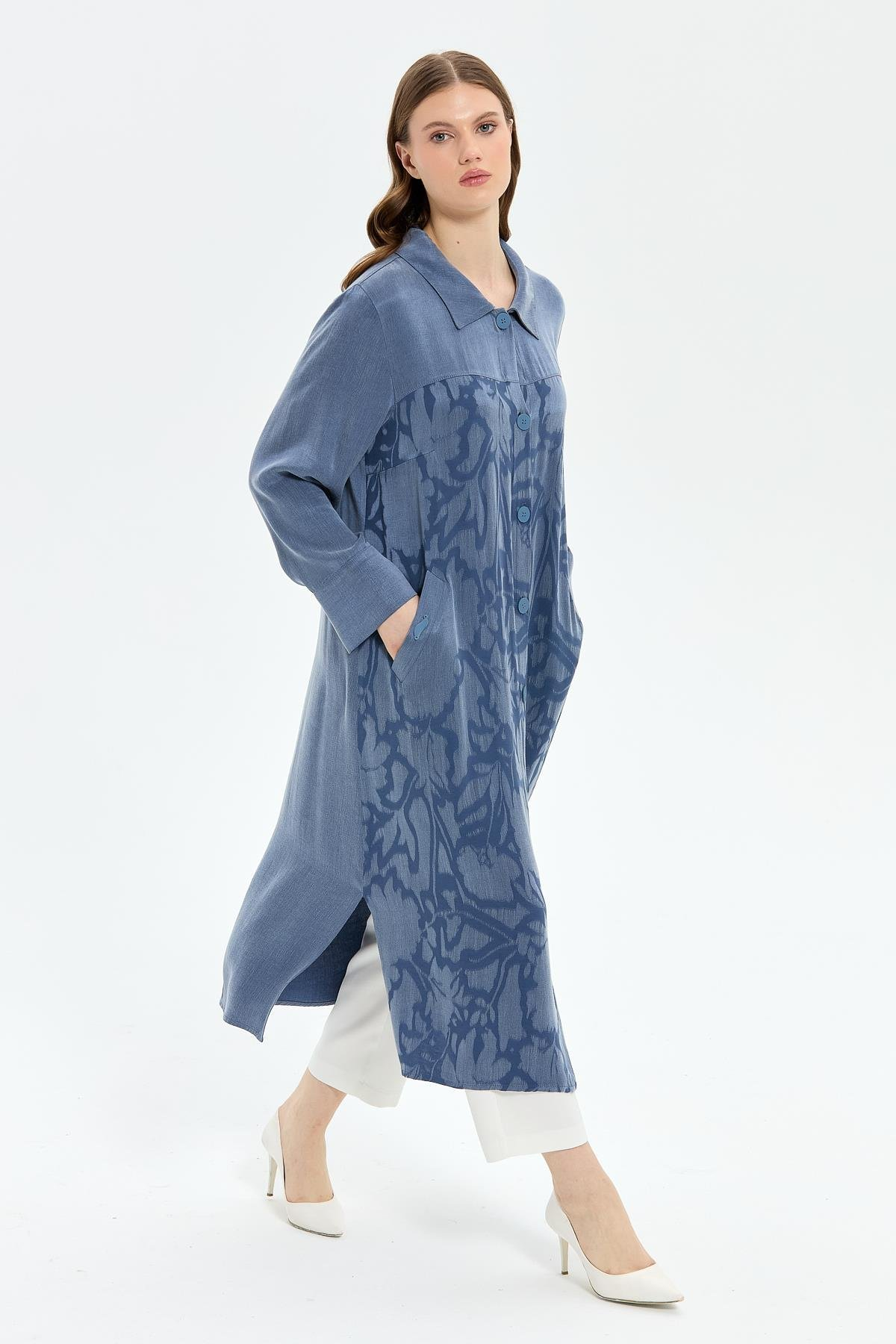 Dokuma ipek kupra kumaş Düğme kapamalı Desenli ve düz garnili kap Tam kalıp Kap boyu 123 cm