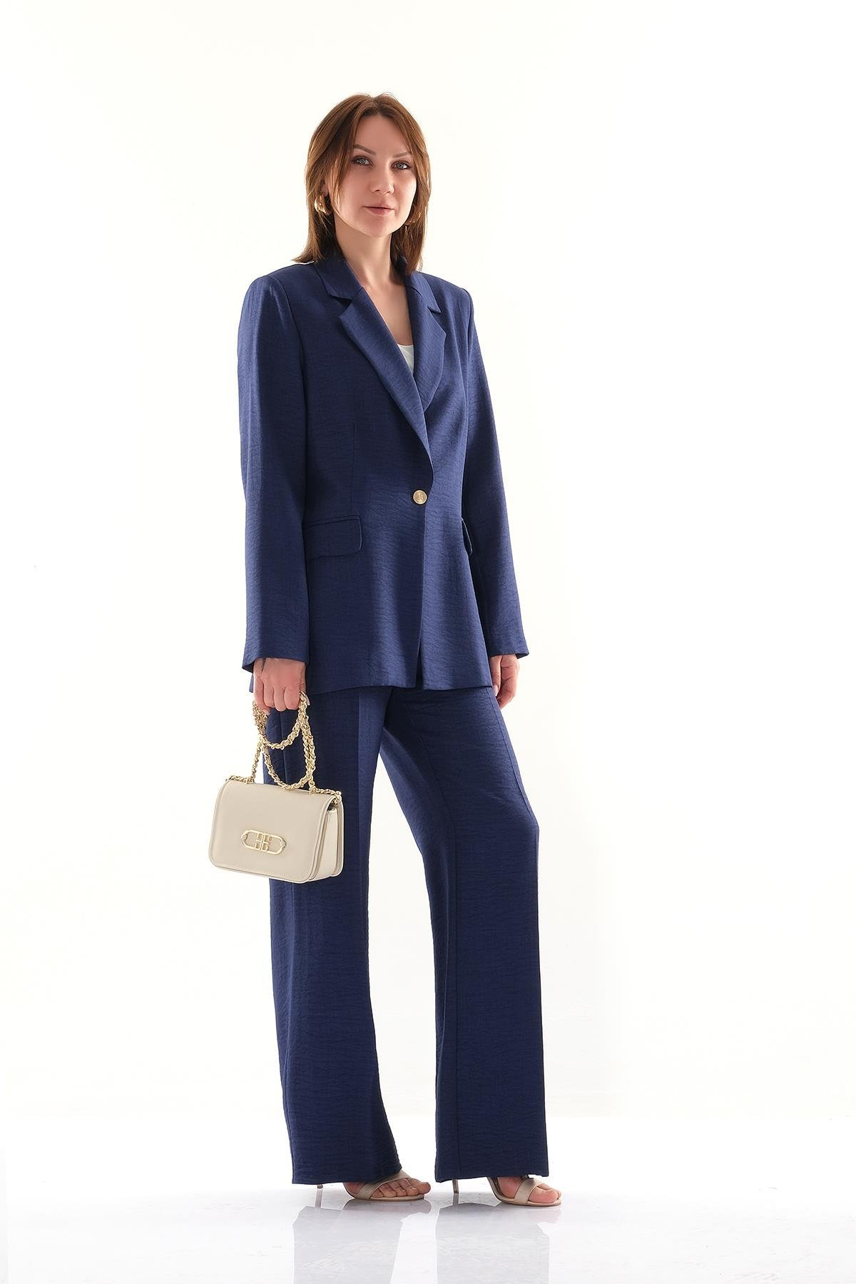Büyük Beden Keten Görünümlü Tek Gold Düğmeli Ceket Bol Paça Pantolon Takım Explosion