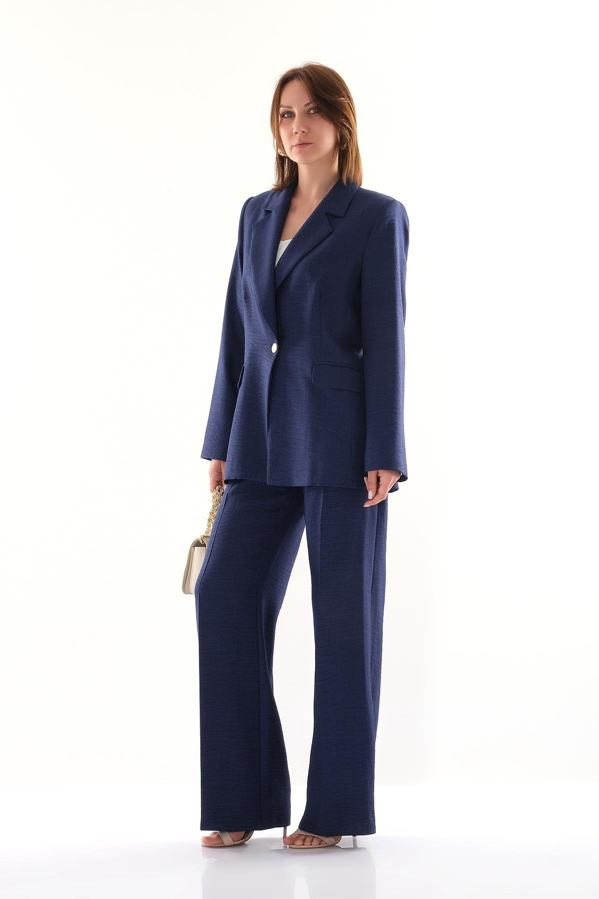 Tekdüğmeli Ceket,Gizli Fermuarlı Bol Paça Pantolon Takım.