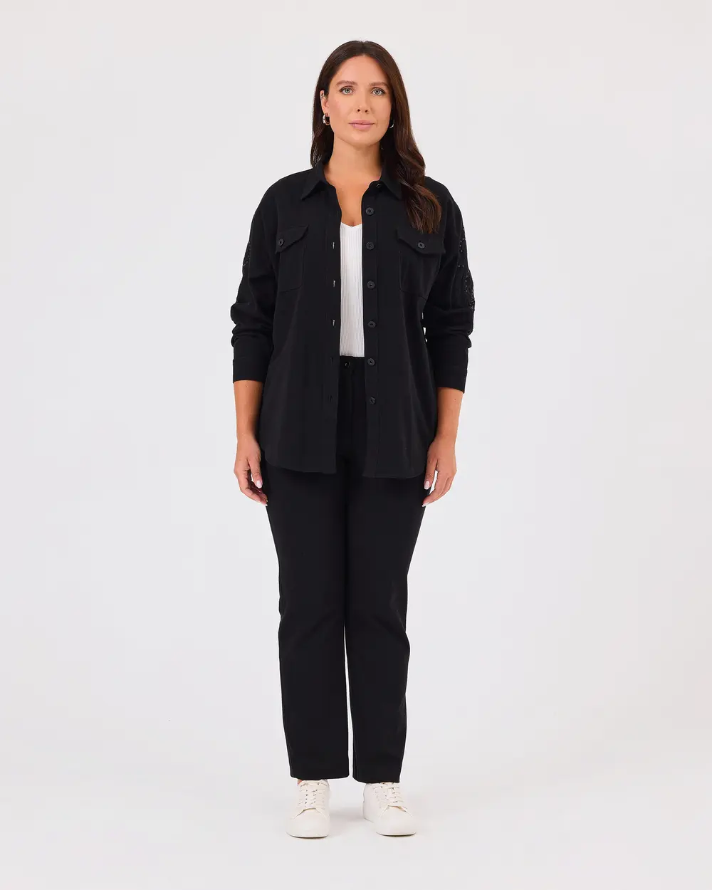 Büyük Beden Nakışlı Düğme Detaylı Ceket, kollarındaki nakış işçiliği ve düğme detaylarıyla şık bir görünüm sunar. Hem günlük hem de özel gün kombinleriniz için idealdir.