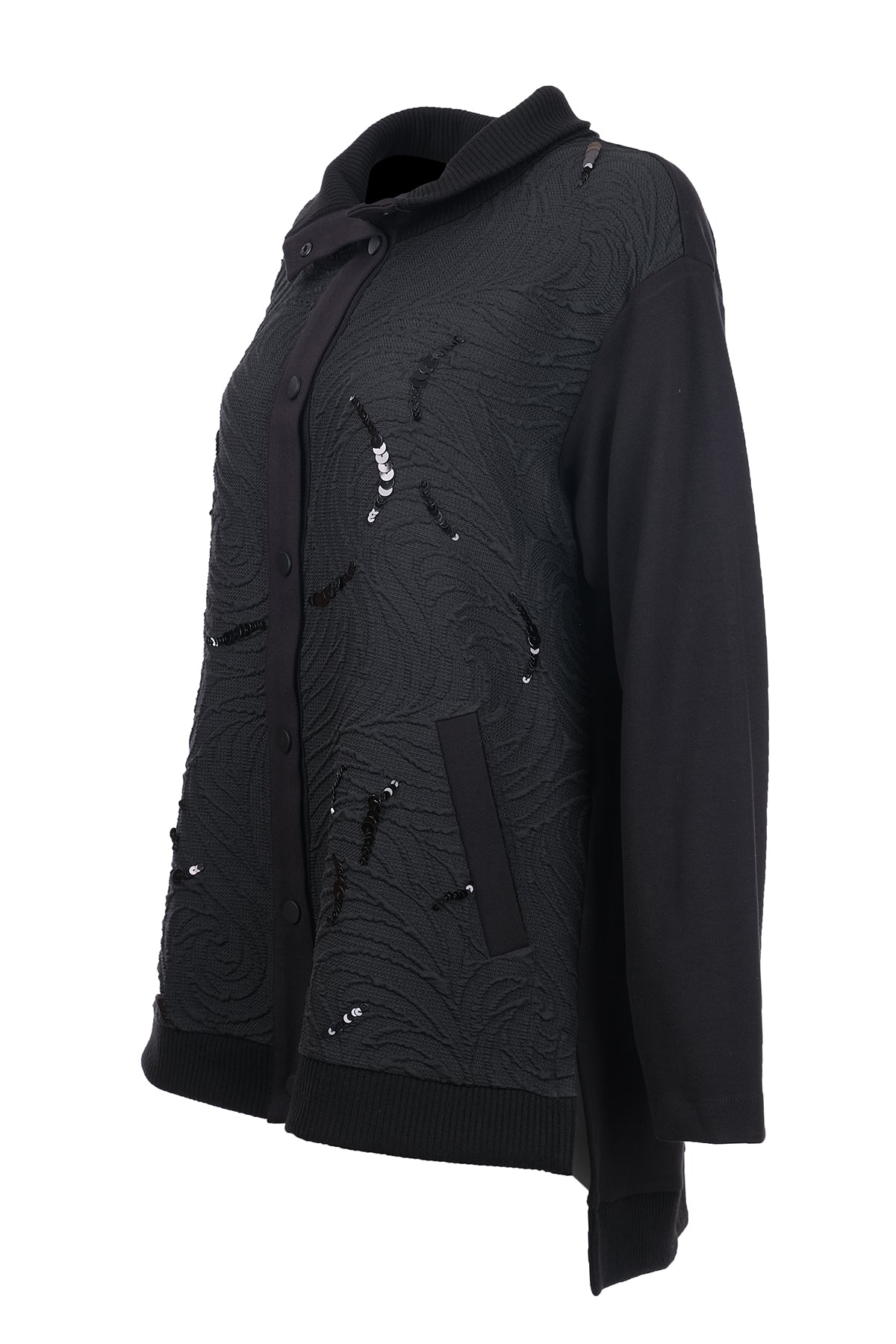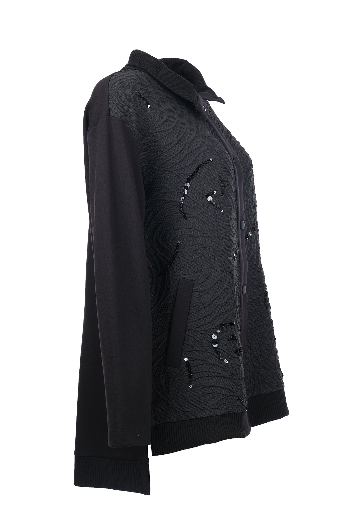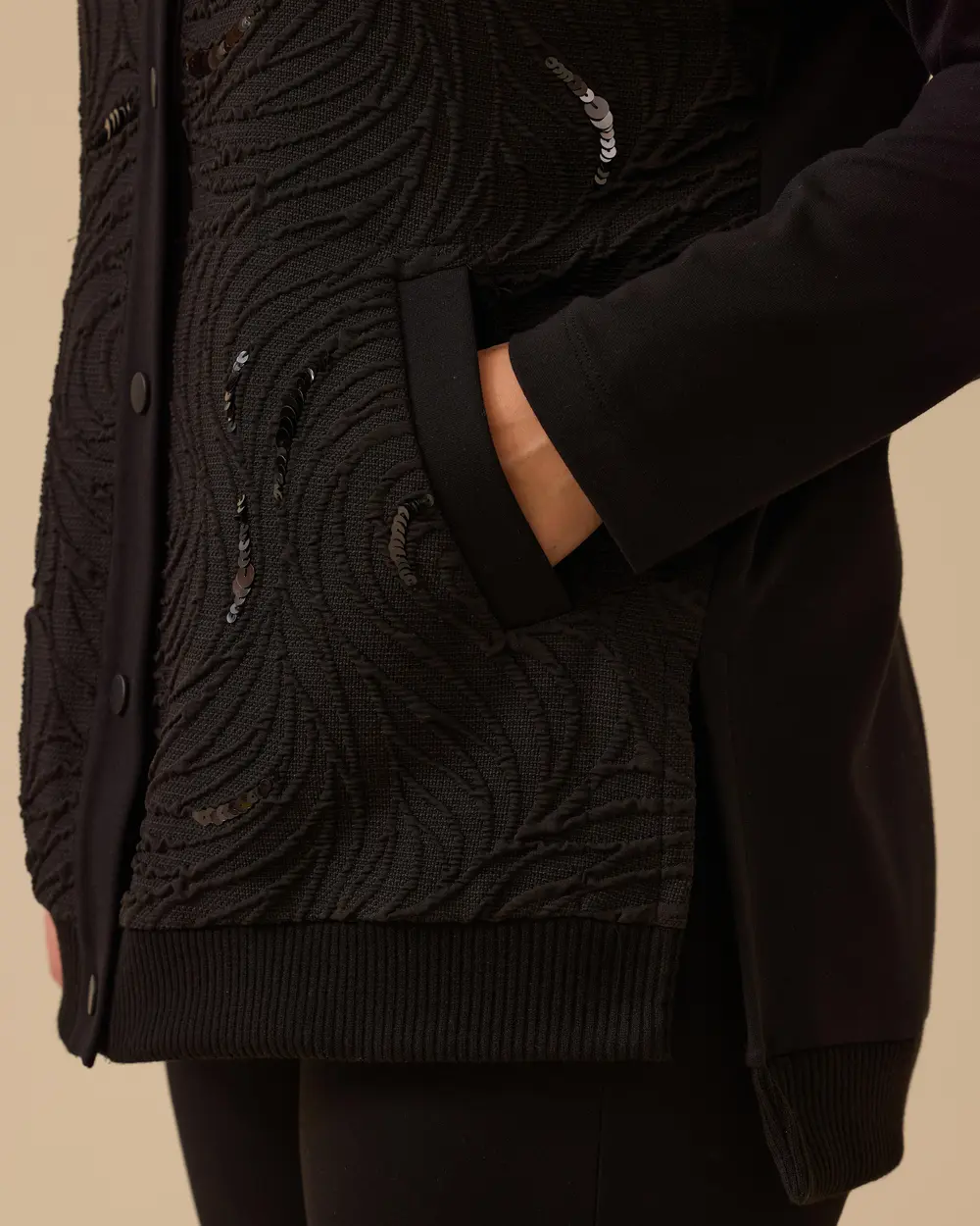 Büyük Beden Pul Detaylı İşlemeli Ceket, rahat kalıbı ve desenli yüzeyiyle günlük kullanıma uygun.