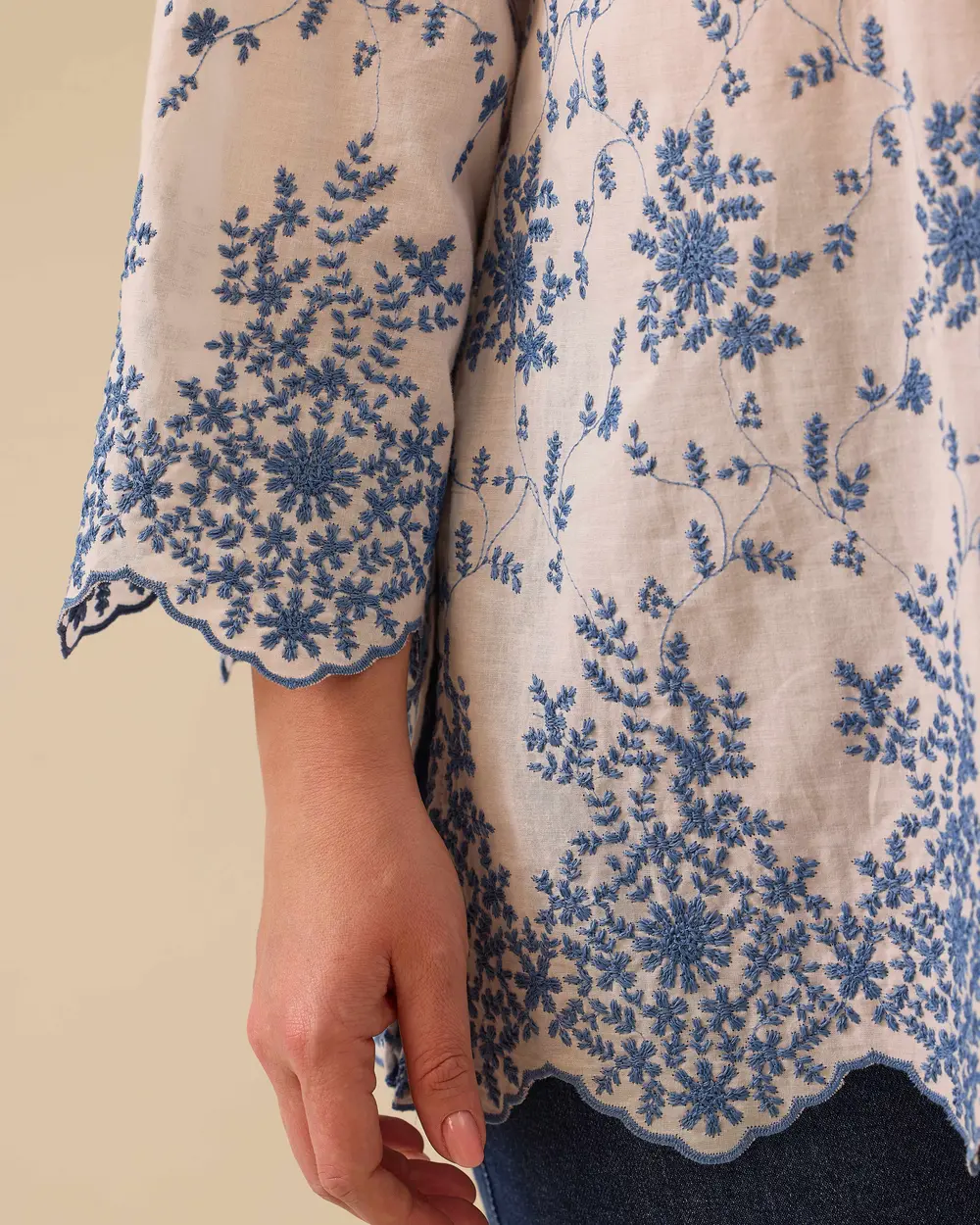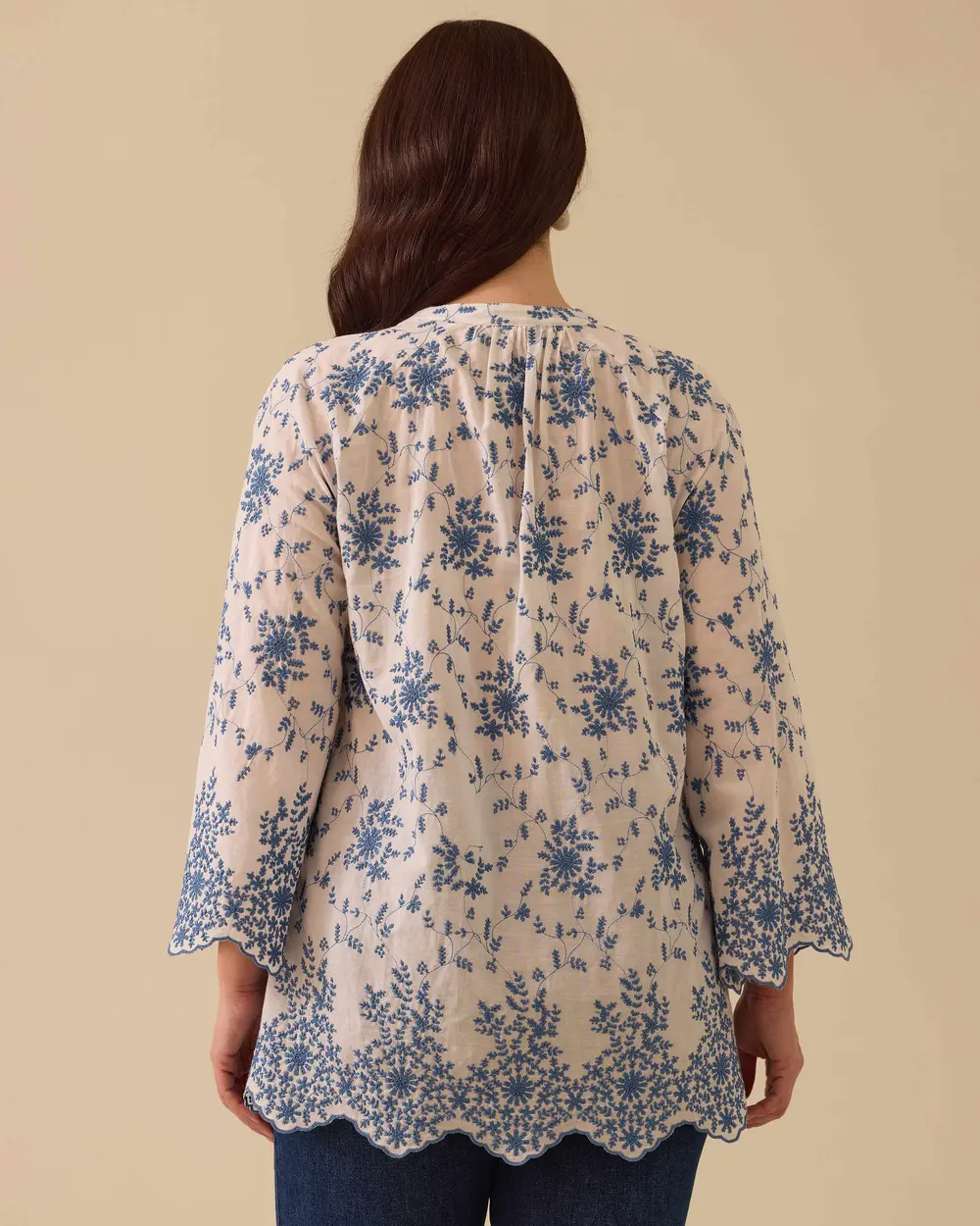 Büyük Beden Püskül Bağlamalı Desenli Bluz, floral desenleriyle enerjik bir stil sunar. Yaka kısmındaki püskül bağlama detayıyla hareket kazanır.