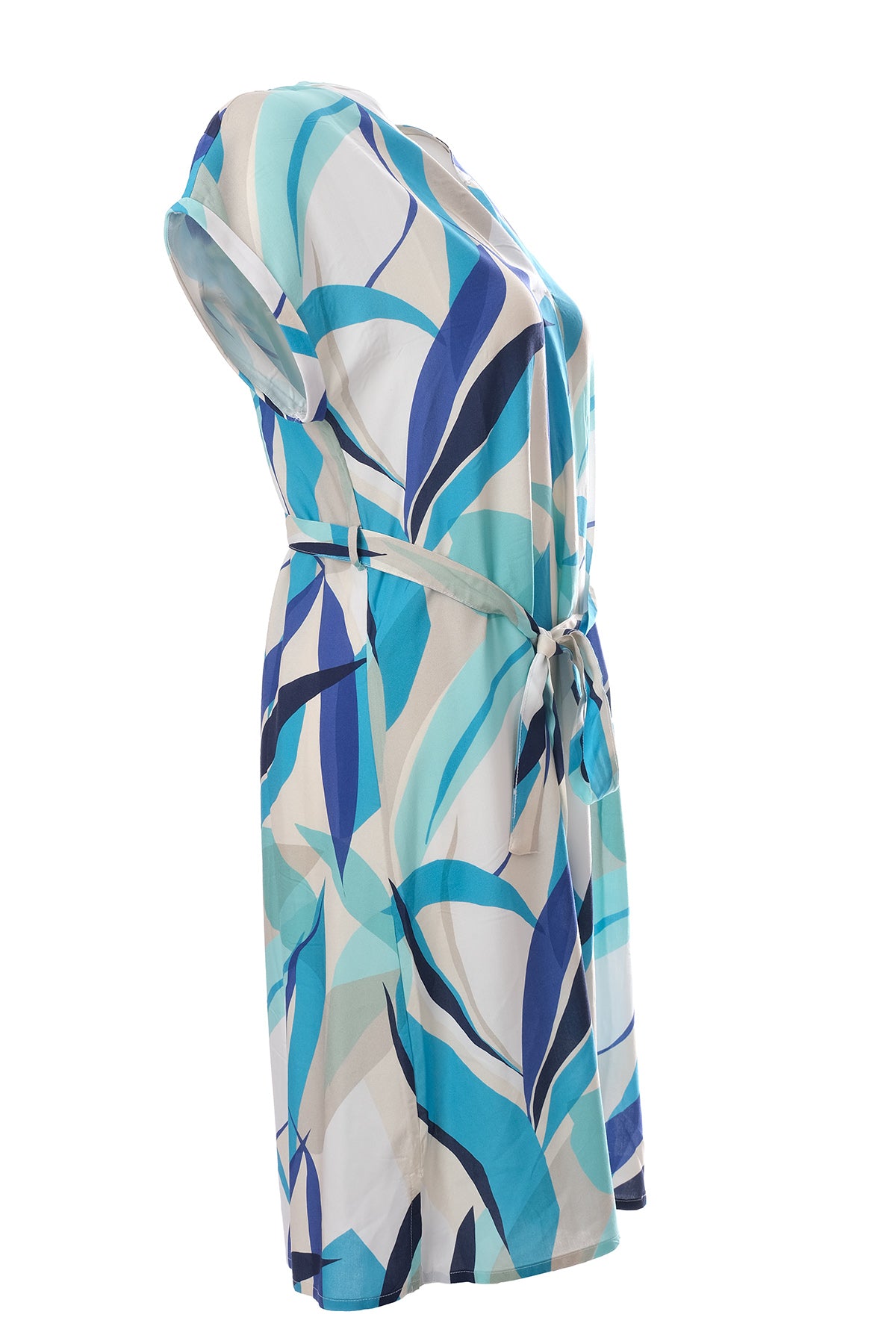 Canel Midi Boy Günlük Elbise - Kısa Kol, Kemerli, Desenli - Yazlık