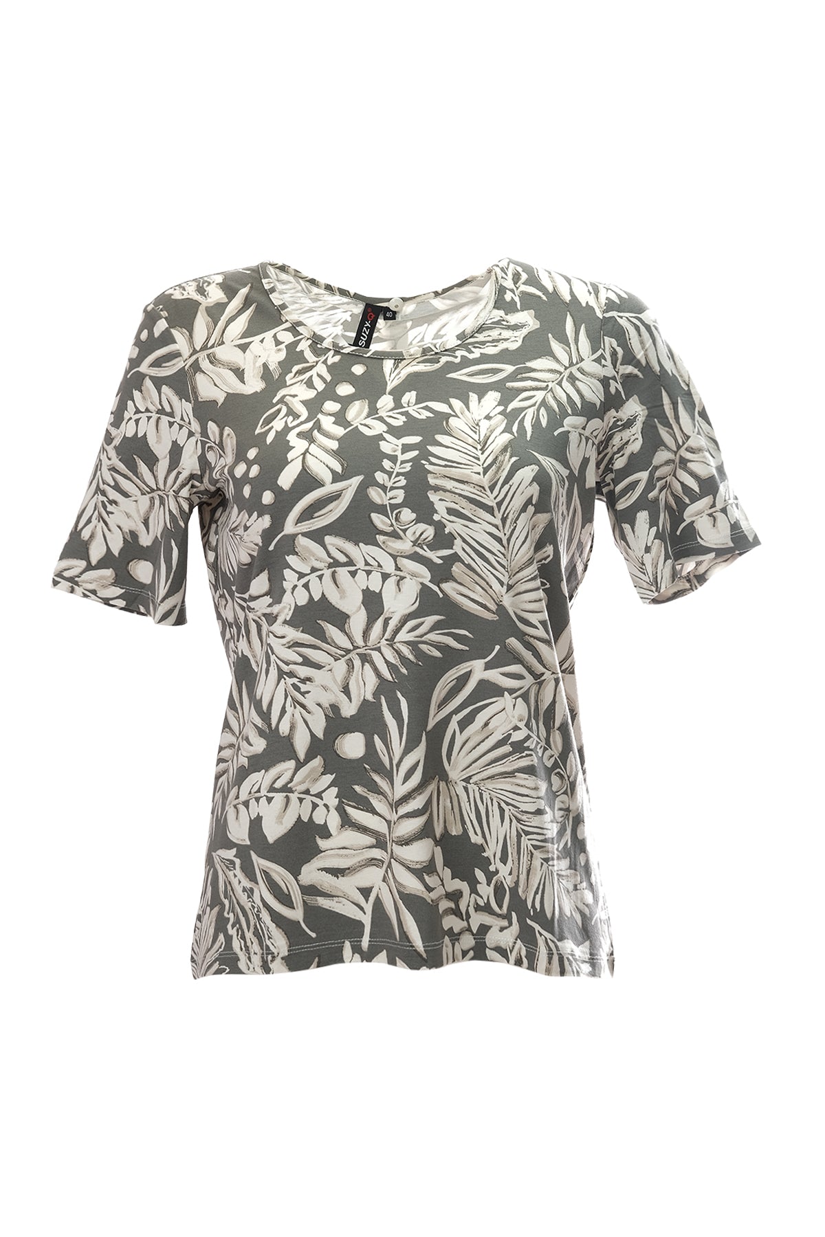 Canel Minimalist Bitki Desenli Kısa Kol Kadın T-Shirt - Regular Fit