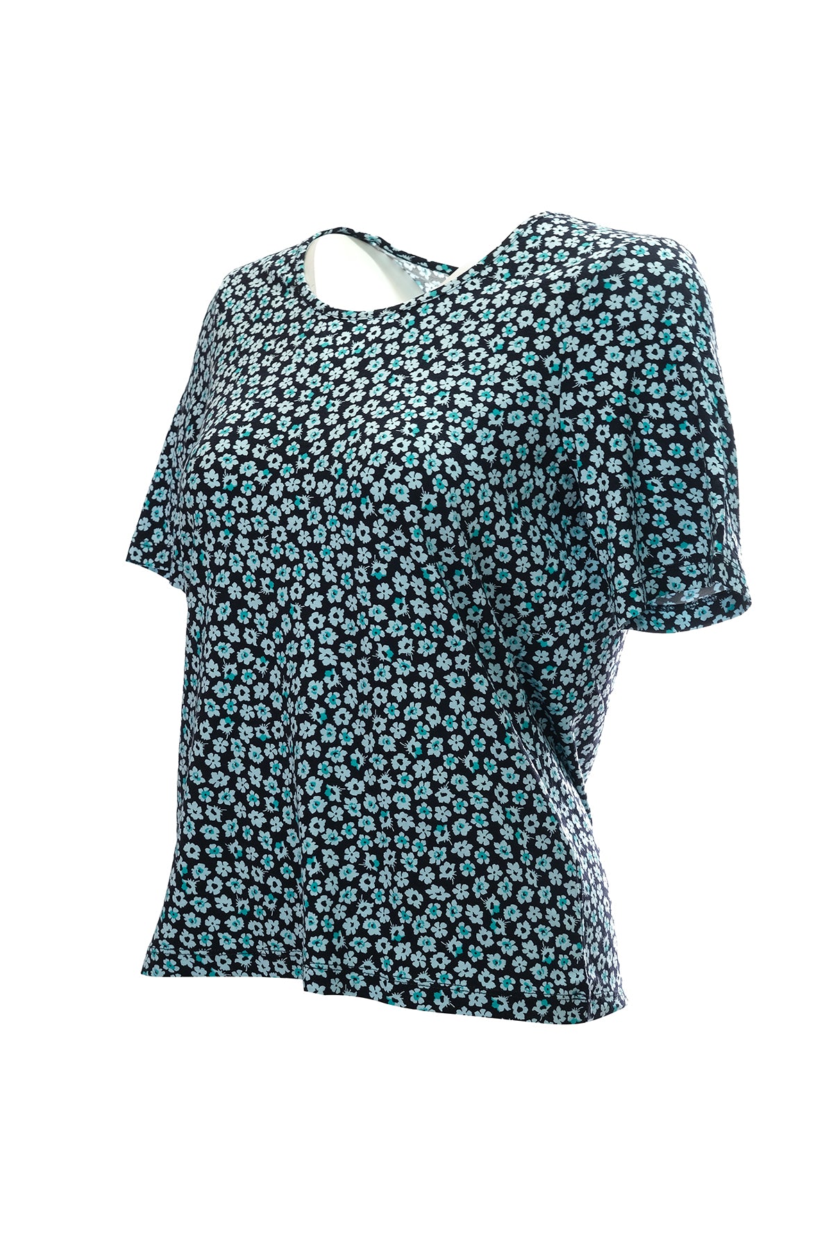 Canel Minimalist Çiçekli Desen Kısa Kol Kadın Tişört - Günlük Kullanım