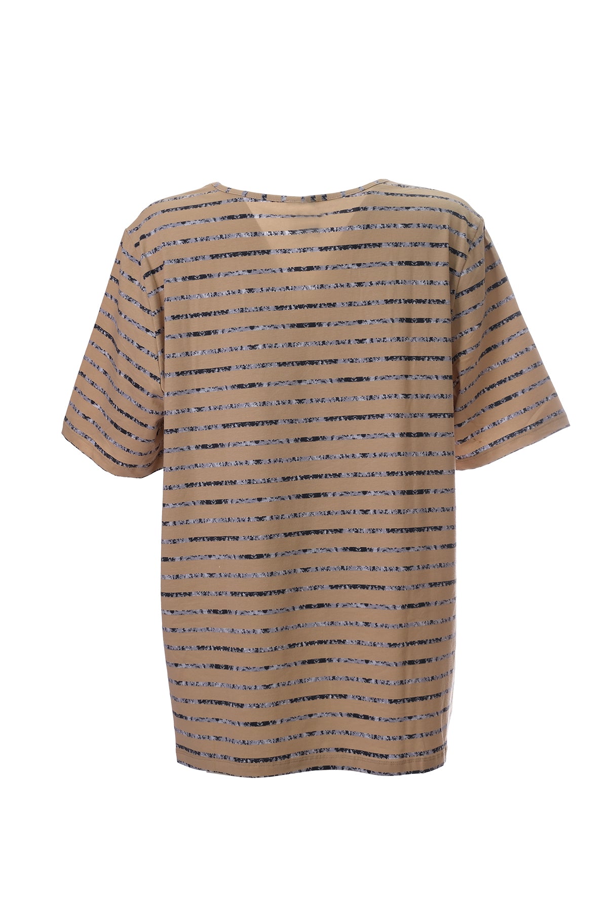 Canel Oversize Çizgili Minimalist Kadın T-Shirt - Kısa Kol Midi Günlük