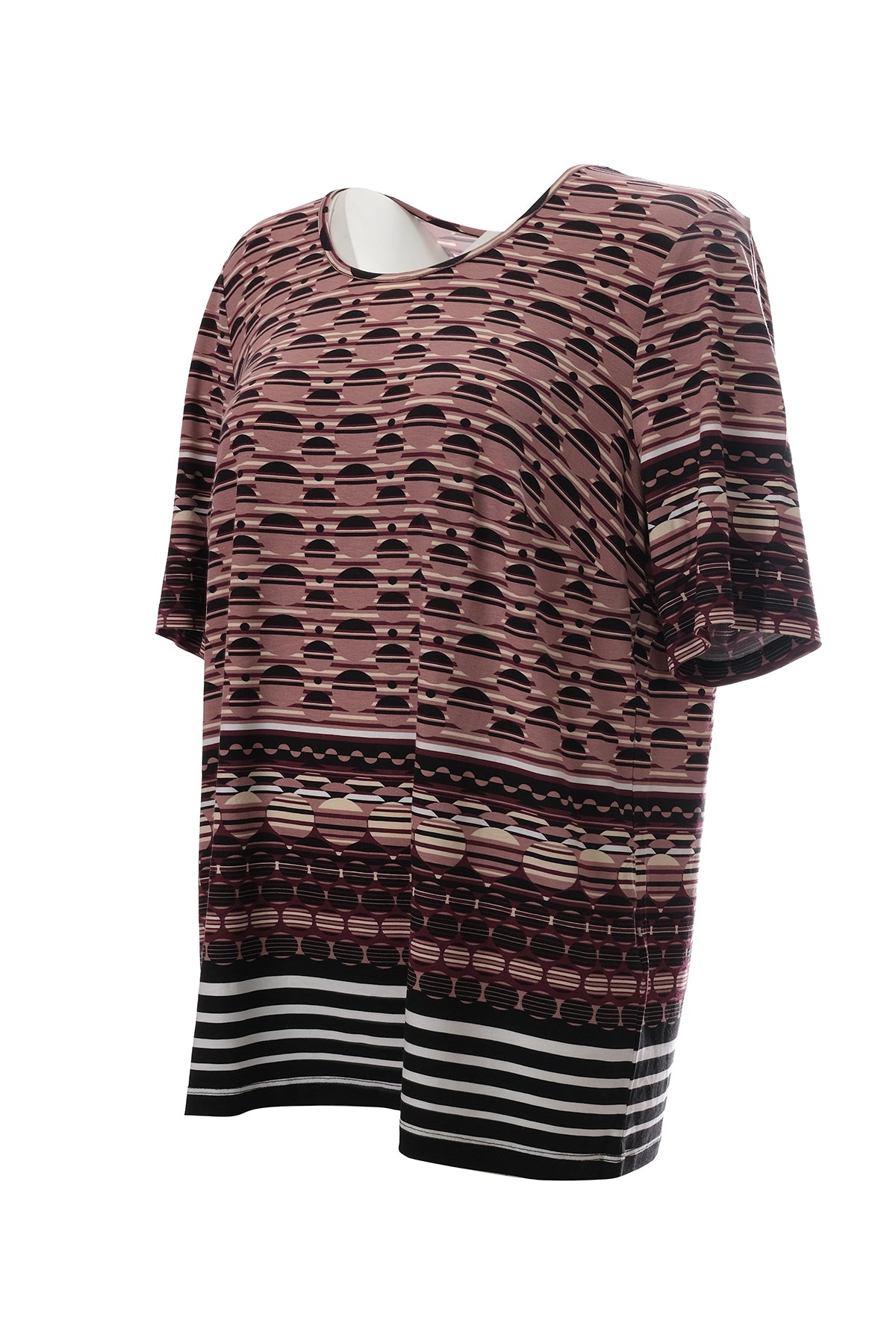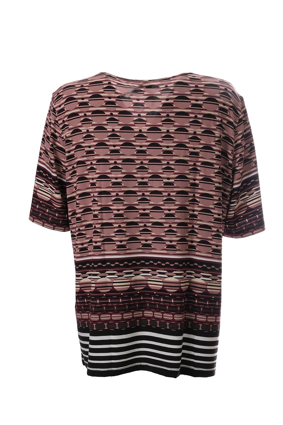 Canel Oversize Midi Tişört - Kısa Kol - Geometrik Desen - Günlük