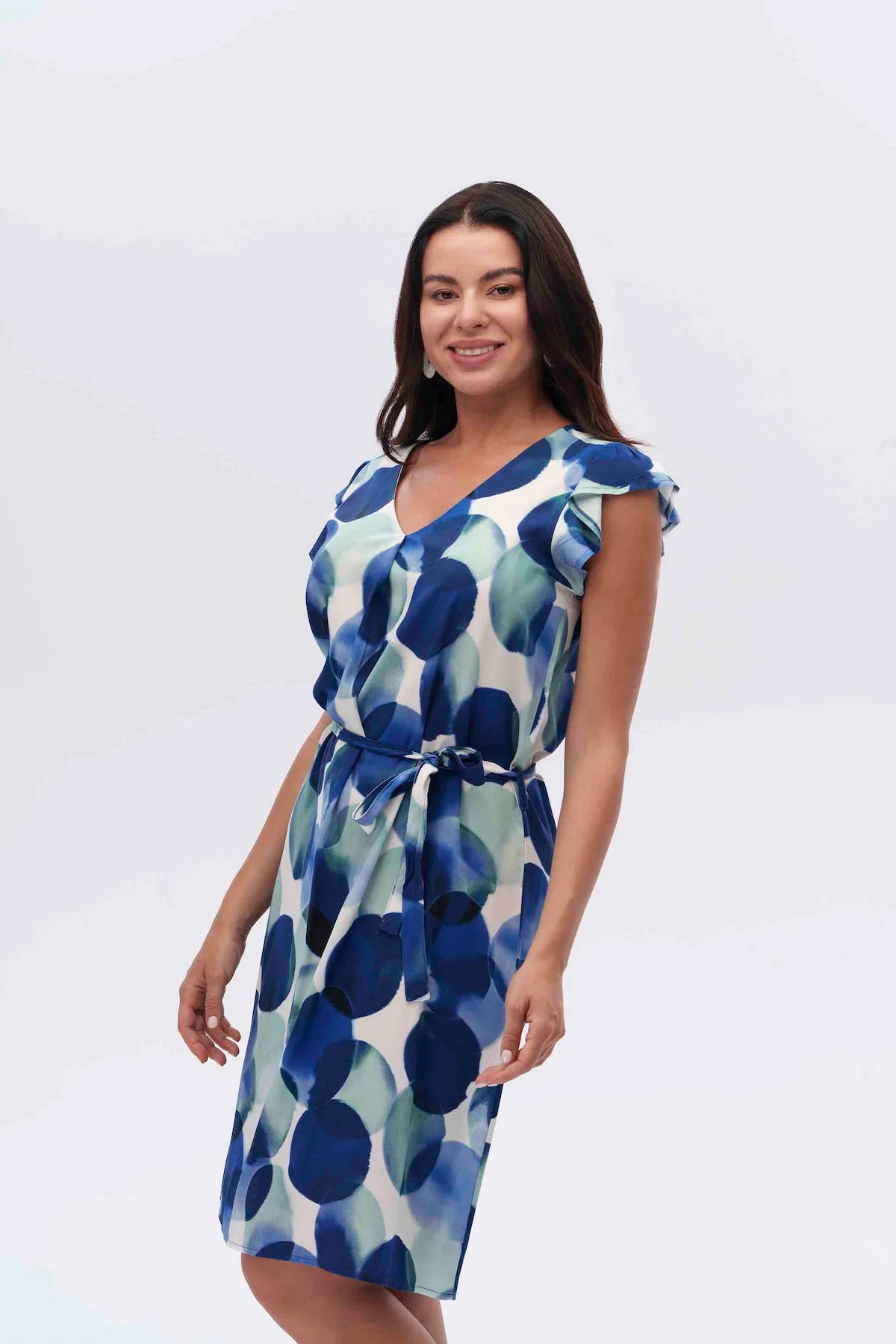 Canel V Yaka Fırfırlı Midi Elbise - Günlük & Ofis Şıklığı