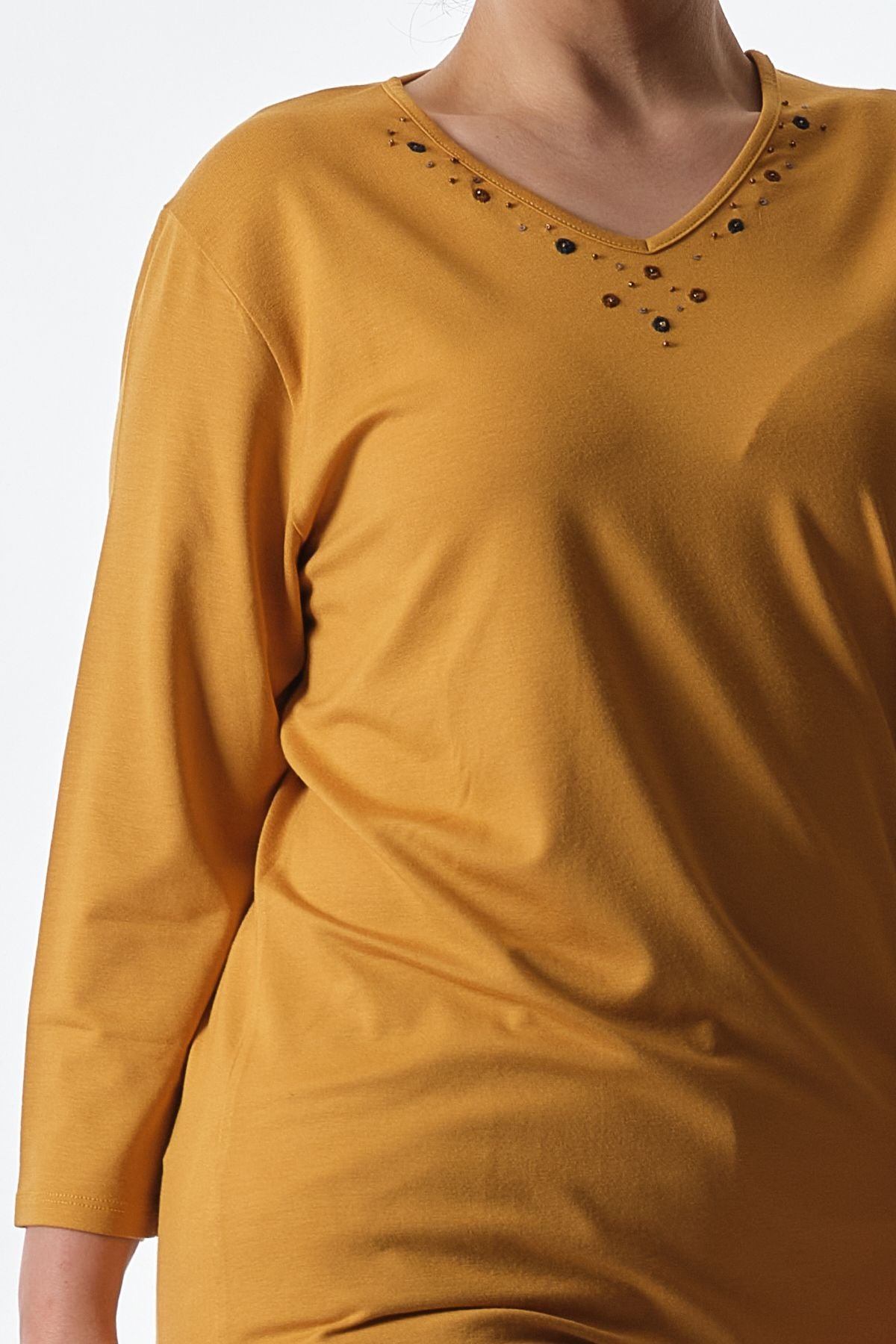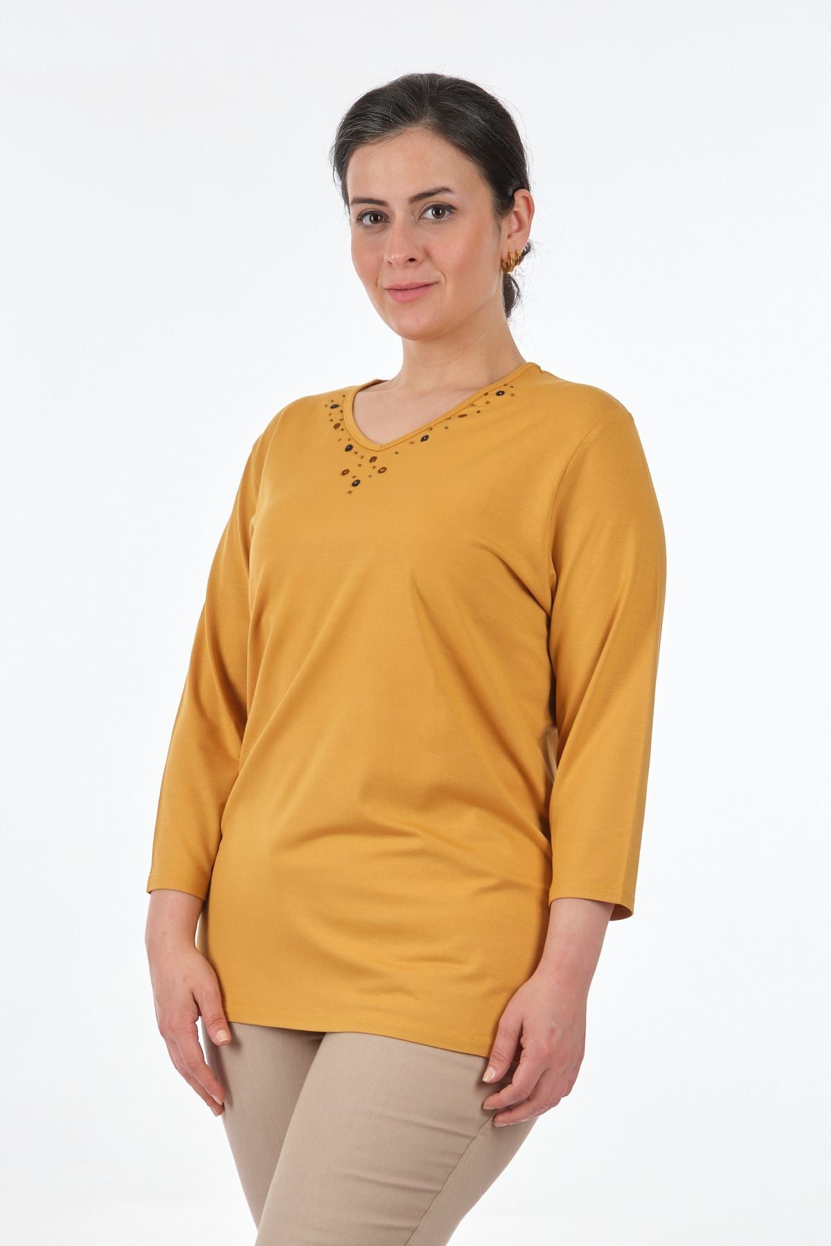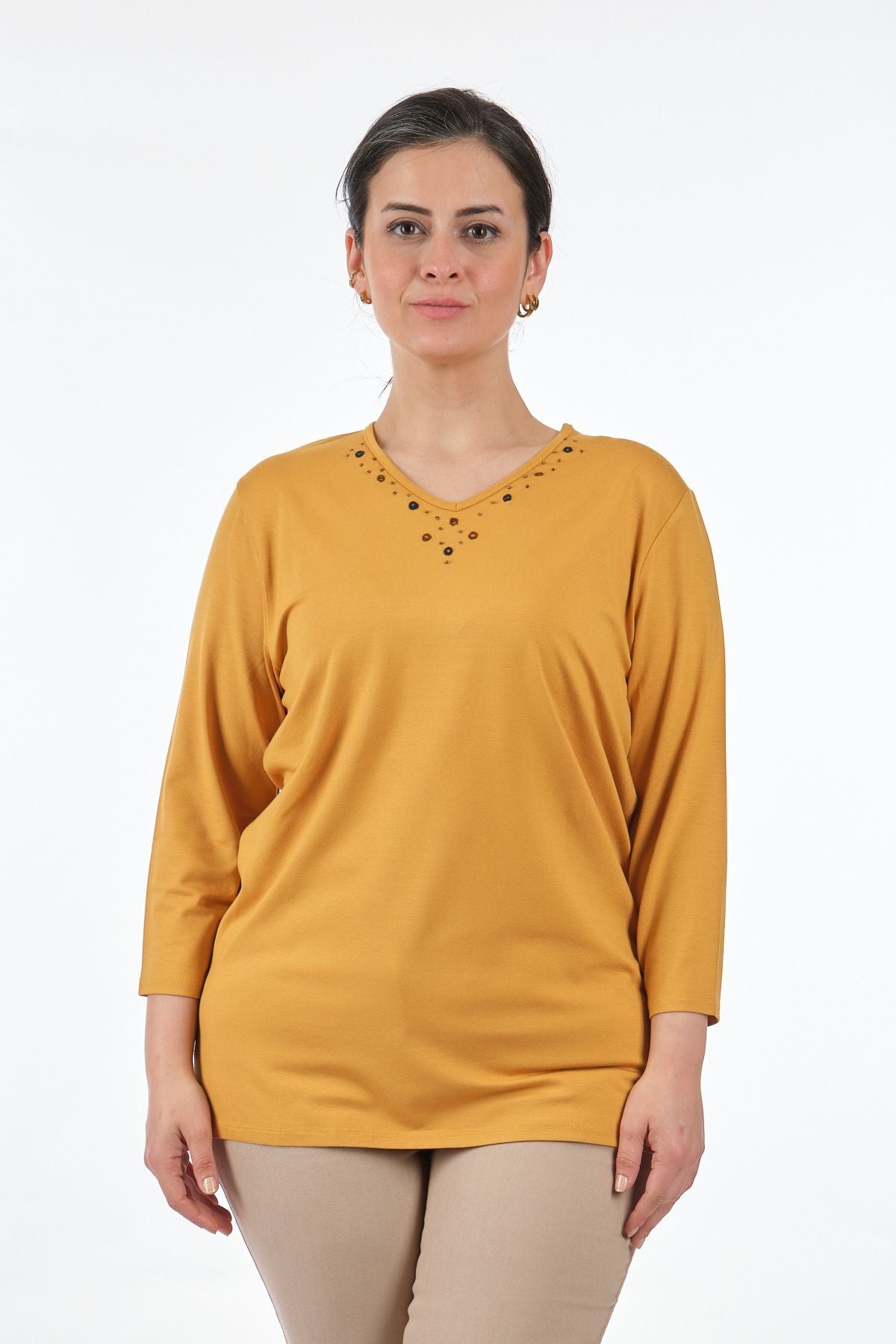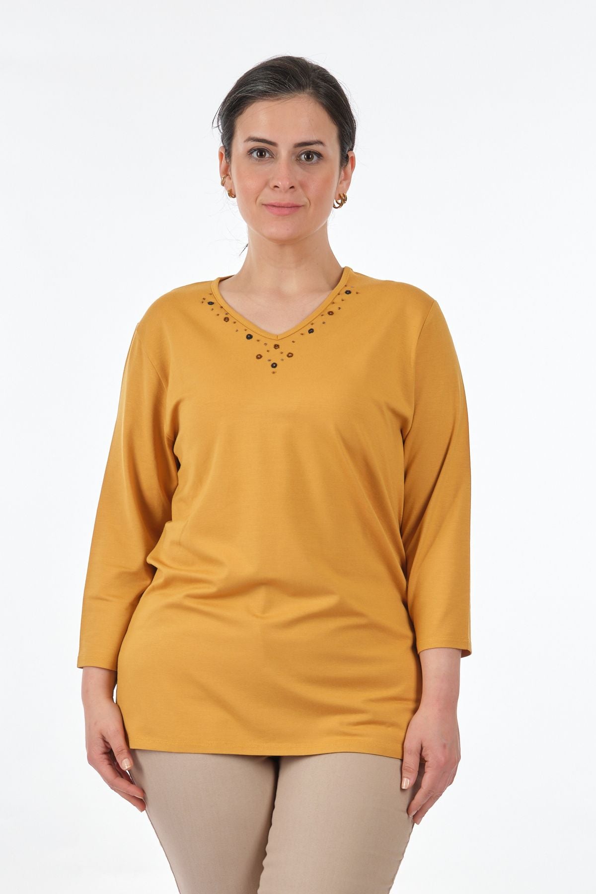 Menşei : Türkiye - Yerli Üretim Manken Ölçüsü: Boy:1.78 cm / Göğüs:86 cm / Bel:60 cm / Kalça:90 cm Modelimiz de ürünün en küçük bedeni giyilmiştir. Desen Bilgisi: Düz Renk Kalıp Bilgisi: Standart Kol Bilgisi: Truvakar Kol Materyal : %95 Viskon %5 Elastan Yaka Bilgisi: V Yaka