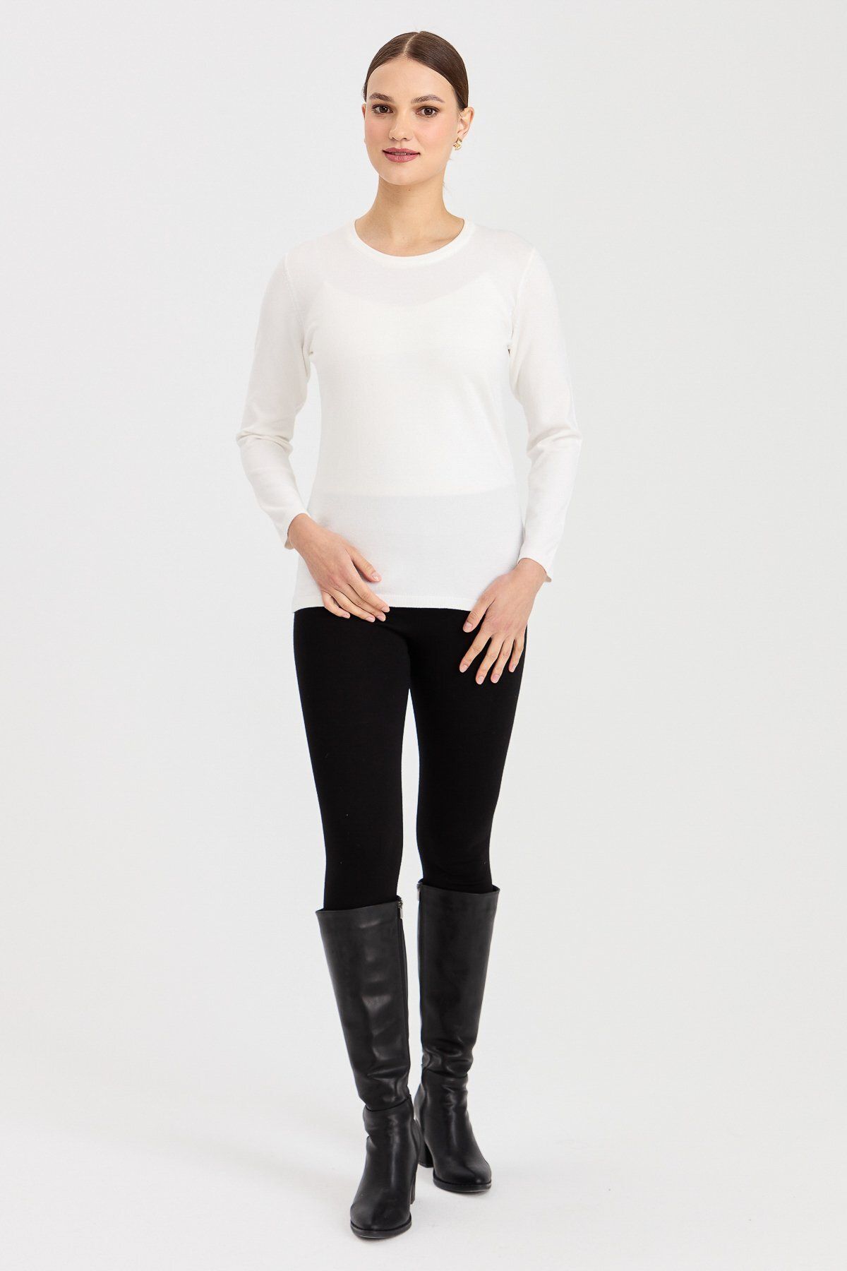 Manken Ölçüsü: Boy: 1.74 cm / Göğüs: 83 cm / Bel: 61 cm / Kalça: 92 cm; Modelimiz de ürünün en küçük bedeni giyilmiştir.; Desen Bilgisi: Düz Renk ; Kalıp Bilgisi: Standart; Kol Bilgisi: Uzun Kollu; Materyal : %80 Viskon %20 Polyimid;