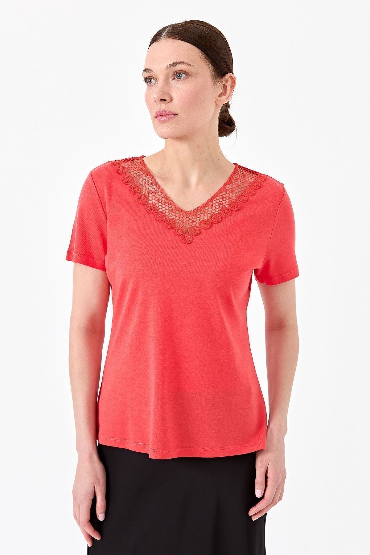 Menşei : Türkiye - Yerli Üretim; Manken Ölçüsü: Boy: 1.73 cm / Göğüs: 88 cm / Bel: 62 cm / Kalça:91 cm; Modelimiz de ürünün en küçük bedeni giyilmiştir.; Desen Bilgisi: Düz Renk; Kalıp Bilgisi: Standart; Kol Bilgisi: Kısa Kol; Materyal : %50 Pamuk %50 Modal; Yaka Bilgisi: V Yaka; “ Stüdyo çekim ortamında bulunan ışık ve gölgelenmelere istinaden görsellerde renk farklılıkları veya parlamalar oluşabilir.”; BEDEN ÖLÇÜSÜ: S M L XL; EN 46 50 54 58; BOY 63 65 67 69; ETEK ENİ 46 50 54; 58* Ölçüler cm olarak verilmiştir.; * Beden tablosunda yer alan ölçüler +-2 cm farklılık gösterebilir.;