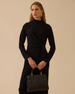 Dik Yaka Bağlama Detaylı Midi Elbise,beli vurgulayan detayı ve midi boyu ile konforlu bir görünüm sunar.