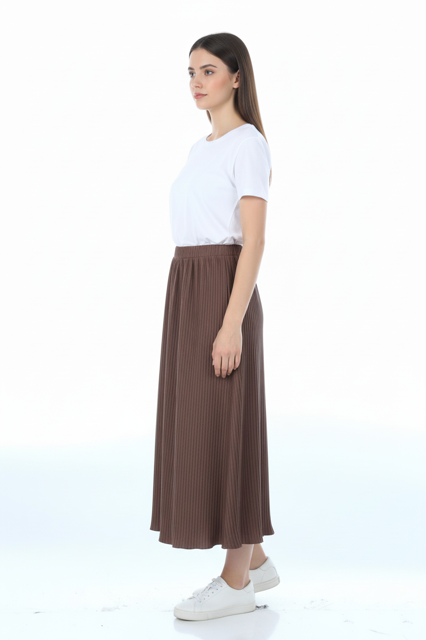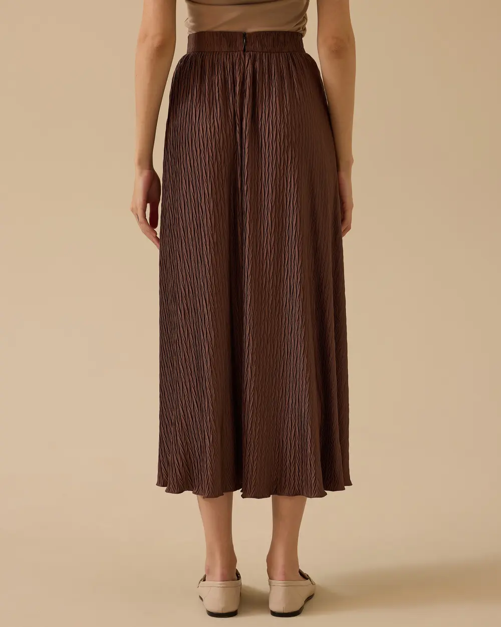 Dokulu Midi Etek, hafif kumaşı ve modern dokusu ile günlük şıklık ve konfor sağlar.