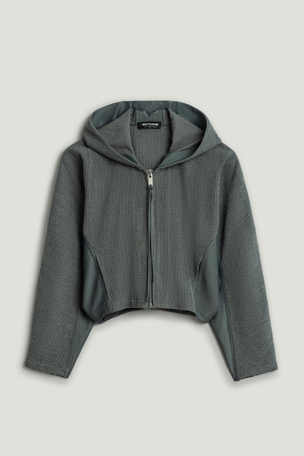 • Ürün Açıklaması: Regular fit, tam kalıp, astarsız, önden metal fermuar kapamalı, uzun kollu, sıfır yaka, dökümlü, kapüşonlu ceket