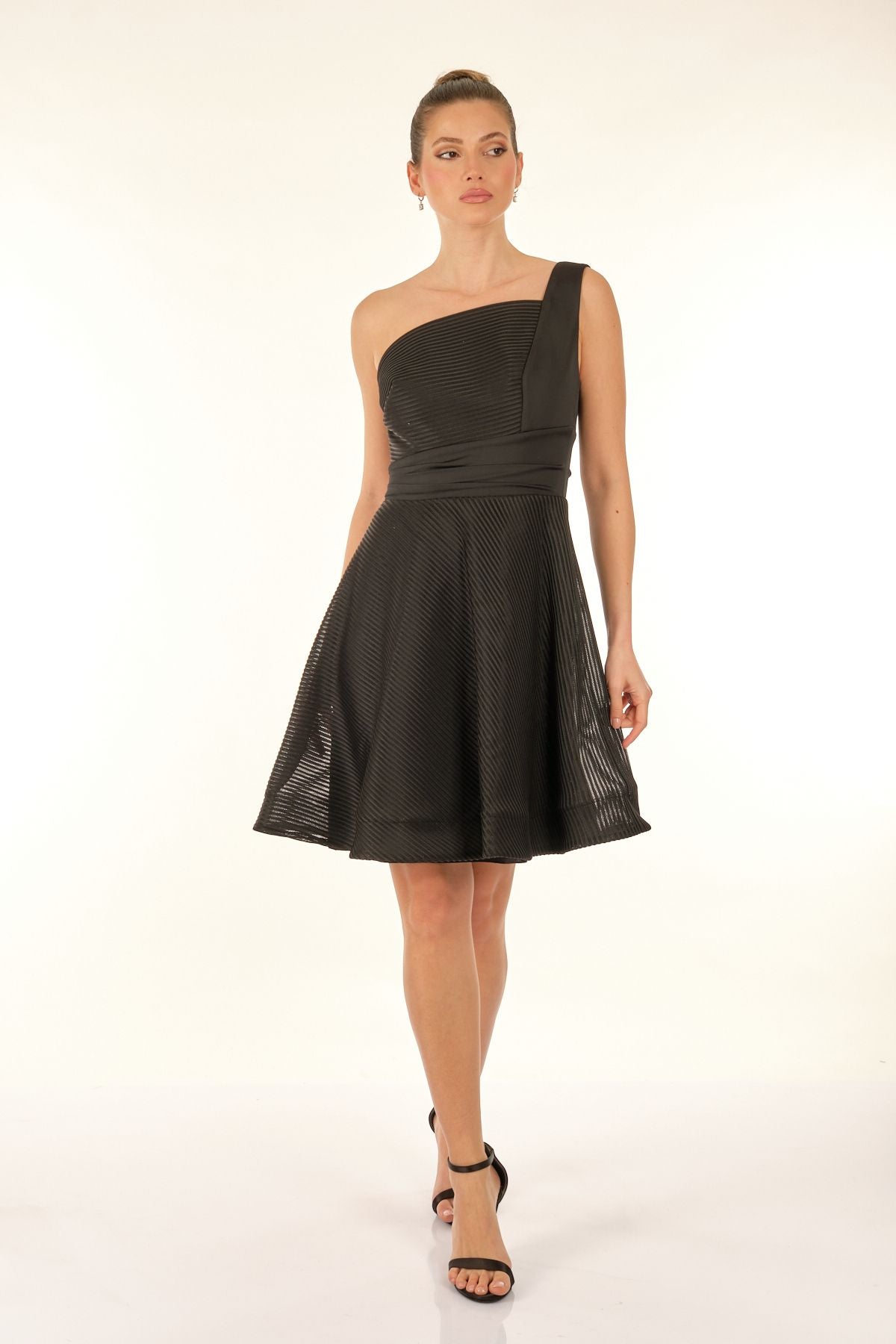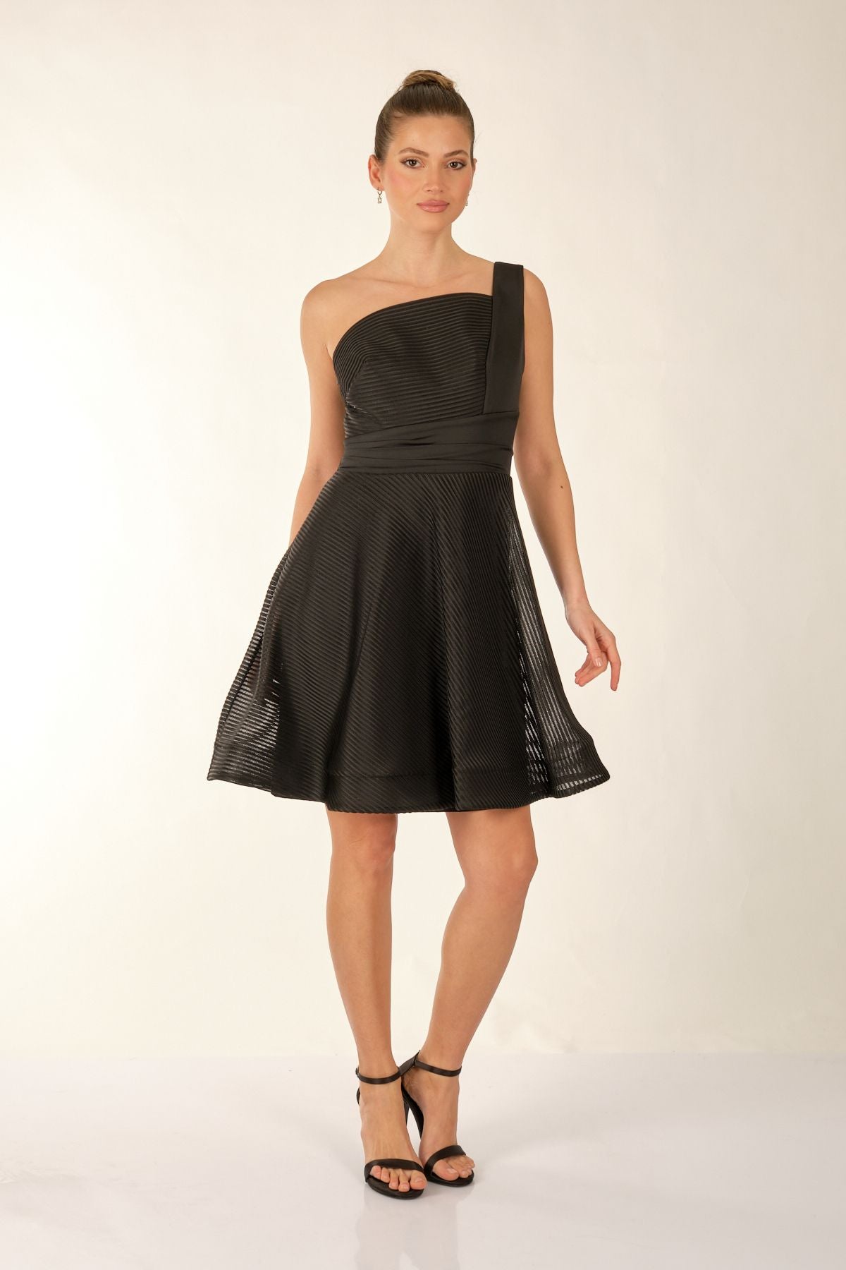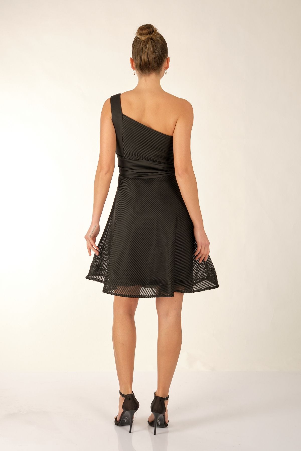 Ürün Özellikleri:; Marka : Dori; Model : Mini Elbise; Sezon : İlkbahar/Yaz; Desen : Düz; Materyal : % 100 Polyester;; Yaka Bilgisi : Tek Omuz; Manken Ölçüsü : Boy : 1.74 cm / Göğüs : 81 cm / Bel : 60 cm / Basen : 89 cm / Beden : S ;