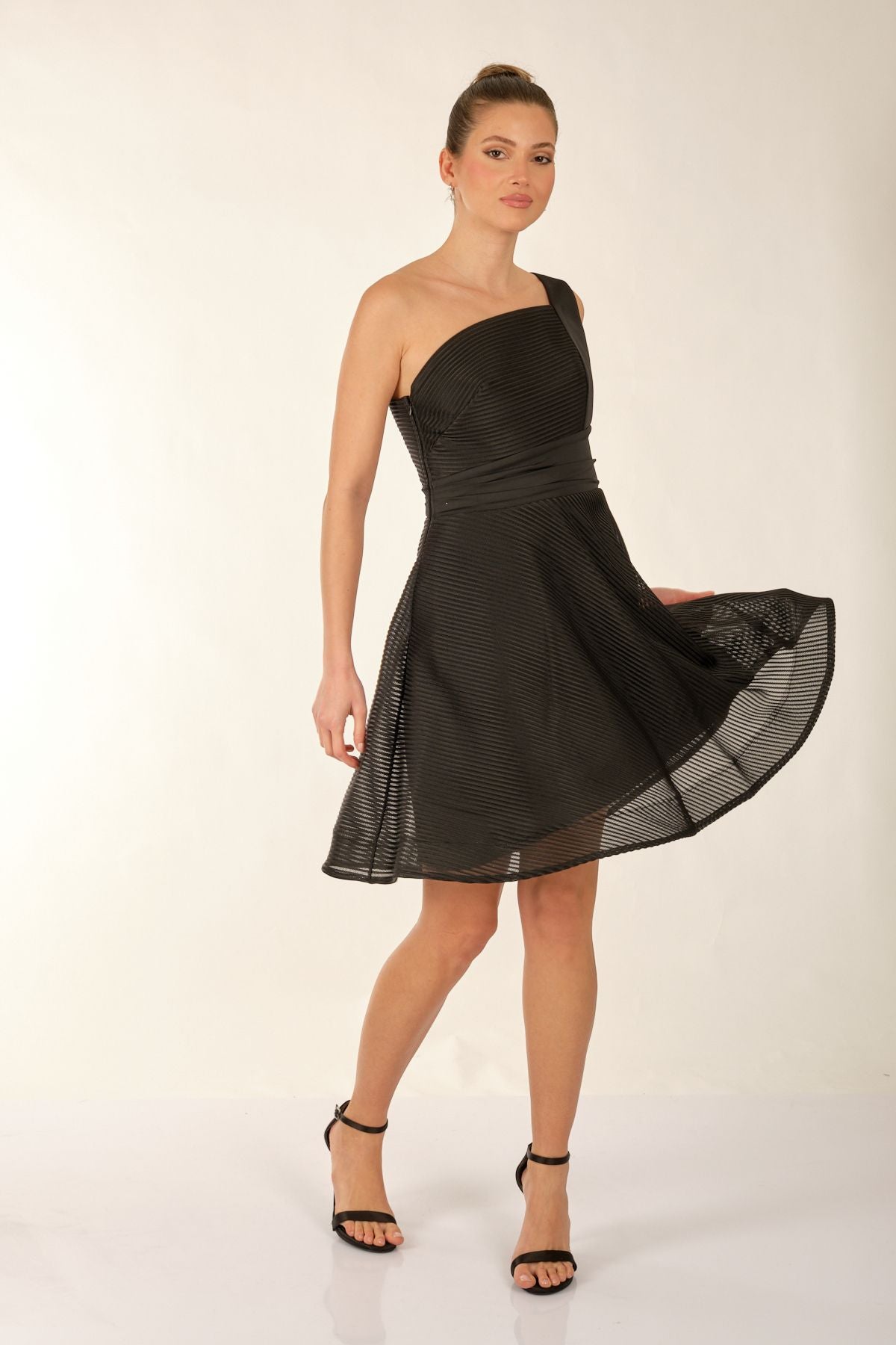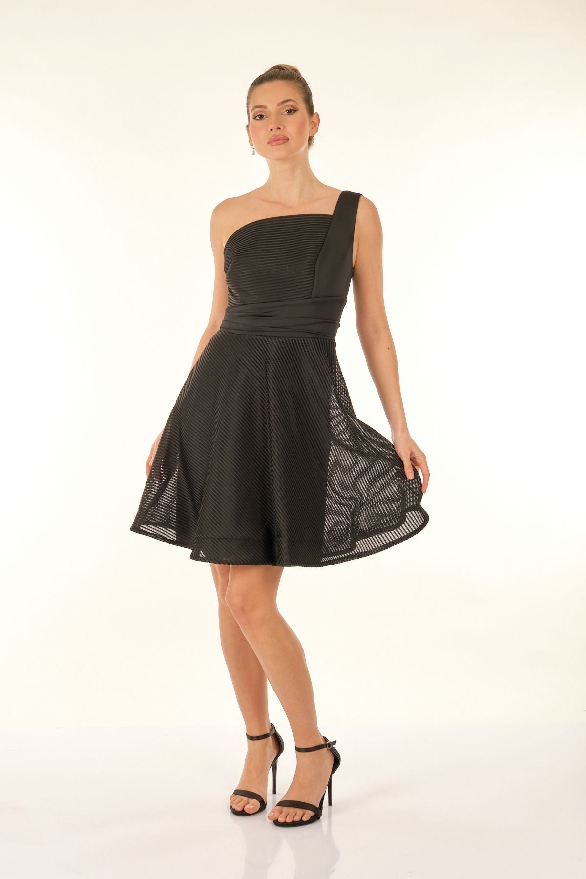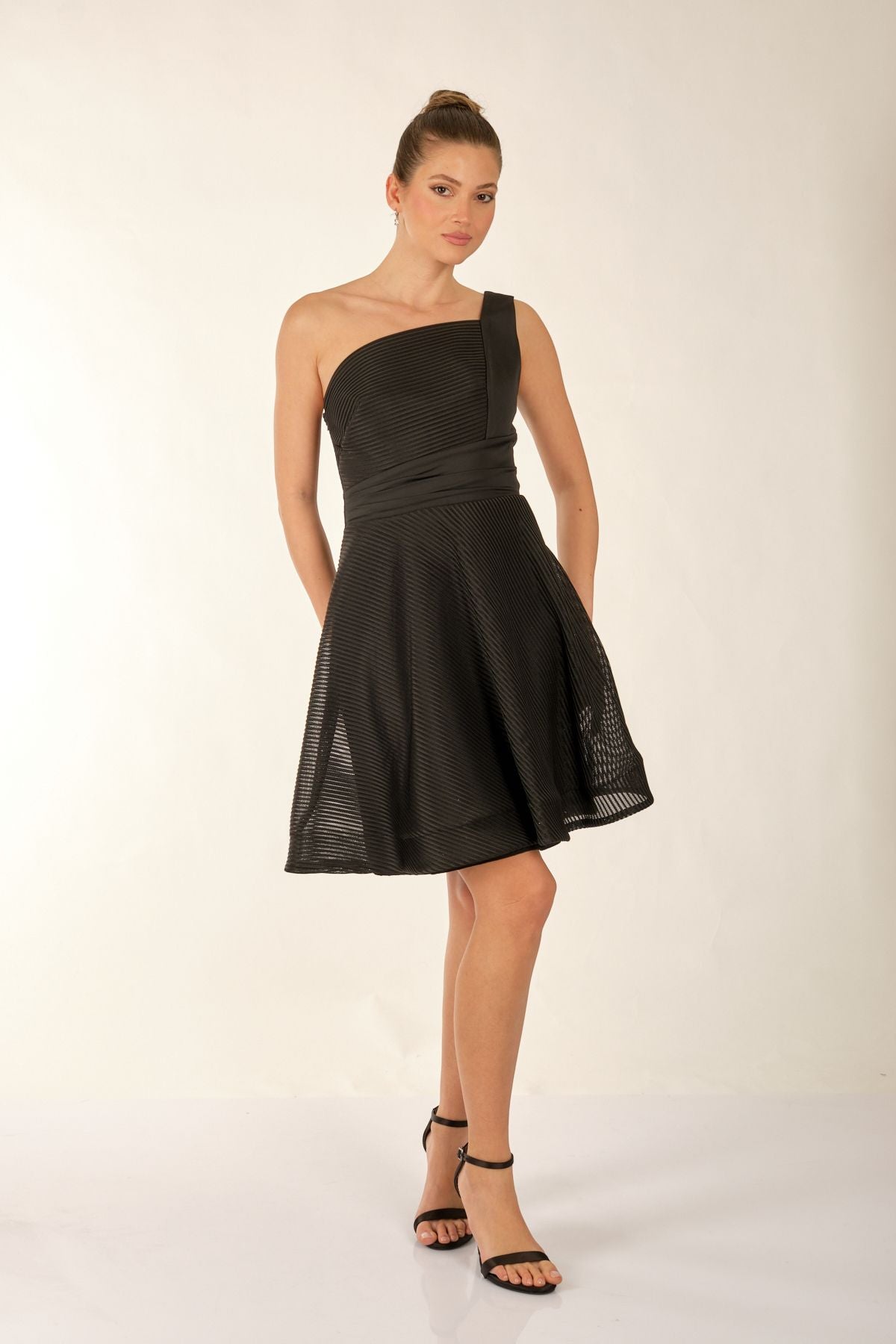 Ürün Özellikleri:; Marka : Dori; Model : Mini Elbise; Sezon : İlkbahar/Yaz; Desen : Düz; Materyal : % 100 Polyester;; Yaka Bilgisi : Tek Omuz; Manken Ölçüsü : Boy : 1.74 cm / Göğüs : 81 cm / Bel : 60 cm / Basen : 89 cm / Beden : S ;