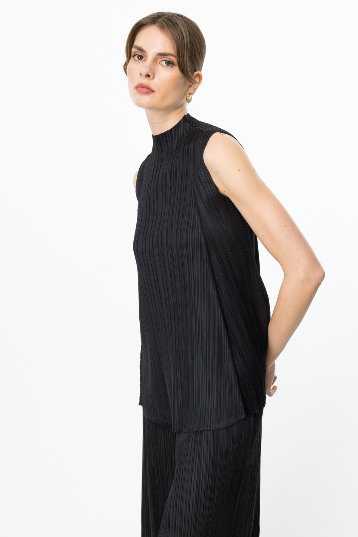 Ekol Akordiyon Kumaş Dik Yaka Bluz